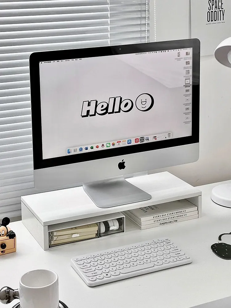 デスクトップモニター用高さ調節スタンド - ノートパソコン収納に最適!オフィスをすっきり整頓し、作業効率をアップさせる必須アイテム。整理整頓を楽しもう!