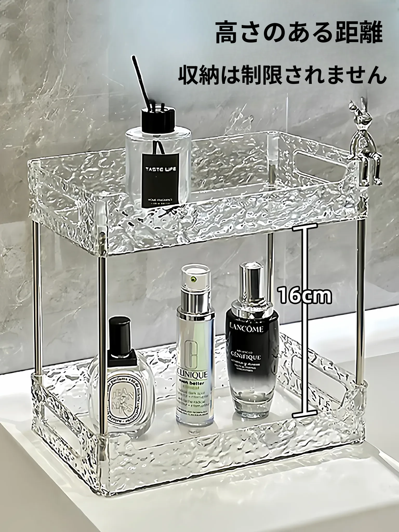 スキンケア収納ラック アクリル製 コスメティックオーガナイザー メイク台用 二段式デスクトップ整理ラック - 美しさを引き立てる整理整頓の必需品!