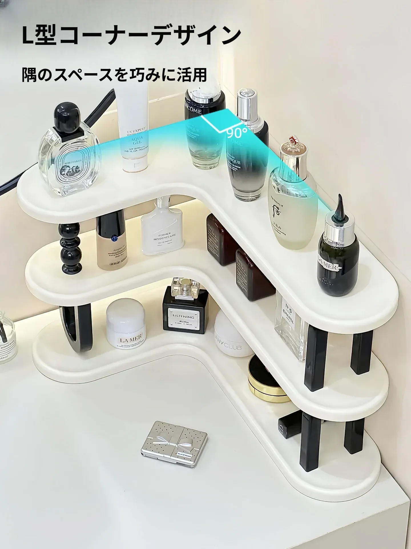 バスルーム収納ラック - ラグジュアリーな洗面台用!化粧品やスキンケア用品をスタイリッシュに整理。限られたスペースを有効活用し、美しさを引き立てるアイテムです!