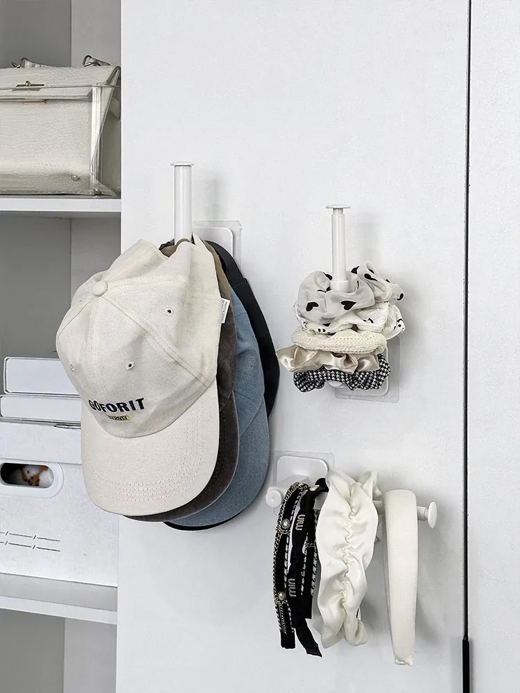 帽子収納のマジック!宿舎やクローゼットに最適な穴あけ不要の壁掛けハンガー。玄関やドアの裏にぴったりの強力粘着フックで、スペースを有効活用し、おしゃれに整理整頓!