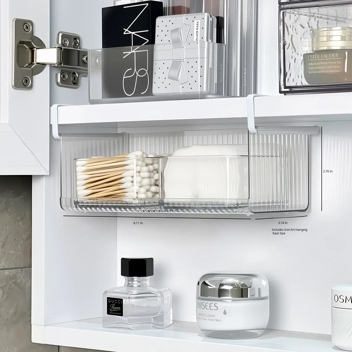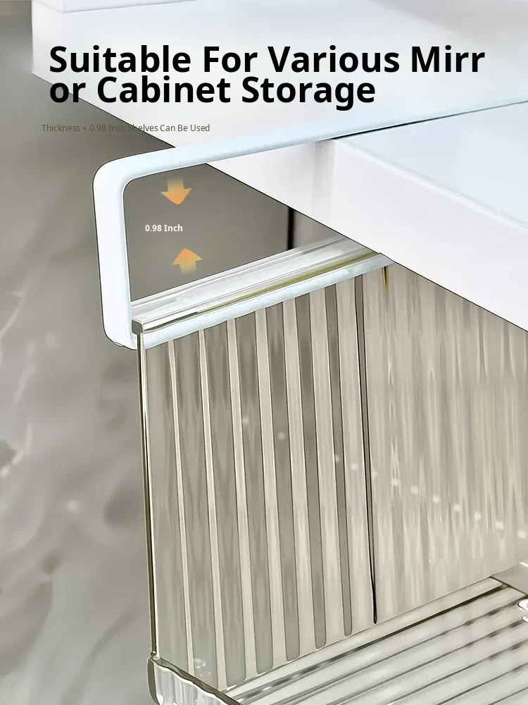 Acrylic Makeup Organizer with Mirror - Clear Storage Box for Bathroom Essentials, Cotton Swabs & Makeup Remover Pads - Stylish and Functional Vanity Shelf Solution