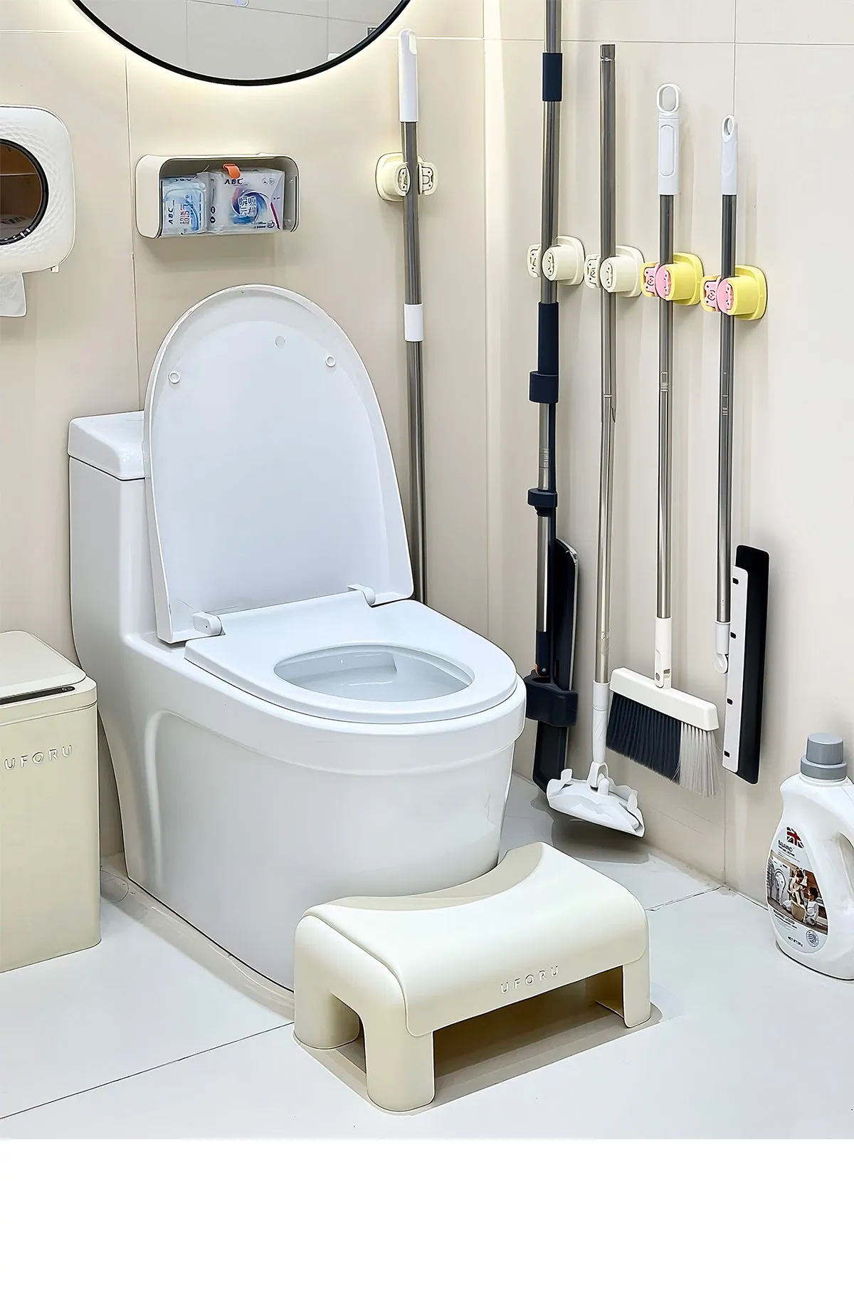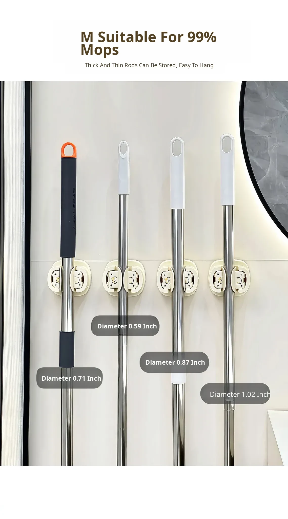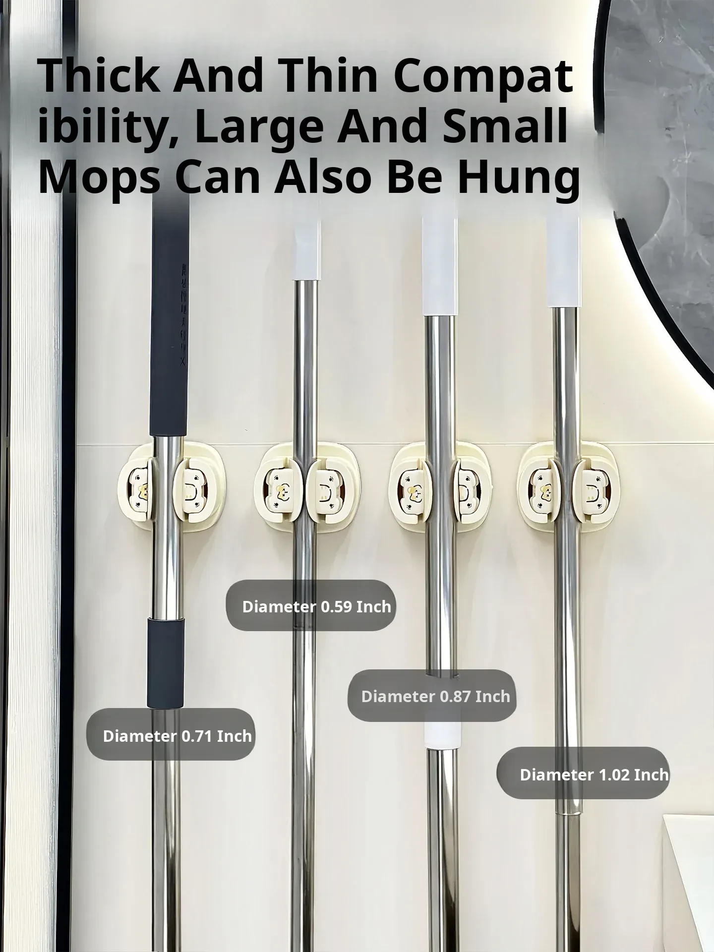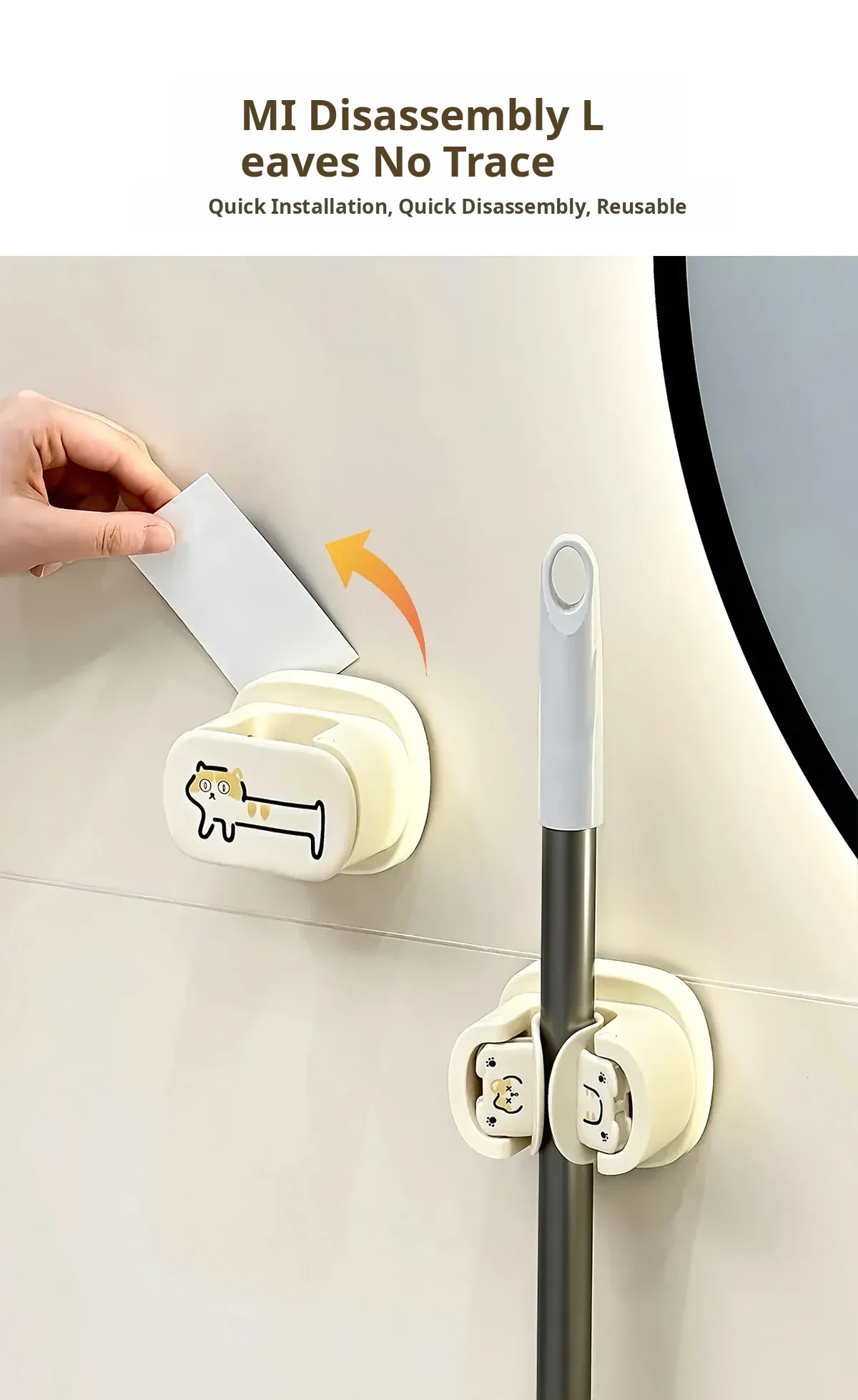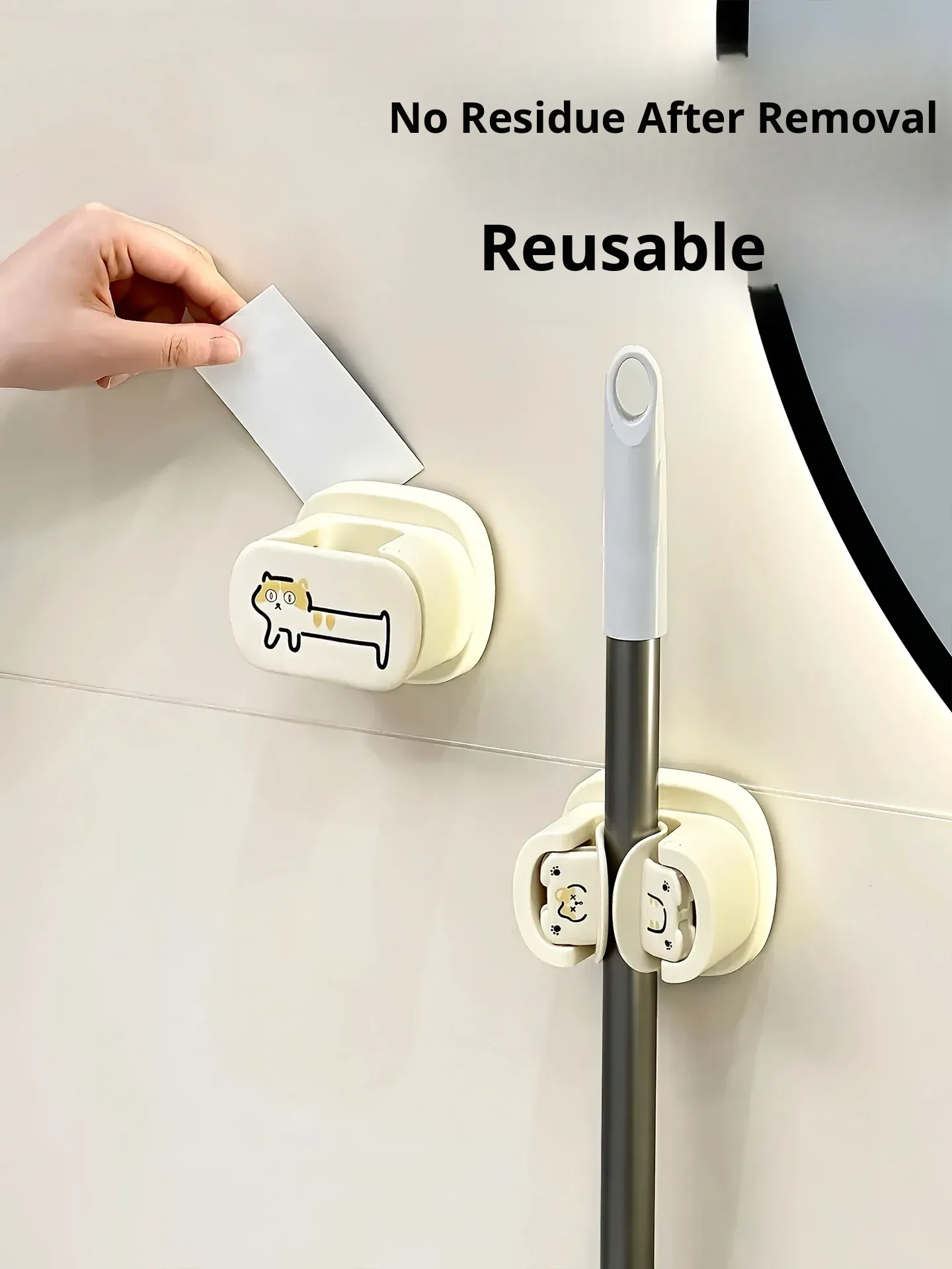 Bathroom Mop Holder Wall-Mounted No-Drill Suction Hook – Space-Saving Broom Organizer for Home Use, Perfect Storage Solution for Your Bathroom!