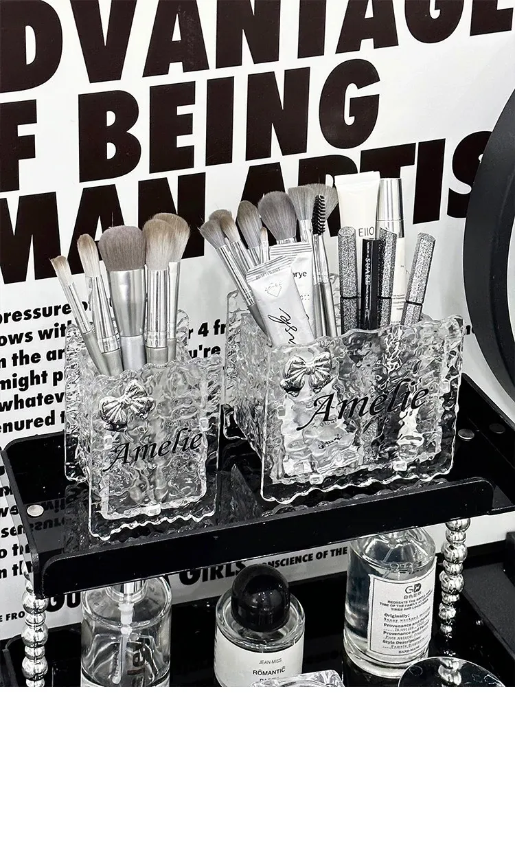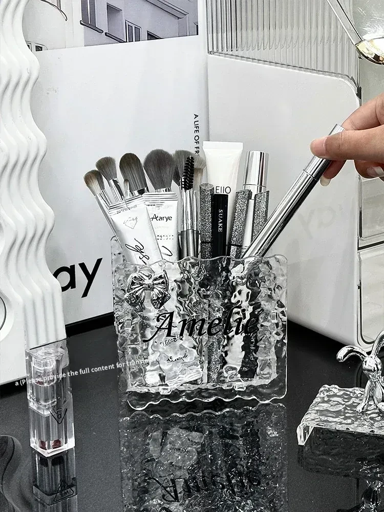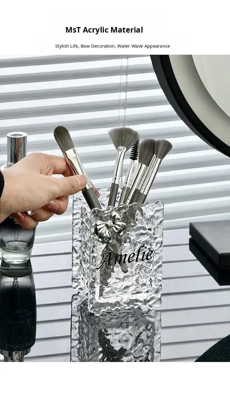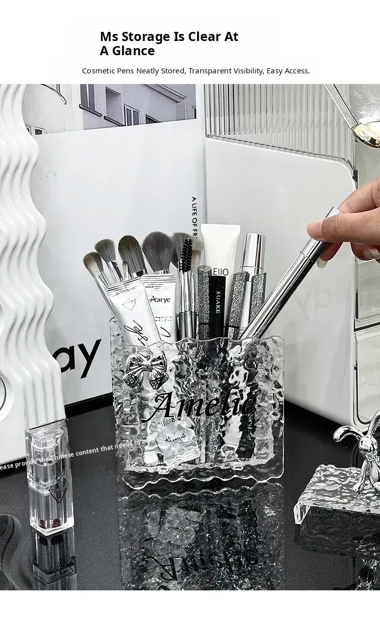Chic Acrylic Makeup Brush Organizer - Elegant Vanity Storage for Eyeliners, Brow Pencils, Lipsticks, and Cosmetics - Stylish Makeup Holder and Pen Cup