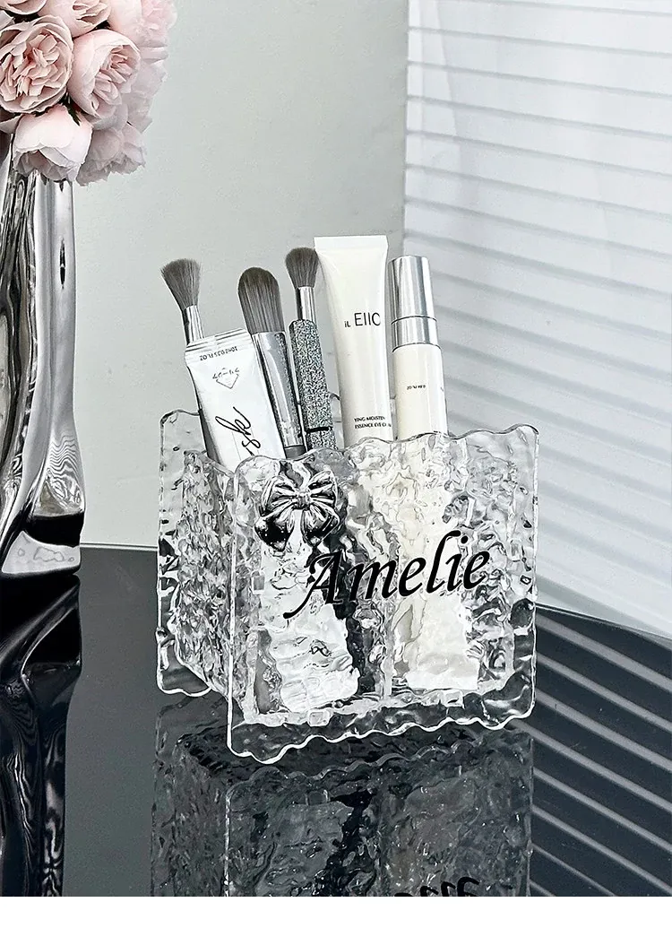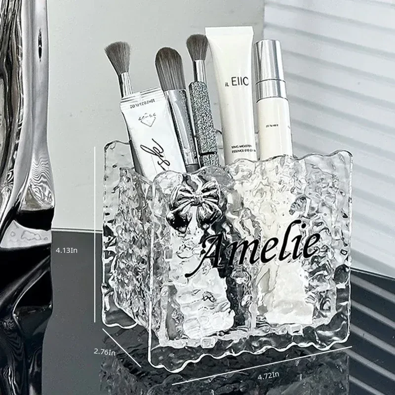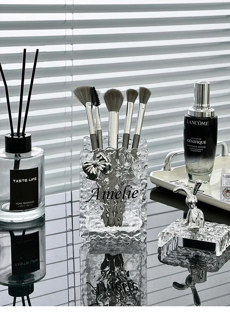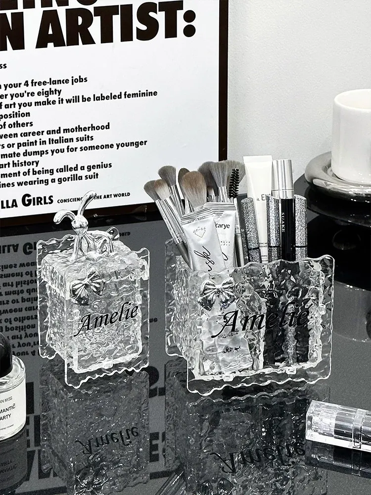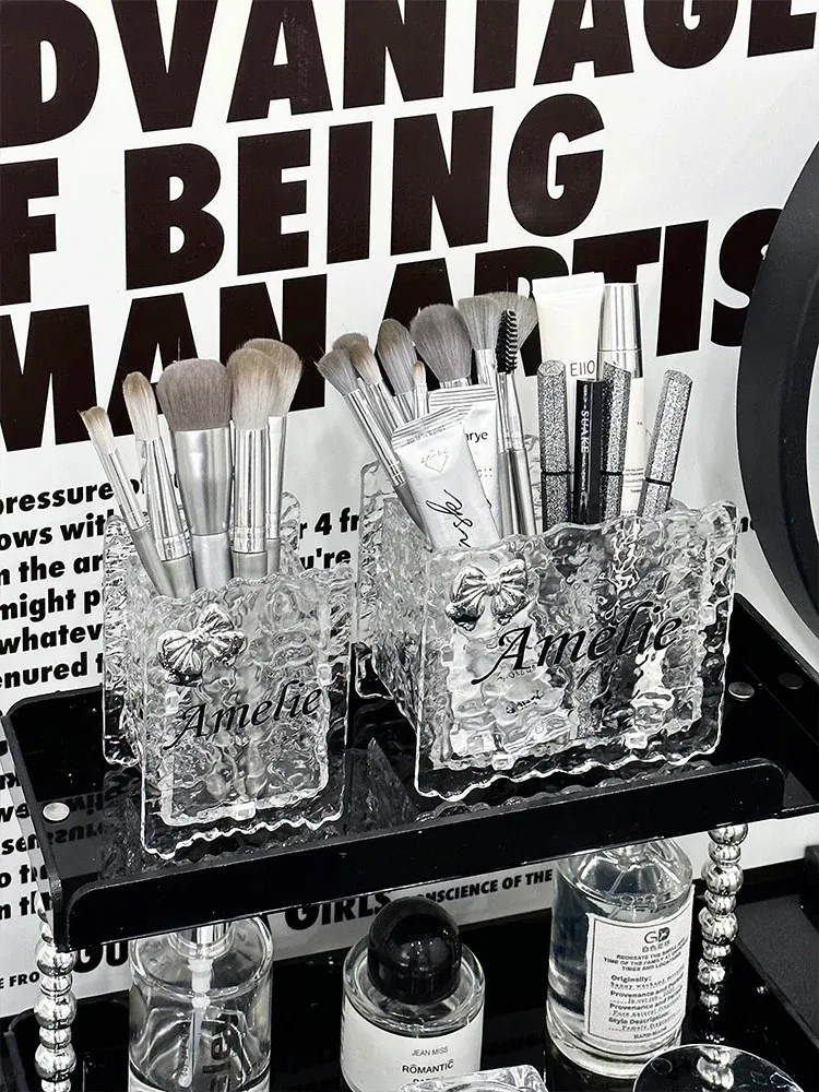 Chic Acrylic Makeup Brush Organizer - Elegant Vanity Storage for Eyeliners, Brow Pencils, Lipsticks, and Cosmetics - Stylish Makeup Holder and Pen Cup