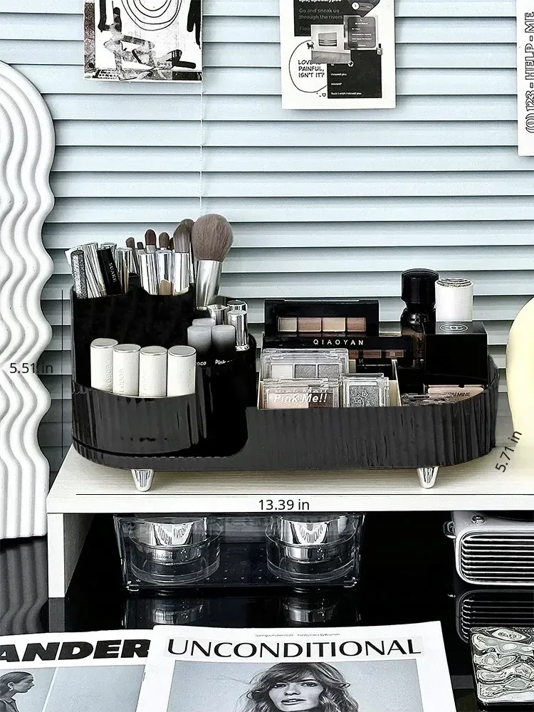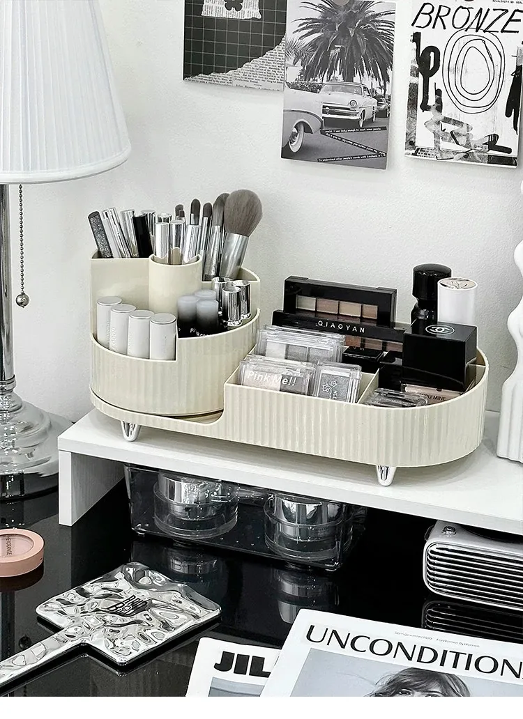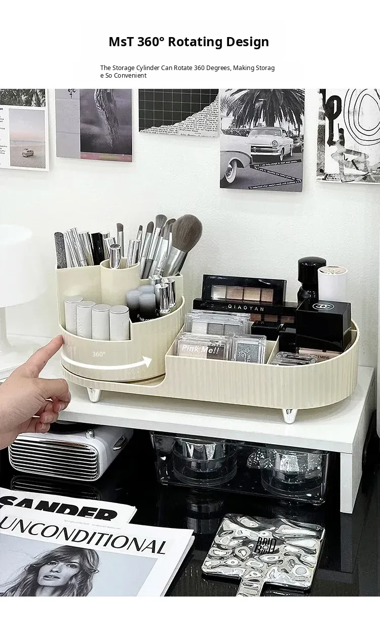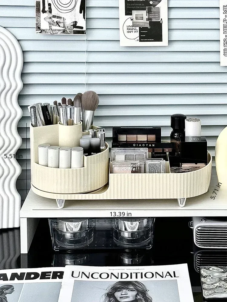 Desktop Makeup Organizer - Rotating Storage Box for Cosmetics, Skincare Products, and Lipsticks - Stylish Vanity Brush Holder with Dividers for Effortless Organization