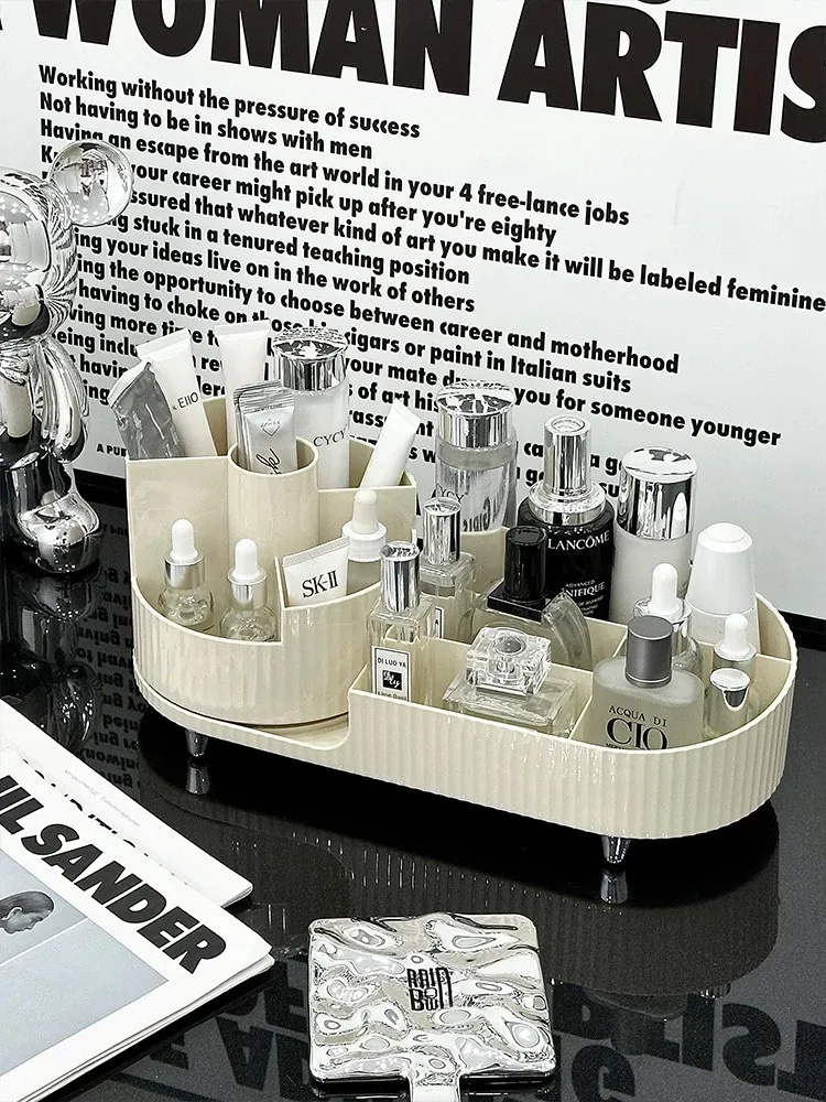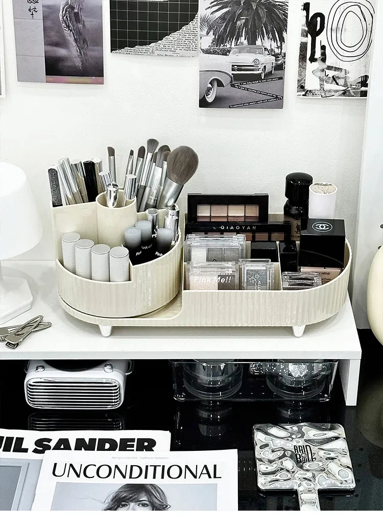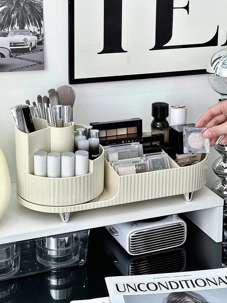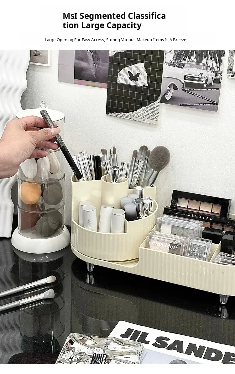Desktop Makeup Organizer - Rotating Storage Box for Cosmetics, Skincare Products, and Lipsticks - Stylish Vanity Brush Holder with Dividers for Effortless Organization