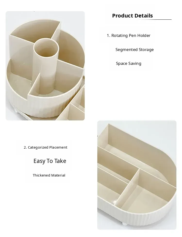 Makeup Brush Storage Box-Cream White(Rotatable)