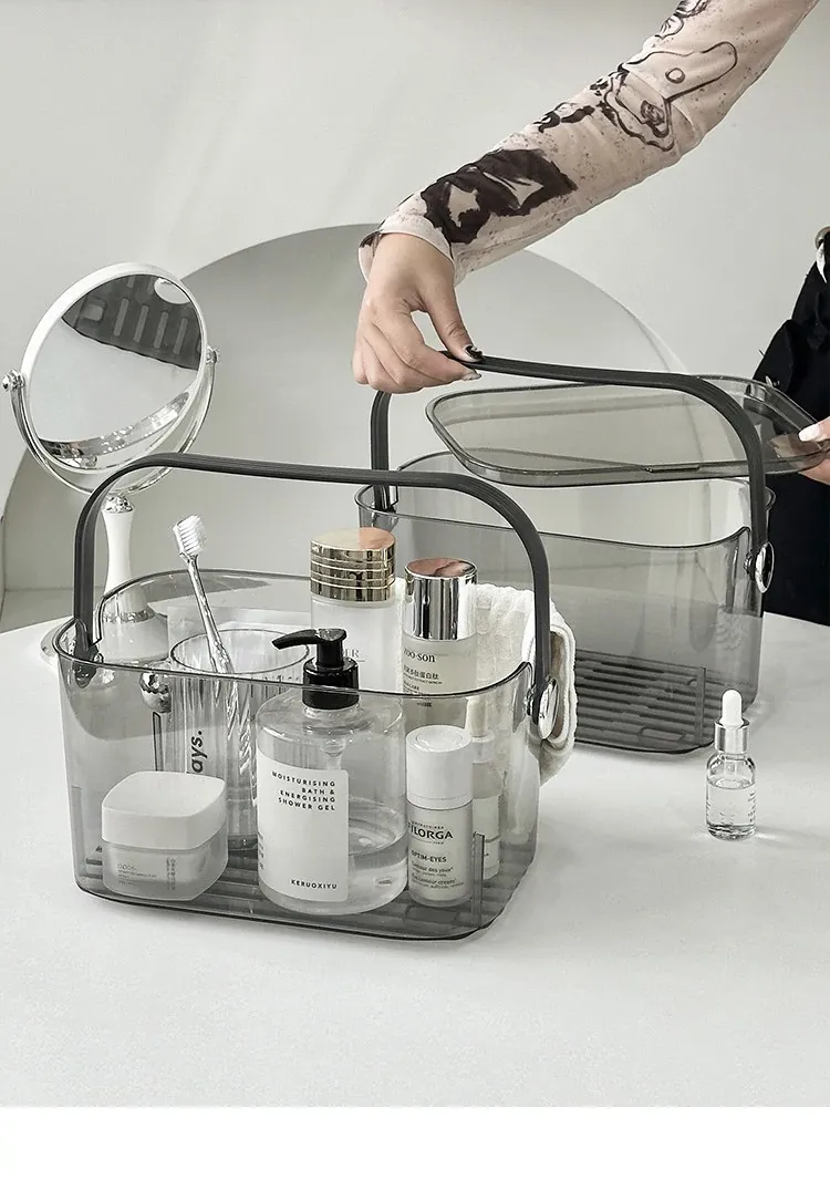 Desktop Makeup Organizer - Stylish Storage Box for Skincare Products, Face Masks, and Accessories - Dustproof Vanity Caddy for Bathroom and Dressing Table