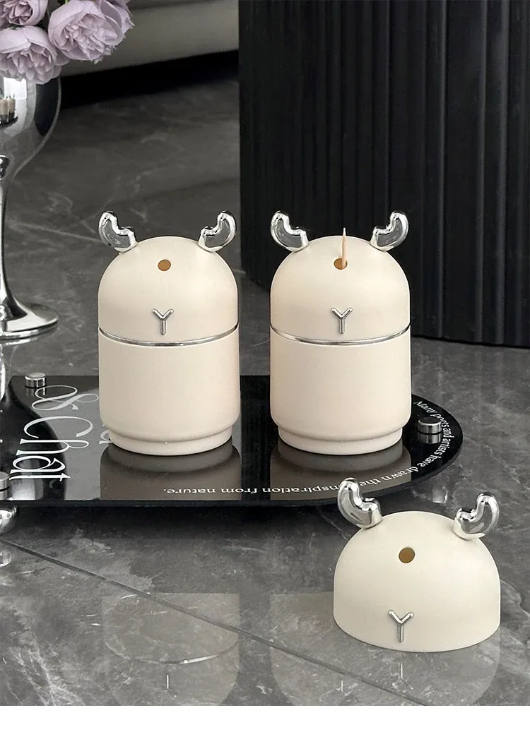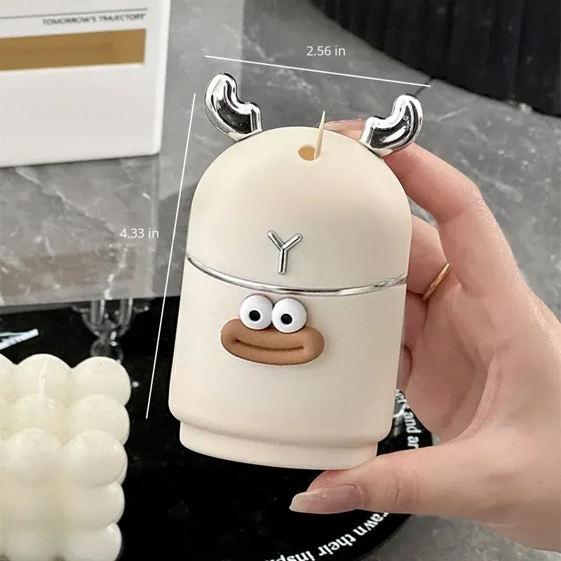 2 Antlers Automatic Press Toothpick Holder + Brown Mouth Patch