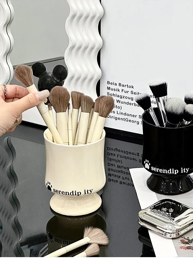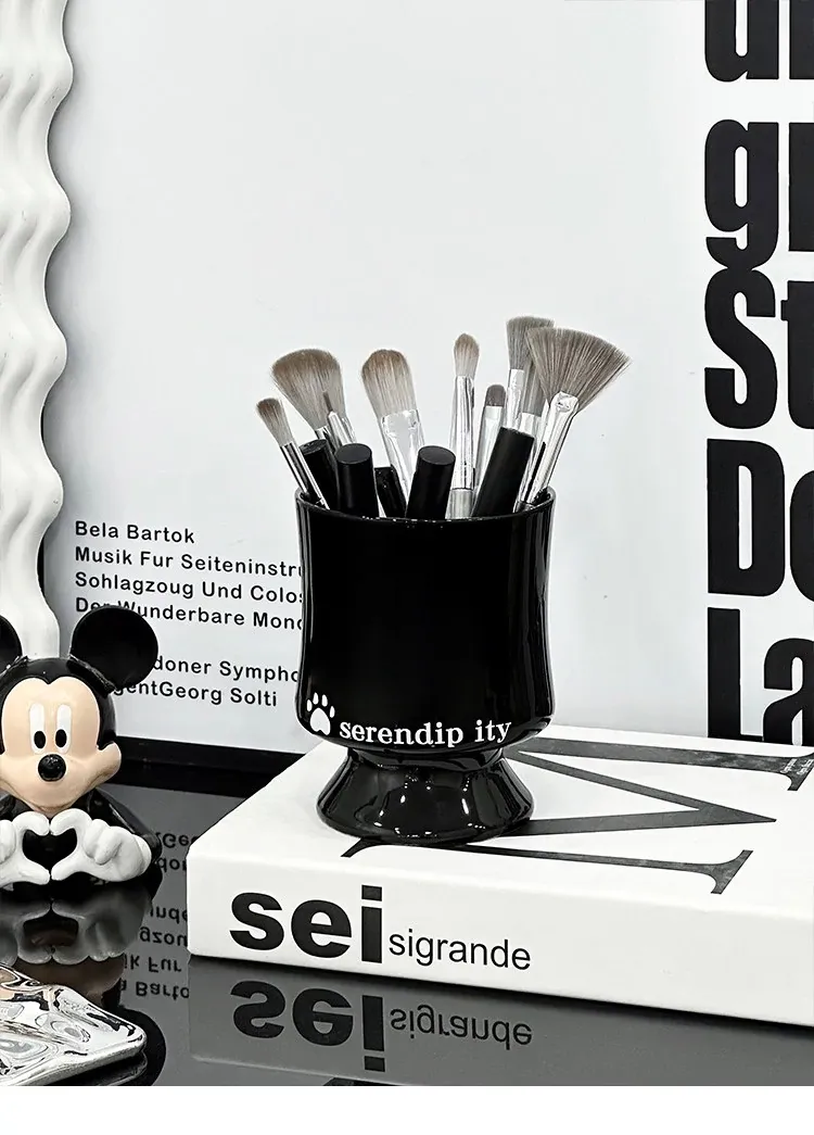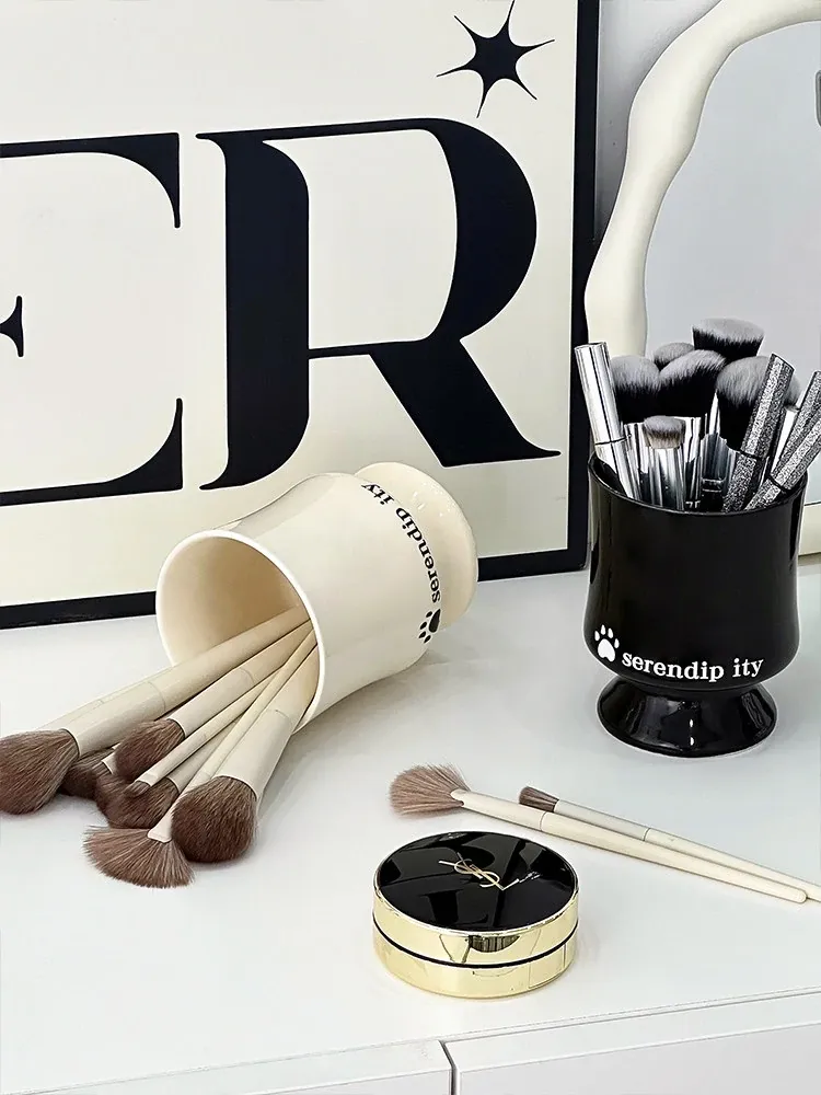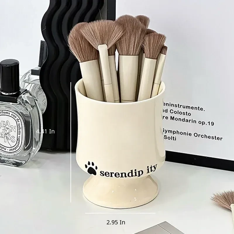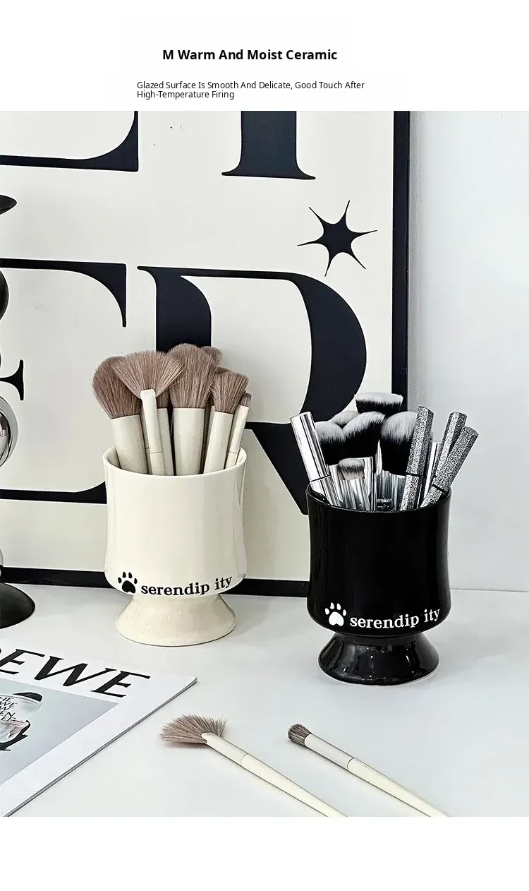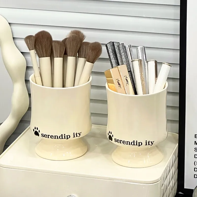 Elegant Ceramic Makeup Brush Holder - Stylish Desktop Organizer for Lipsticks and Cosmetics, Perfect for Your Vanity Table