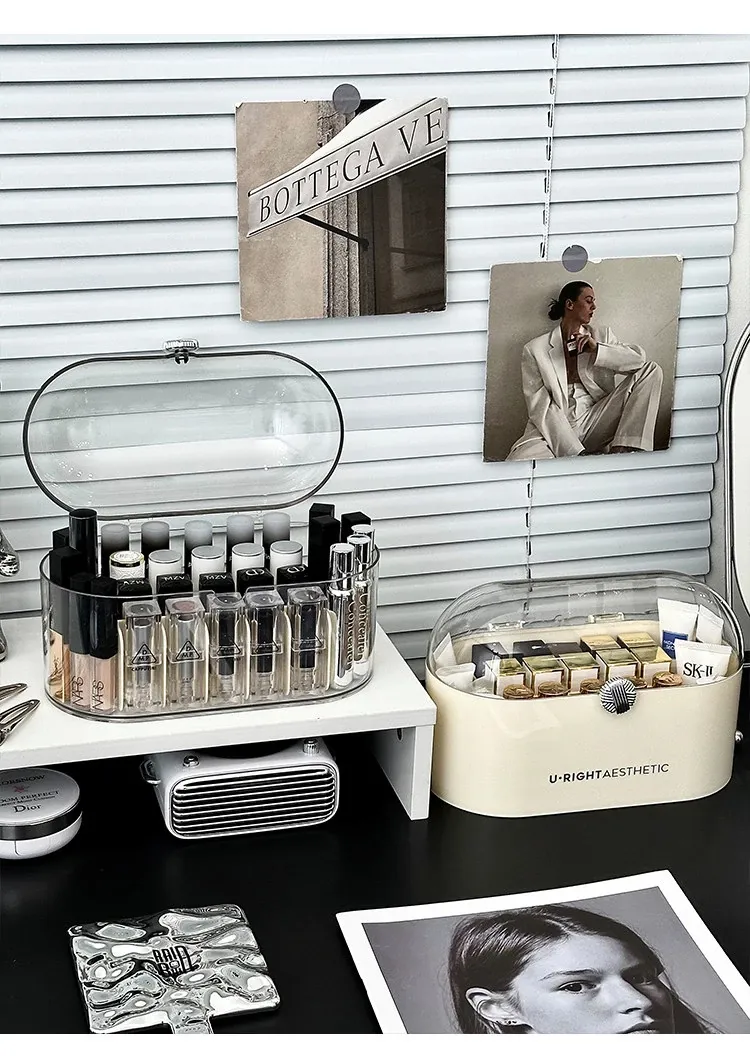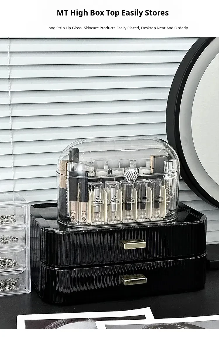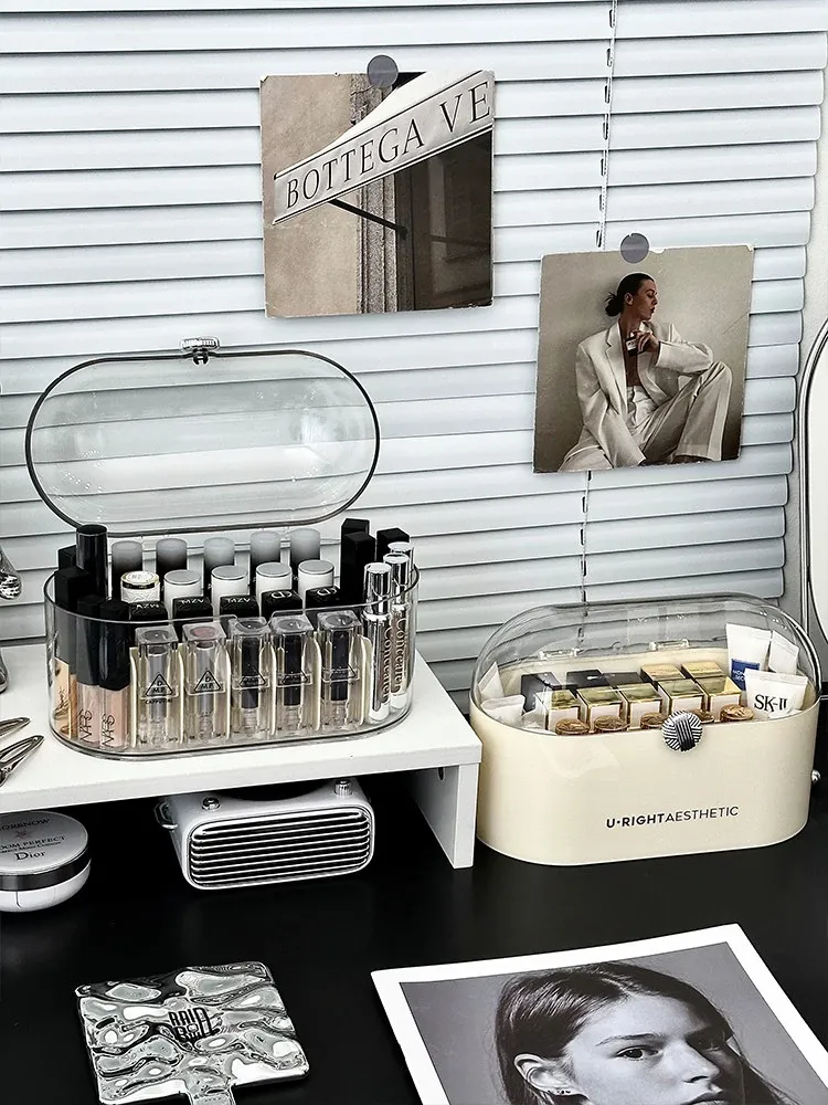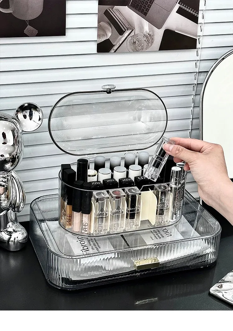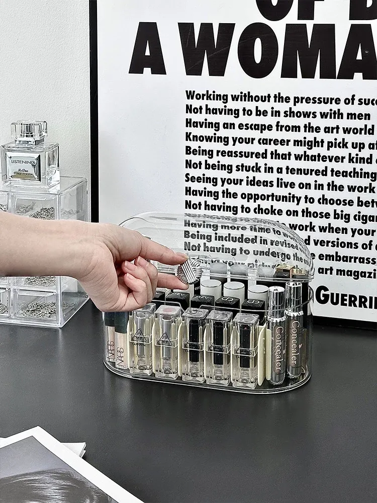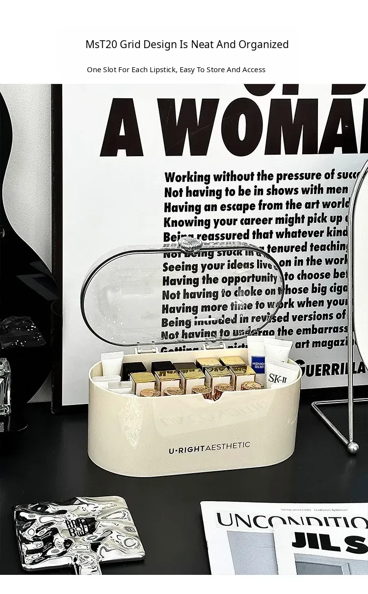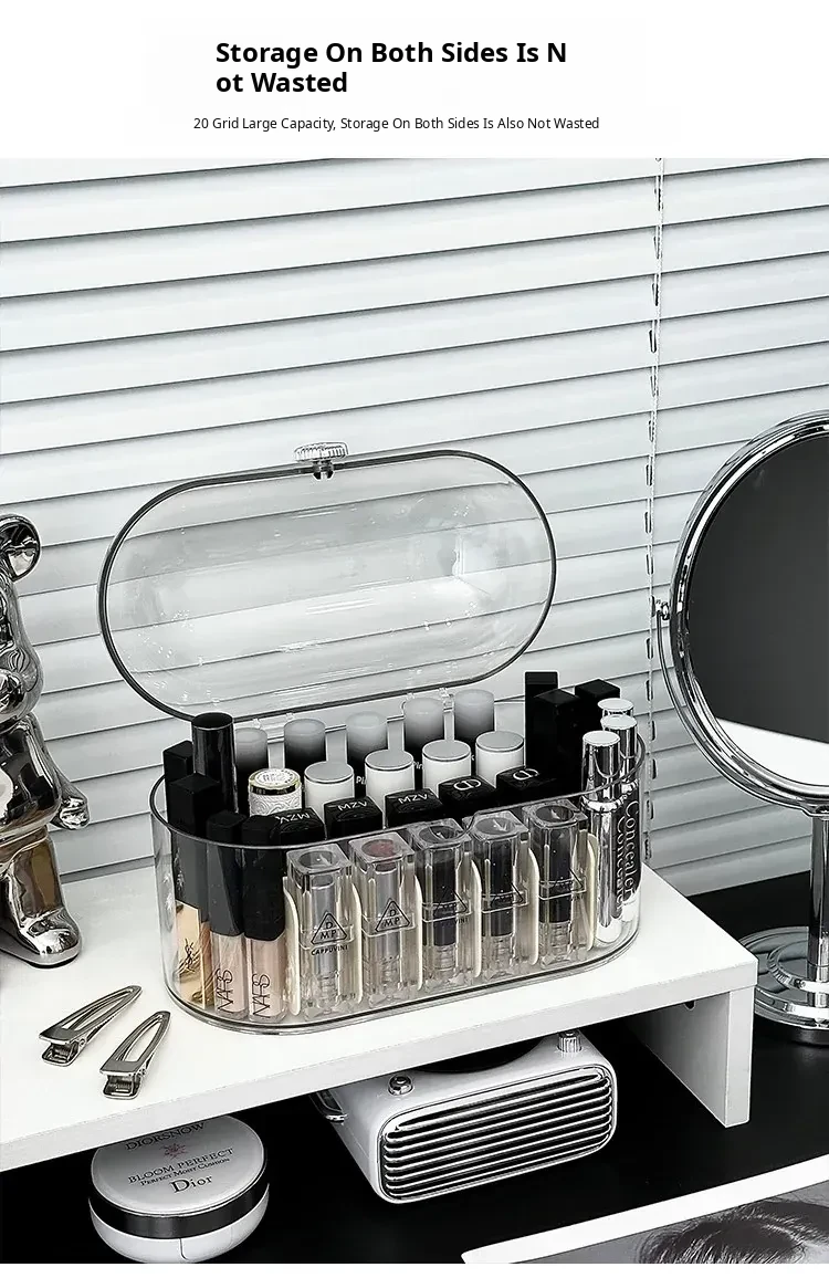 Elegant Desktop Lipstick Organizer with Lid - Dustproof Makeup Storage Box with Transparent Dividers for a Stylish Vanity Setup