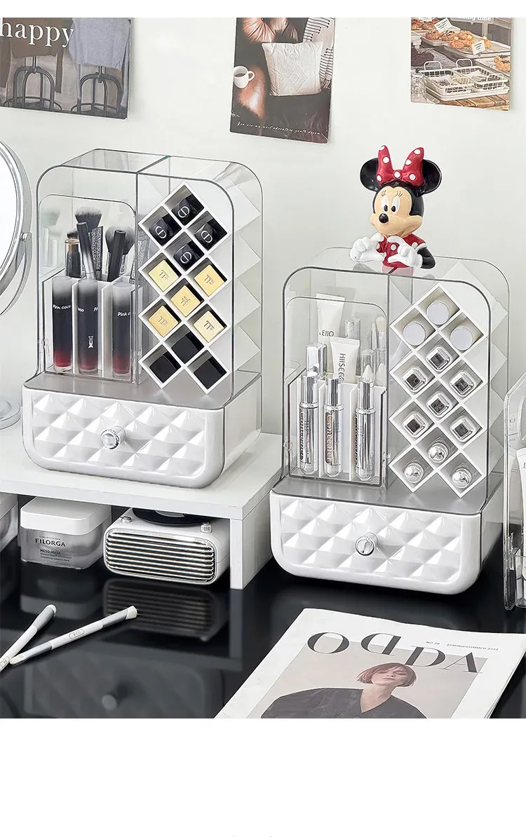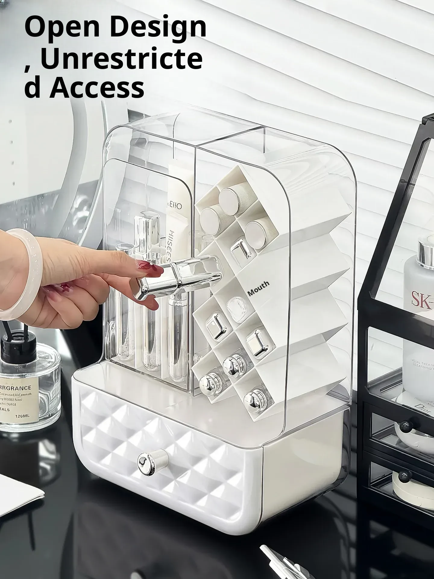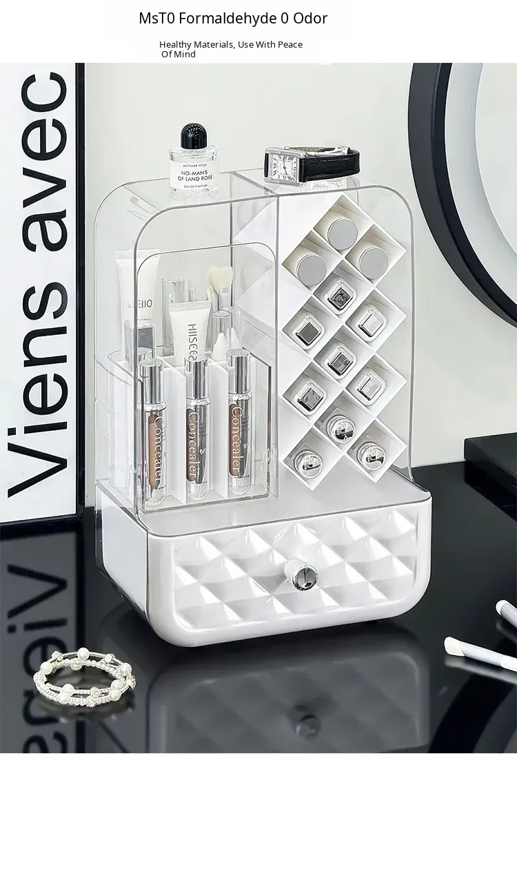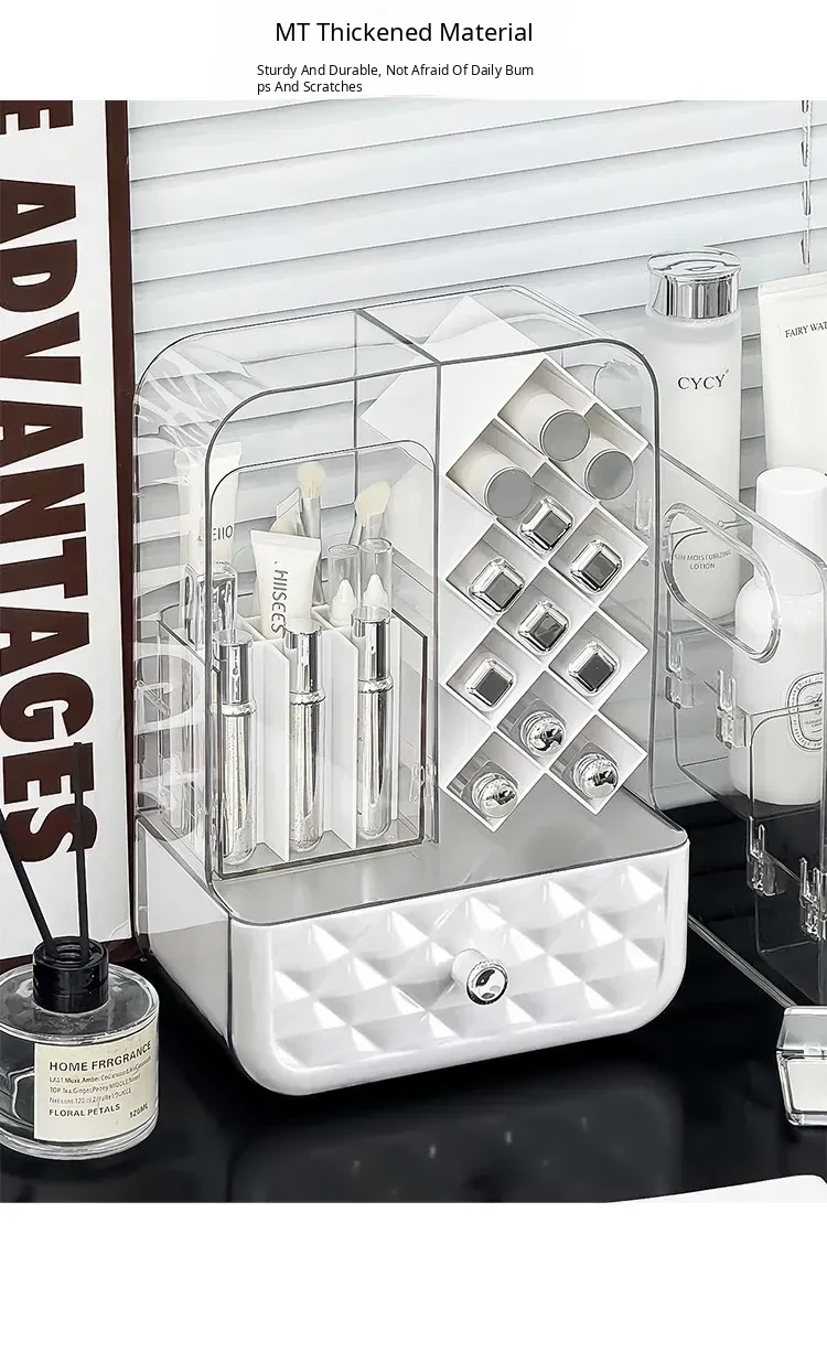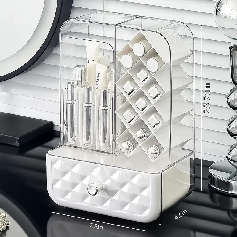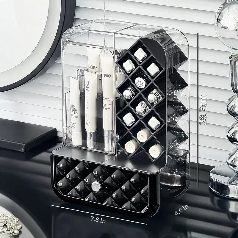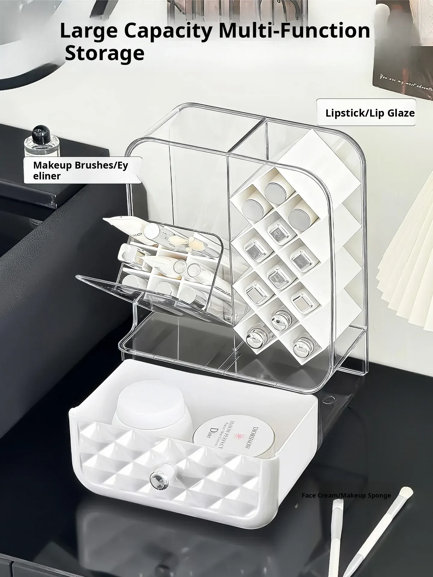 Elegant Lipstick Organizer with Makeup Brush Holder - Dustproof Display Rack for Lip Gloss and Cosmetics, Perfect for Your Vanity Table