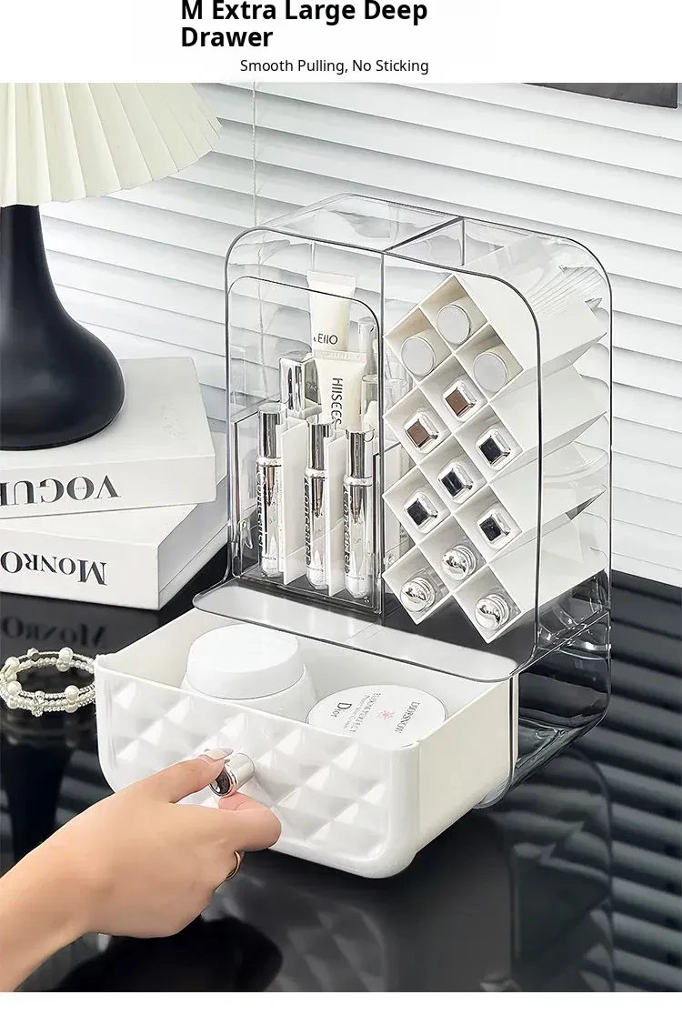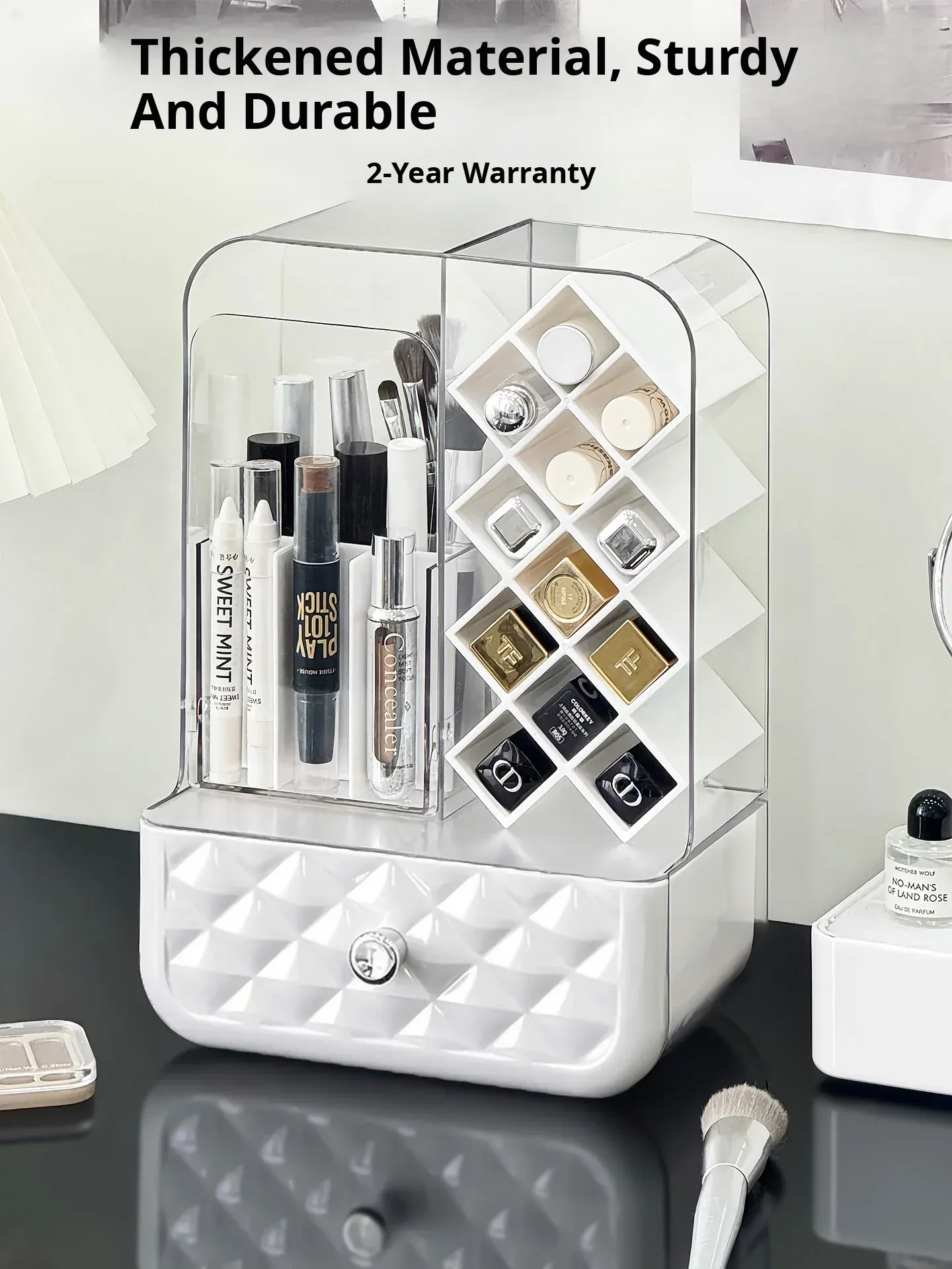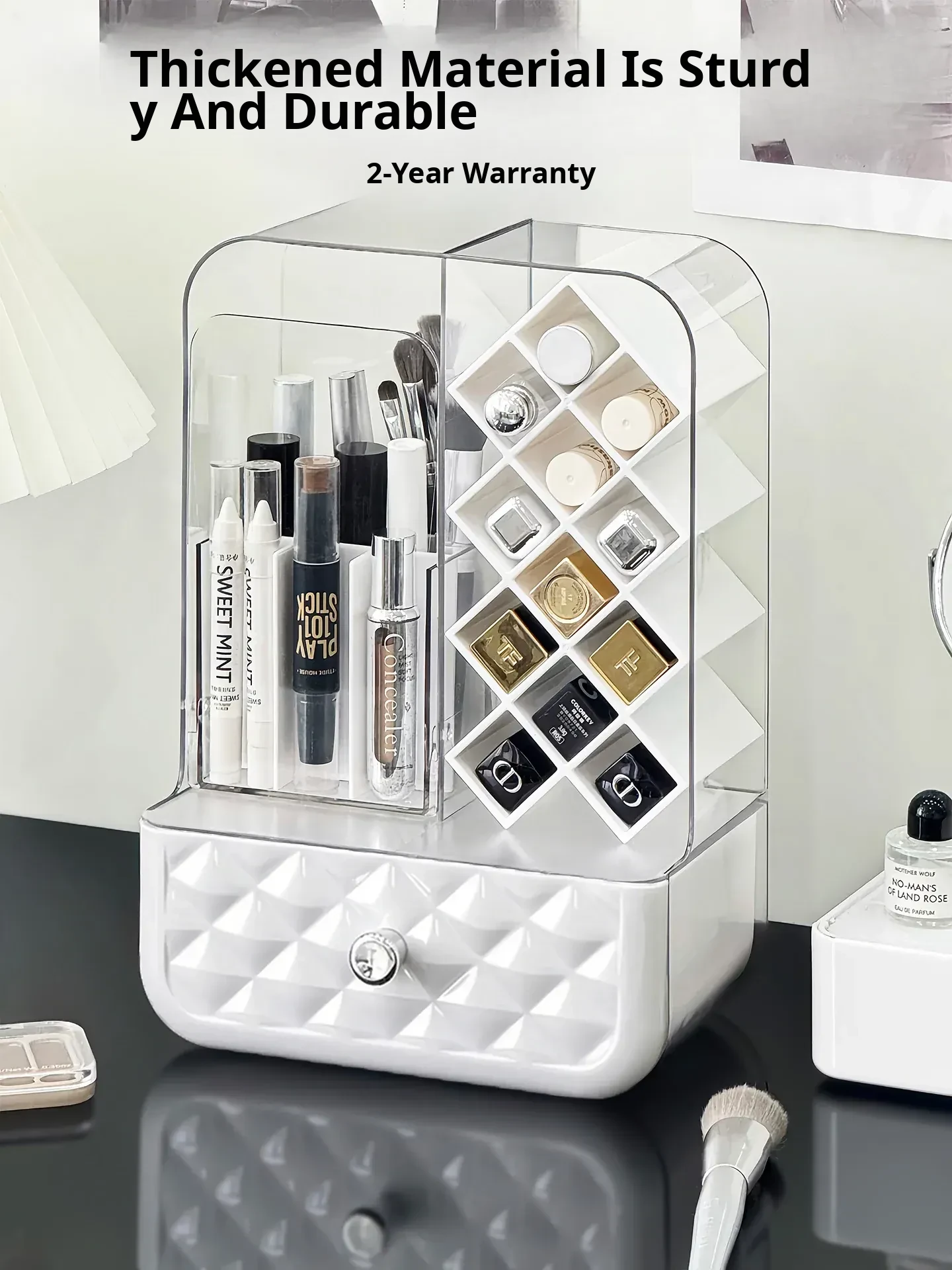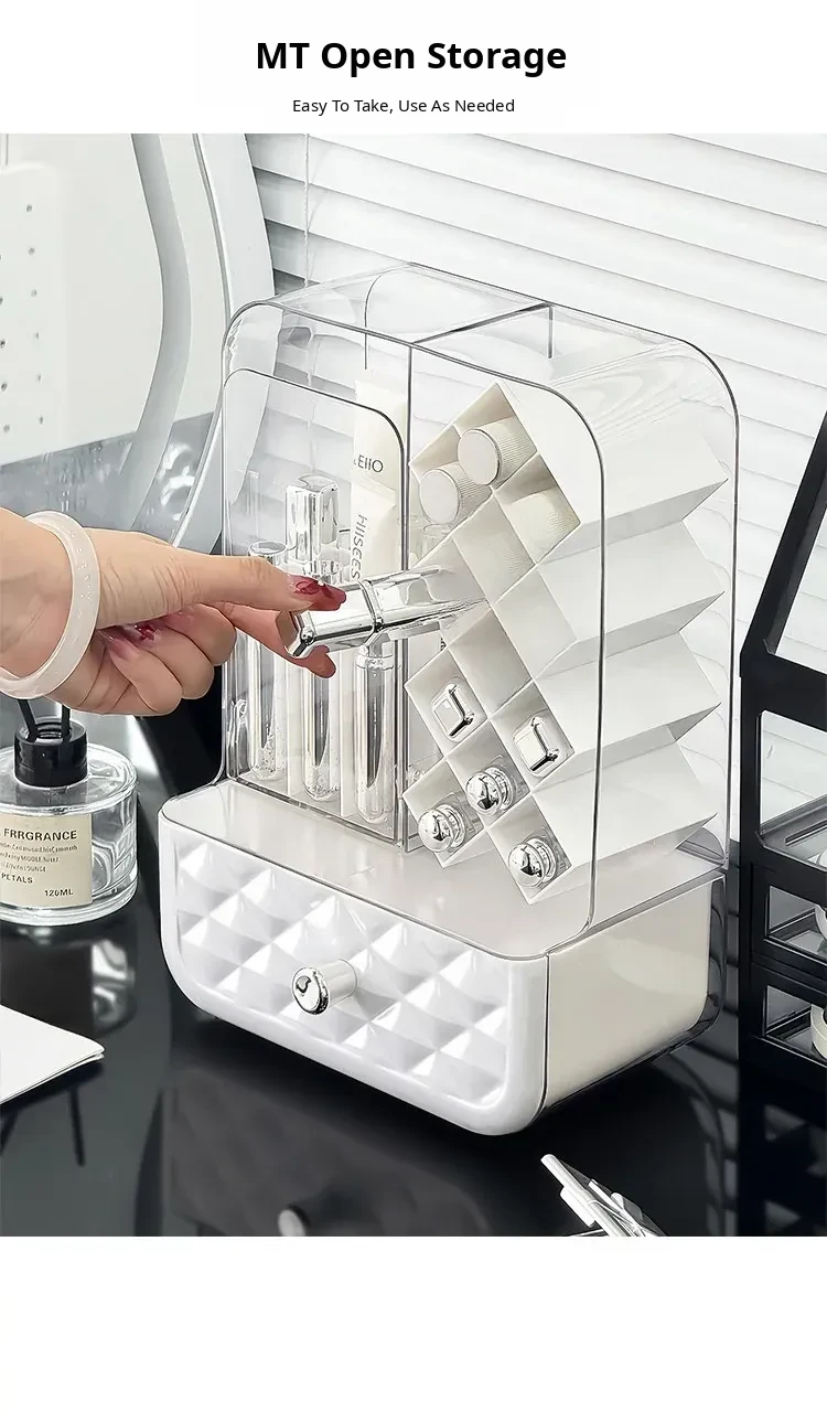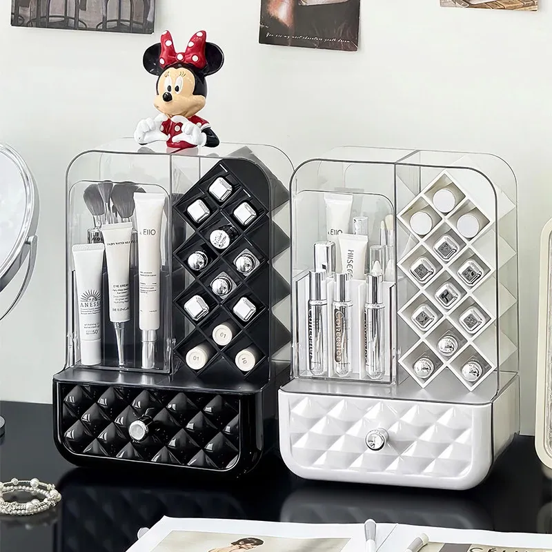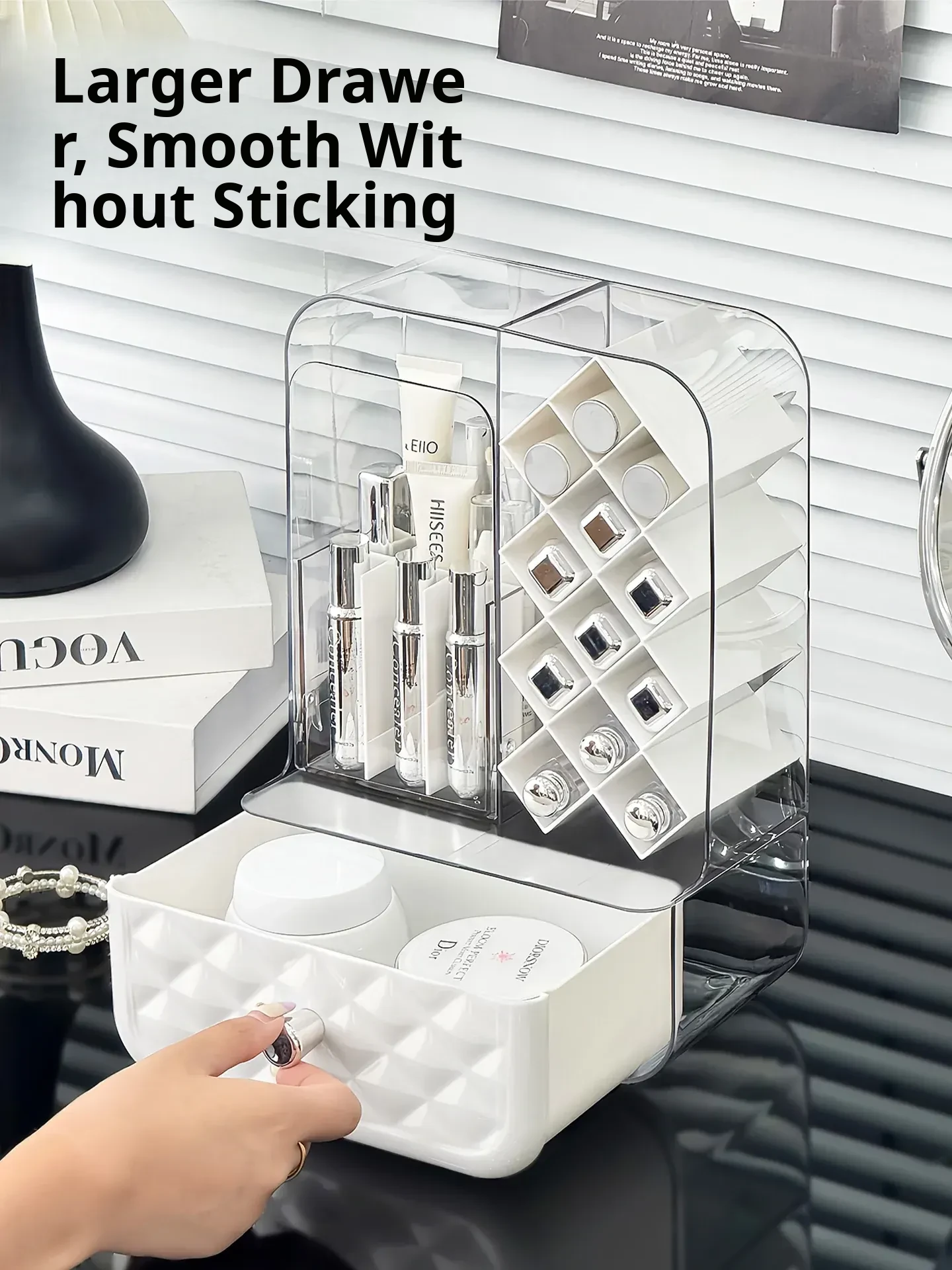 Elegant Lipstick Organizer with Makeup Brush Holder - Dustproof Display Rack for Lip Gloss and Cosmetics, Perfect for Your Vanity Table
