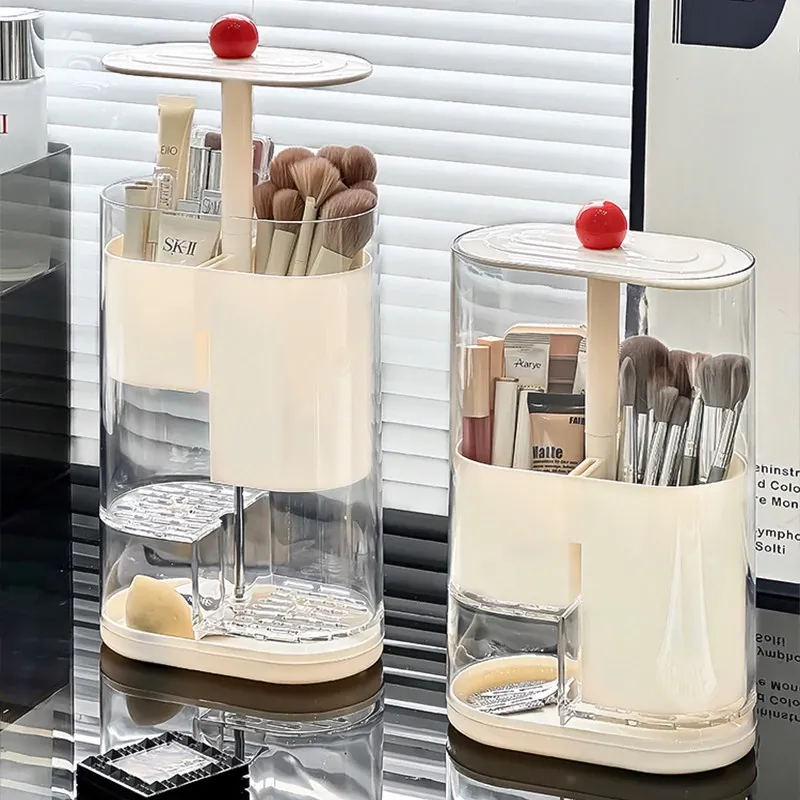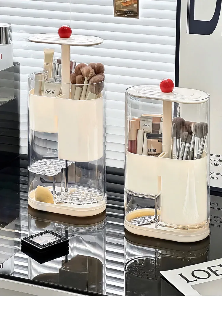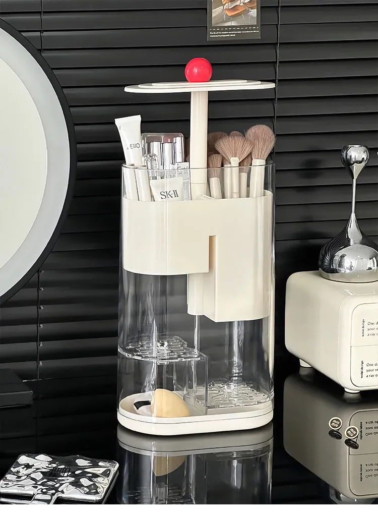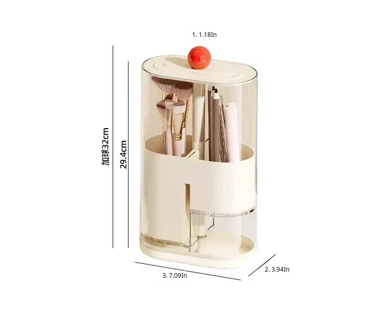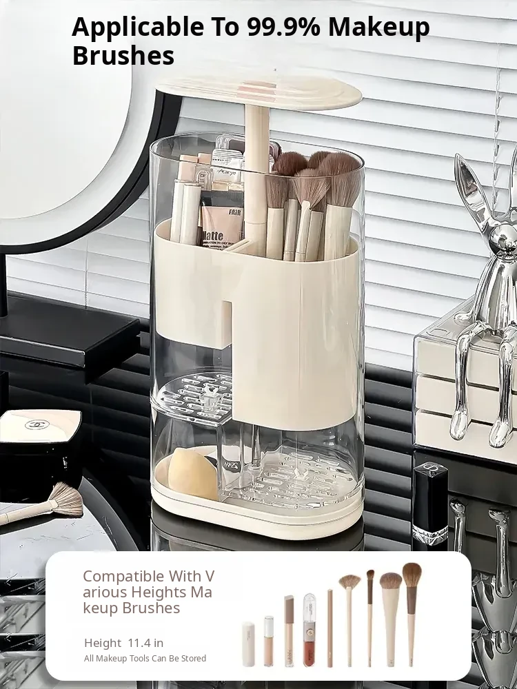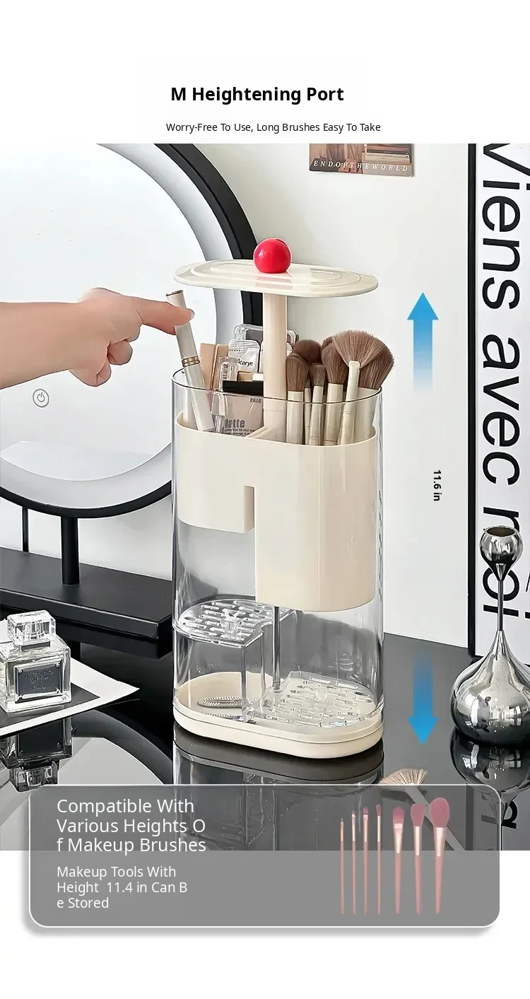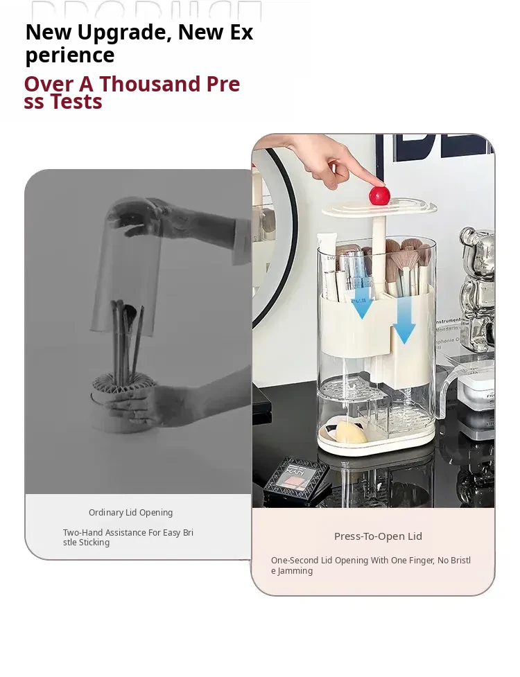 Elegant Makeup Brush Storage Cylinder - Dustproof and Press-Activated Organizer for Eyebrow Pencils and Powder Brushes with Automatic Lift Feature for Your Vanity