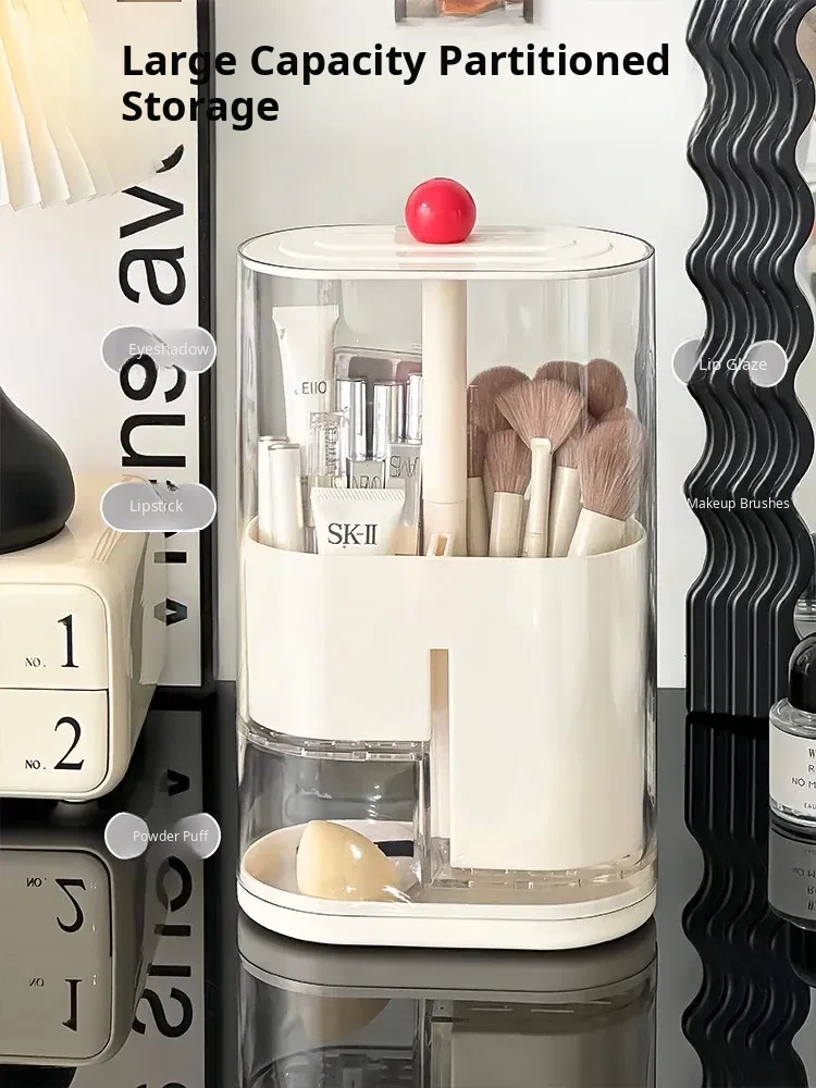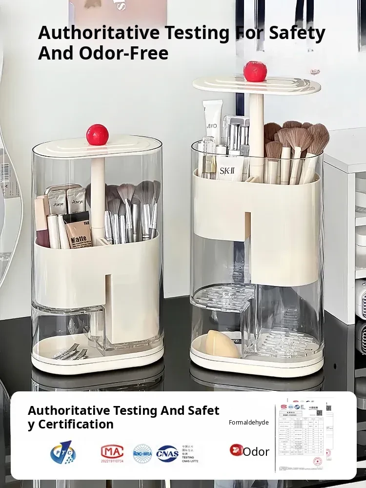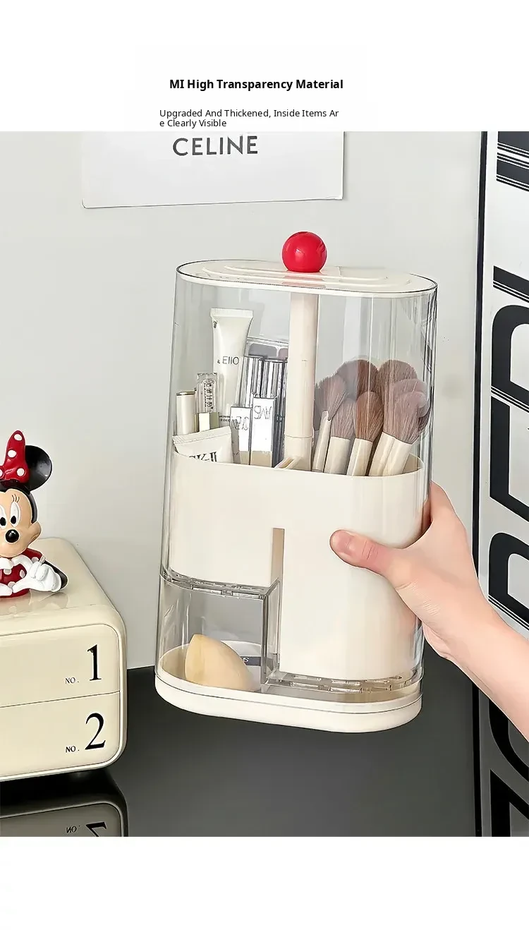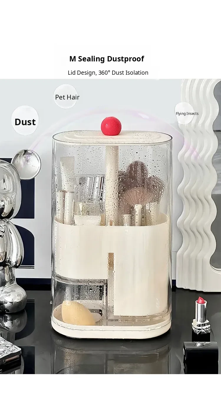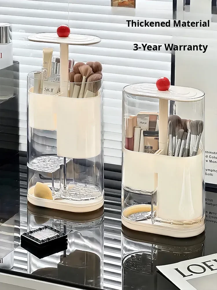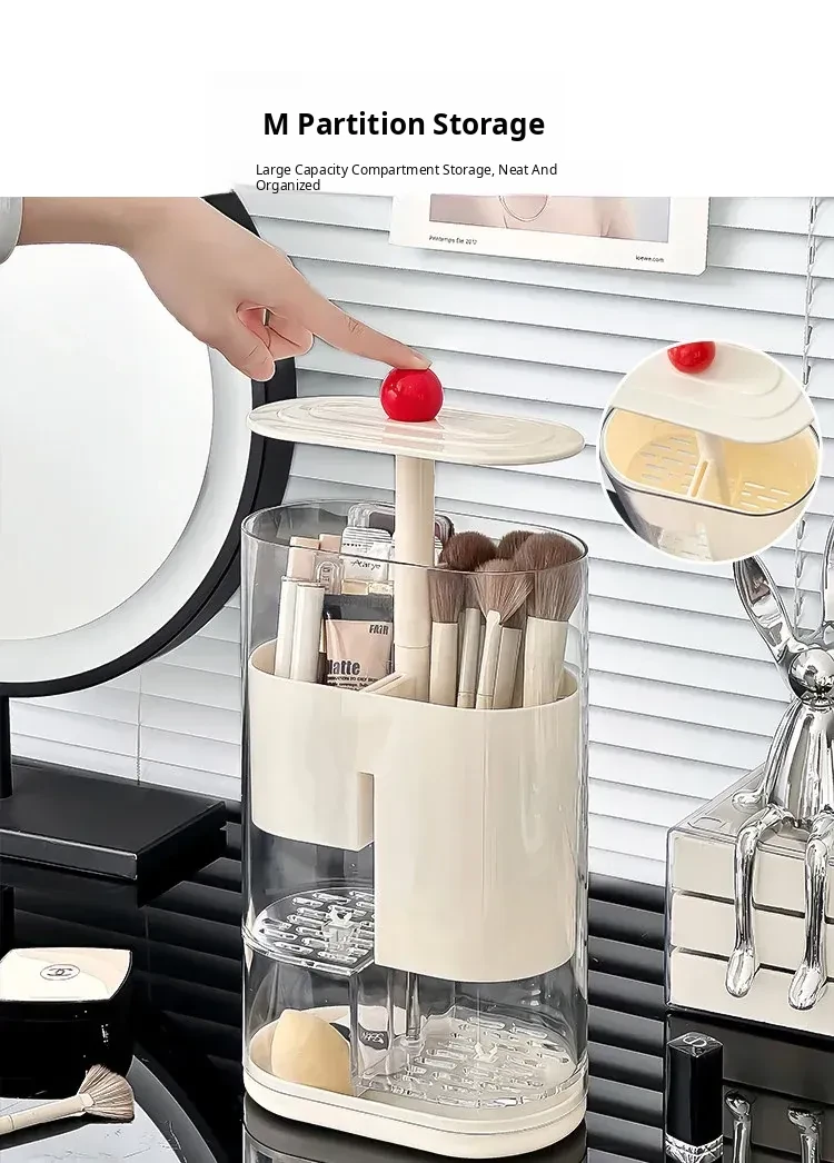 Elegant Makeup Brush Storage Cylinder - Dustproof and Press-Activated Organizer for Eyebrow Pencils and Powder Brushes with Automatic Lift Feature for Your Vanity