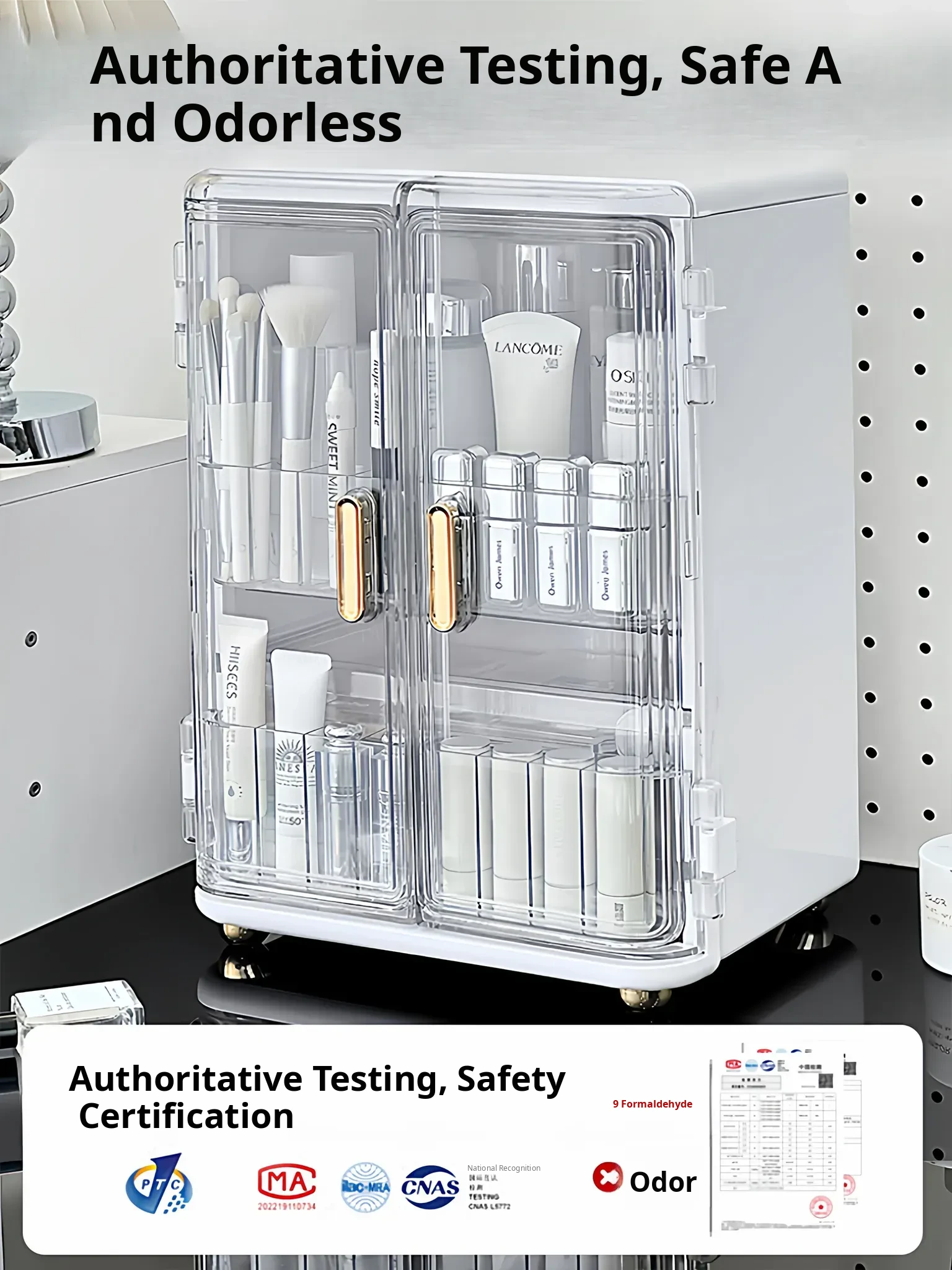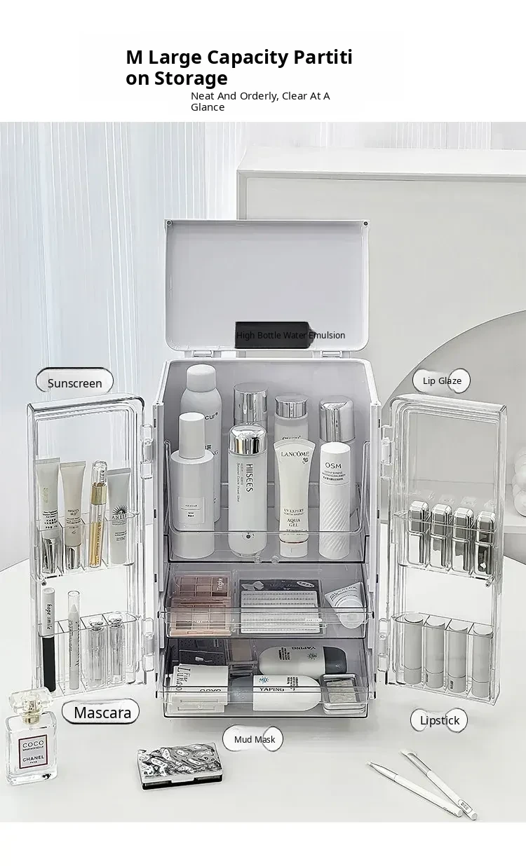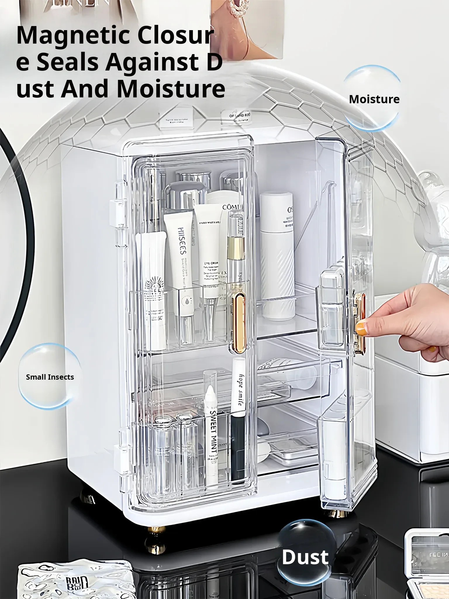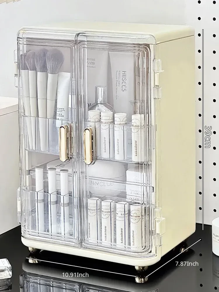 Elegant Makeup Organizer: Desktop Storage Cabinet for Cosmetics, Skincare Products, and Makeup Brushes - Stylish Vanity Box for a Clutter-Free Space