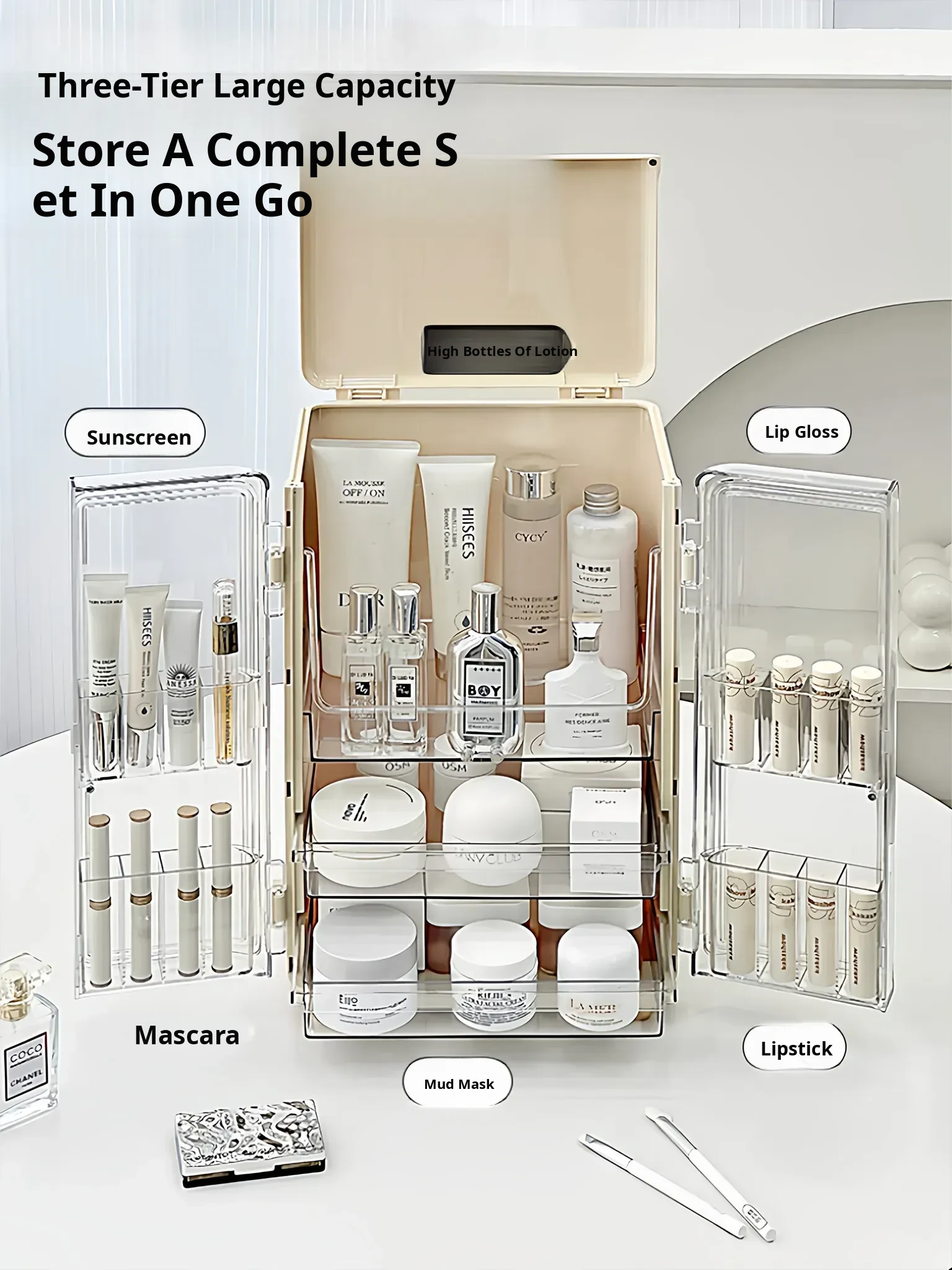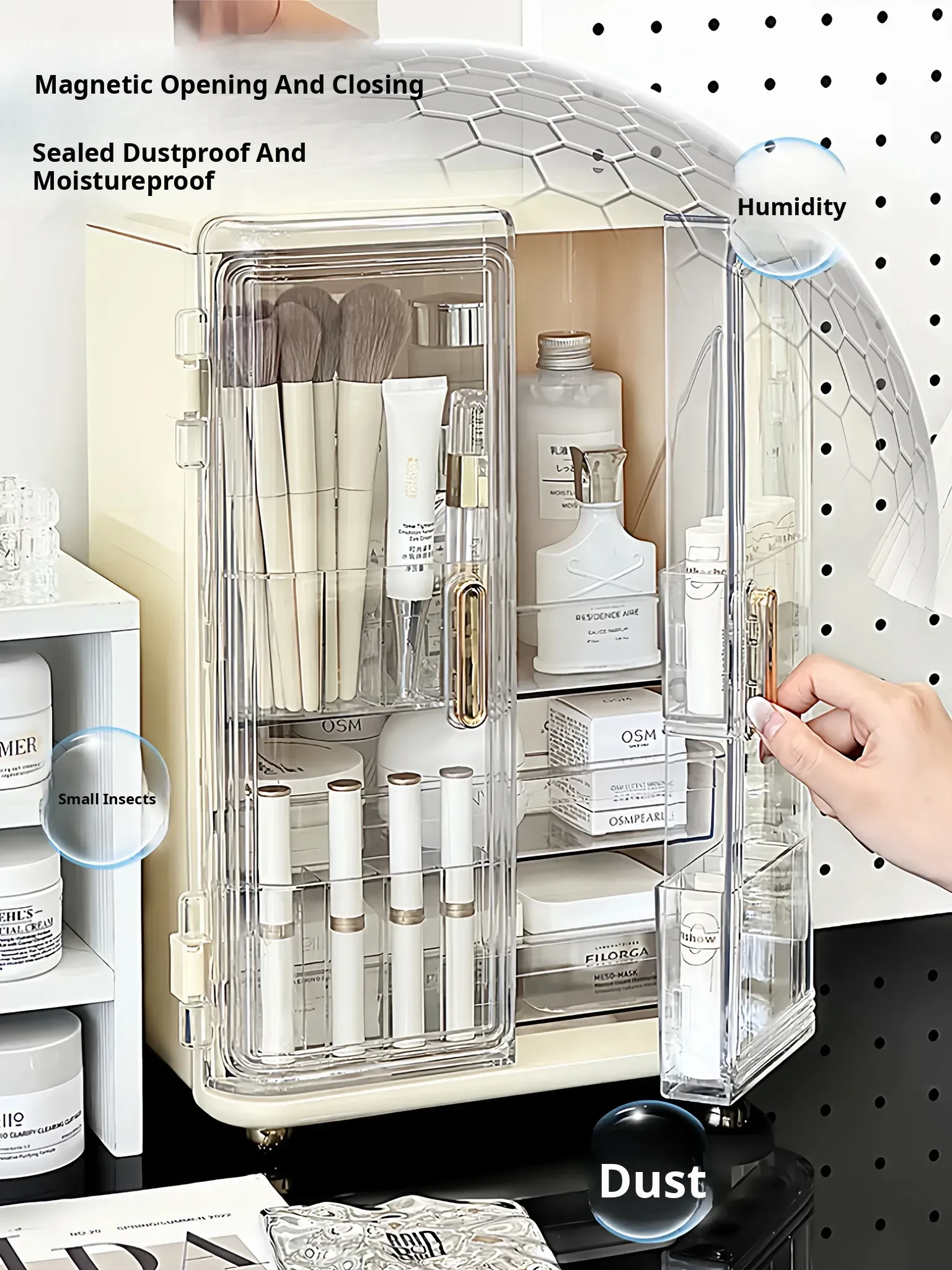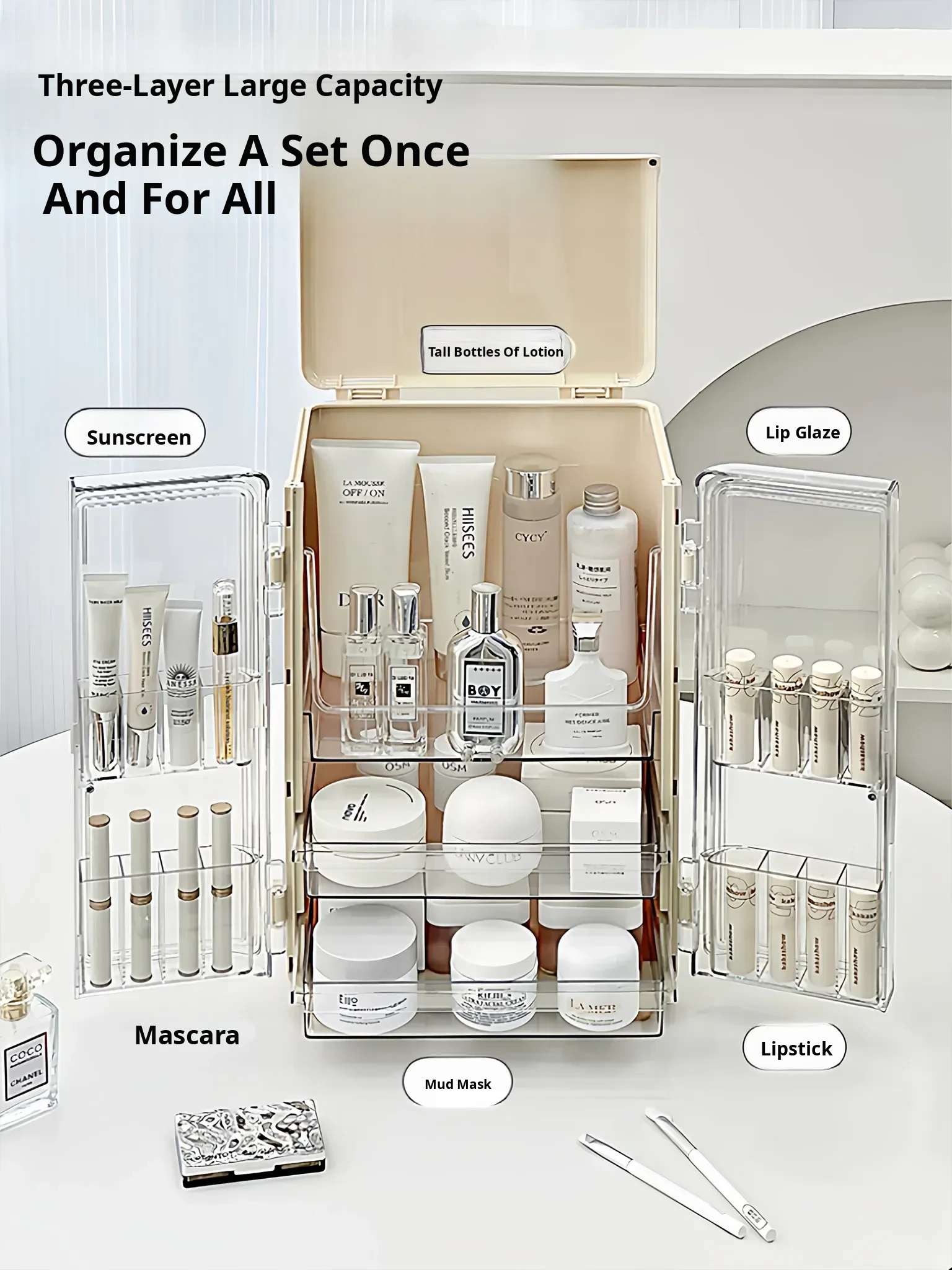 Elegant Multi-Layer Acrylic Makeup Organizer - Dustproof Cosmetic Storage Box for Vanity Table - Ideal for Skincare Products and Accessories