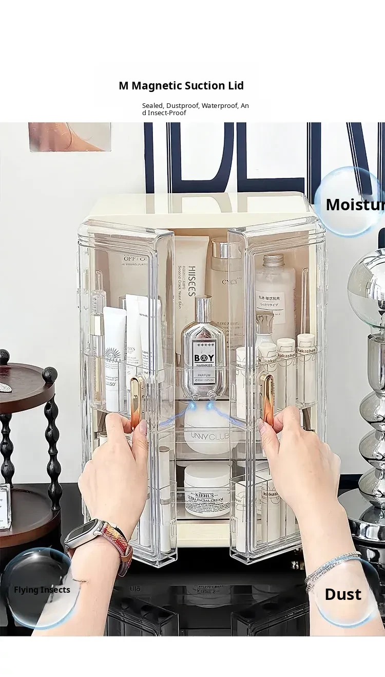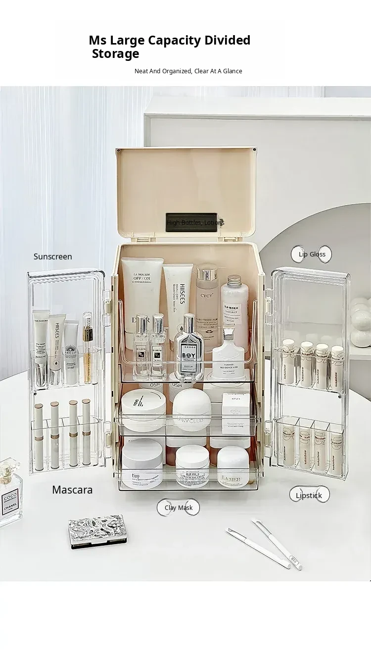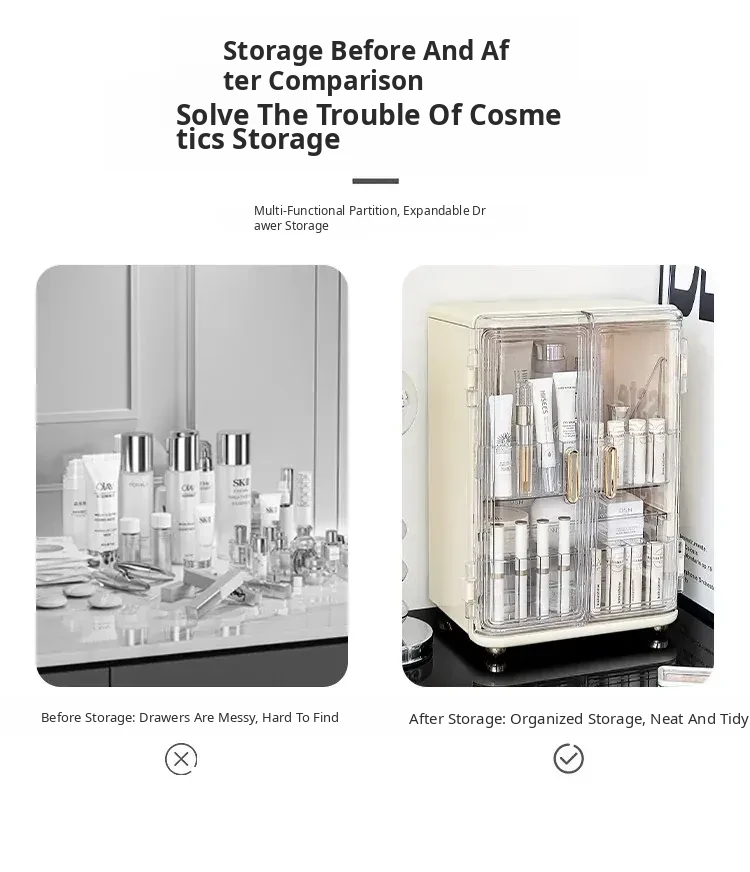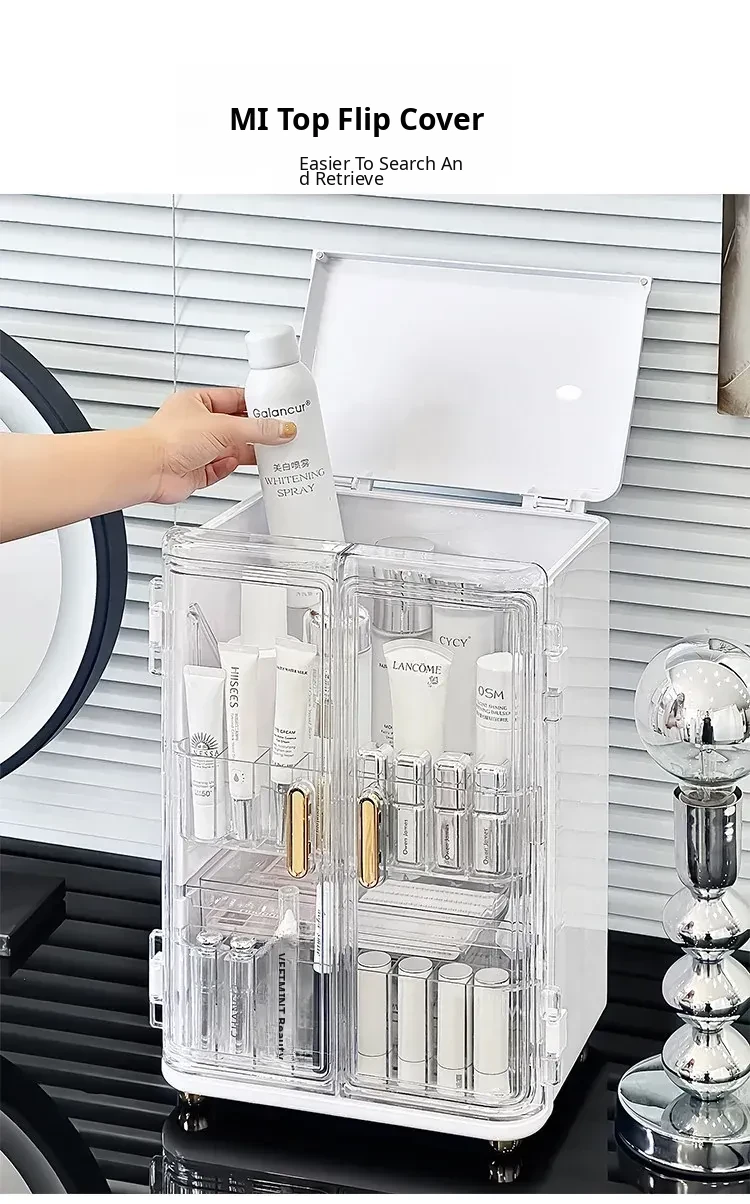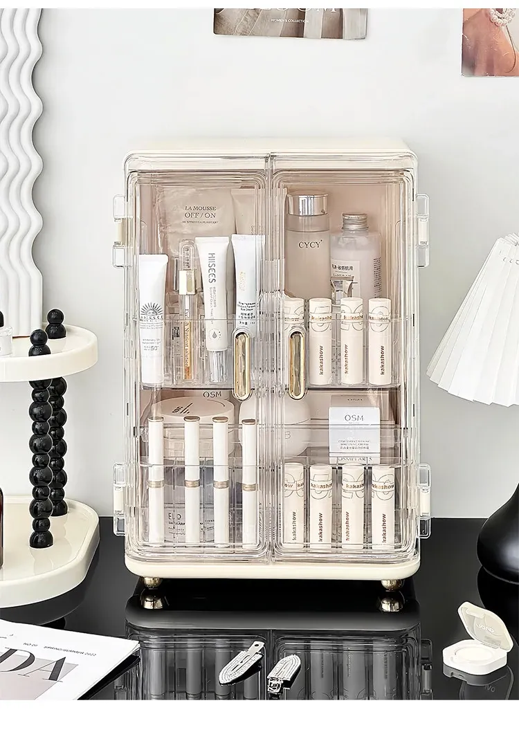 Elegant Multi-Layer Acrylic Makeup Organizer - Dustproof Cosmetic Storage Box for Vanity Table - Ideal for Skincare Products and Accessories