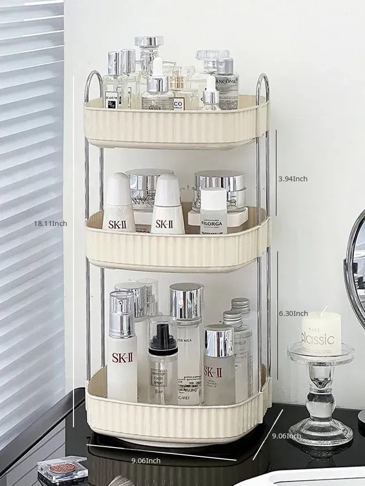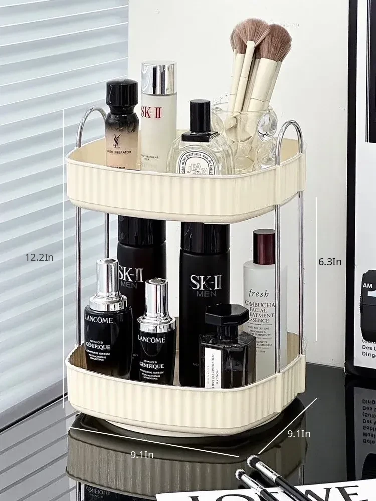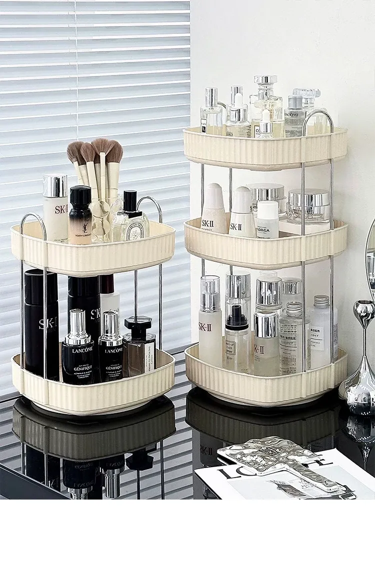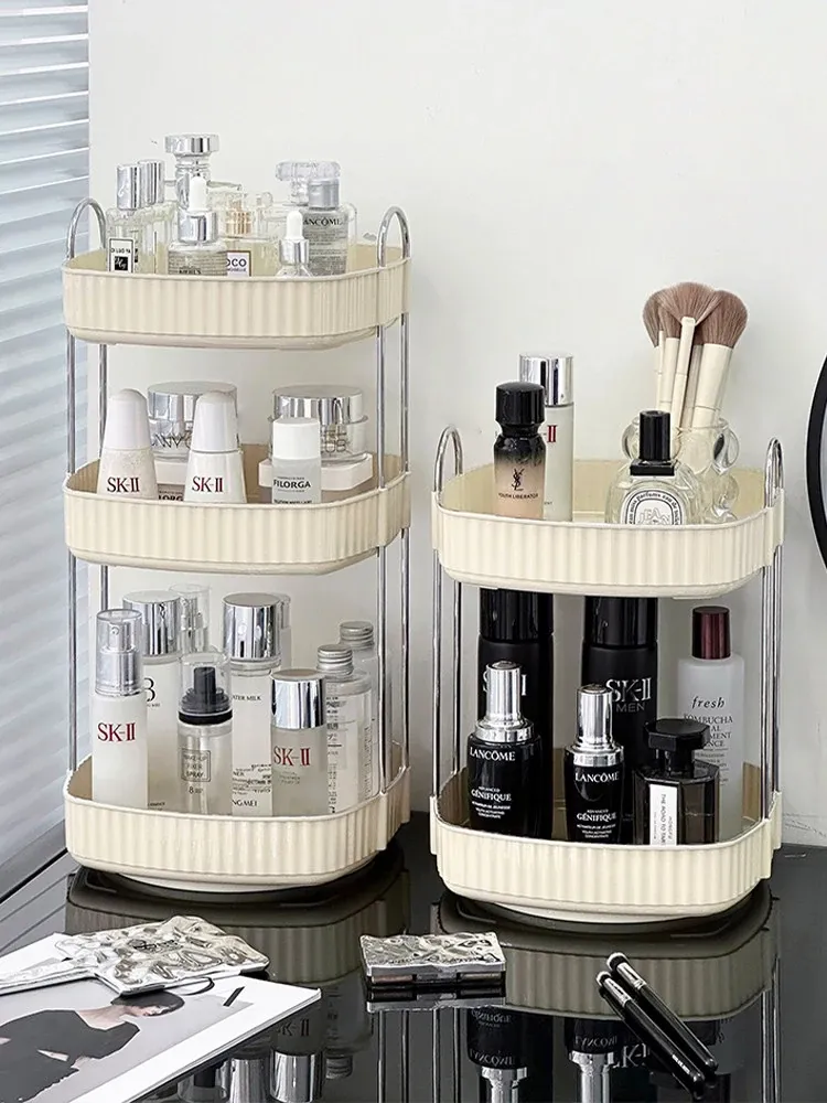 Elegant Rotating Makeup Organizer - Stylish Cosmetic Storage Box for Skincare Products, Perfumes, and Lipsticks - Perfect for Your Vanity Desk!