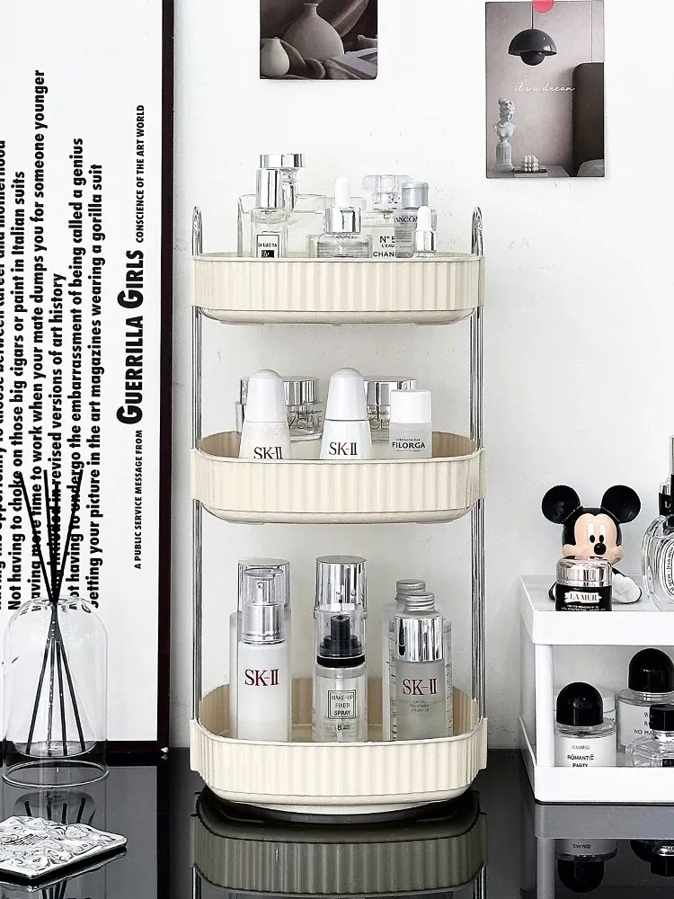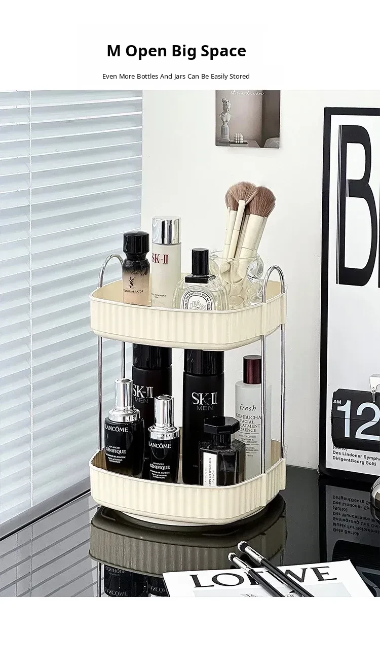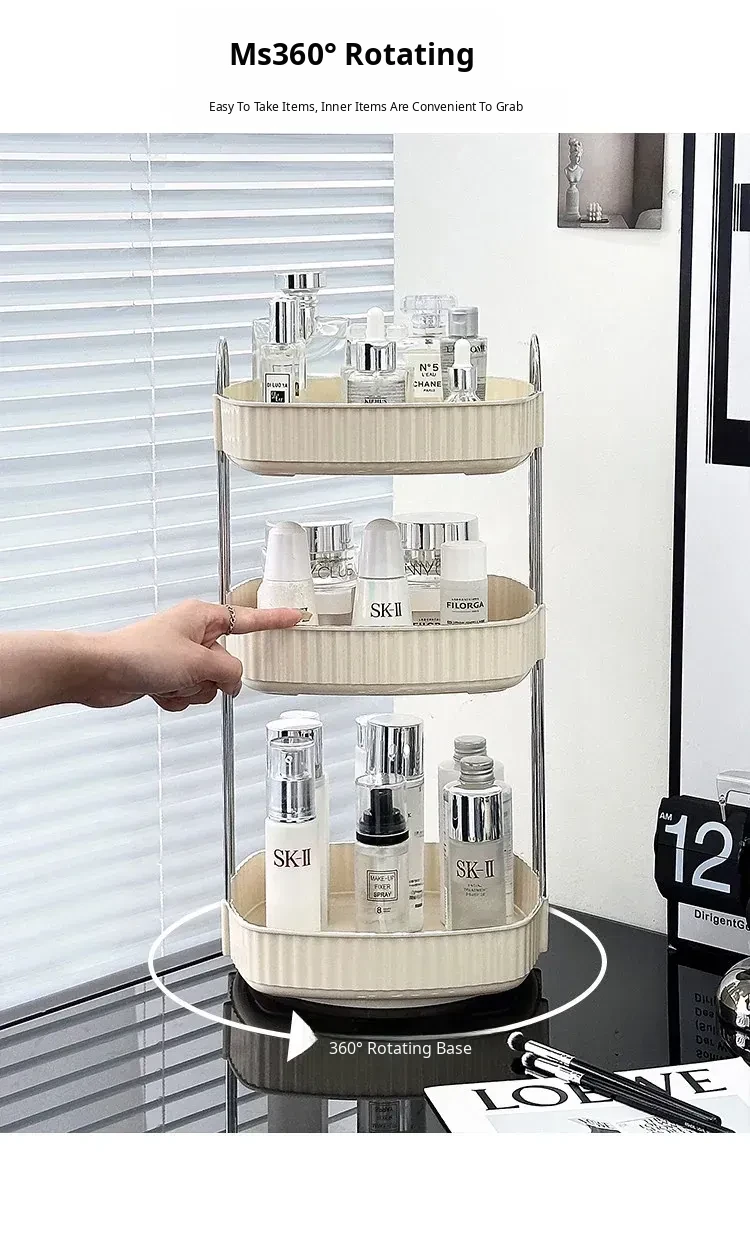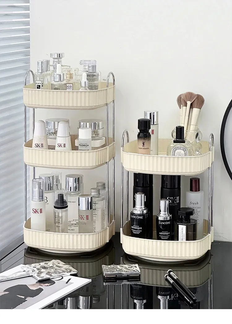 Elegant Rotating Makeup Organizer - Stylish Cosmetic Storage Box for Skincare Products, Perfumes, and Lipsticks - Perfect for Your Vanity Desk!