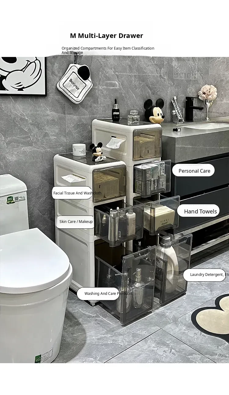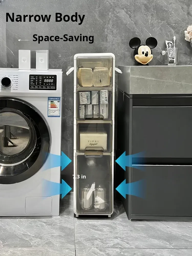 Narrow Space Storage Cabinet for Bathroom - Slim Bathroom Organizer with Drawers, Perfect for Toilet Side Storage and Maximizing Small Areas