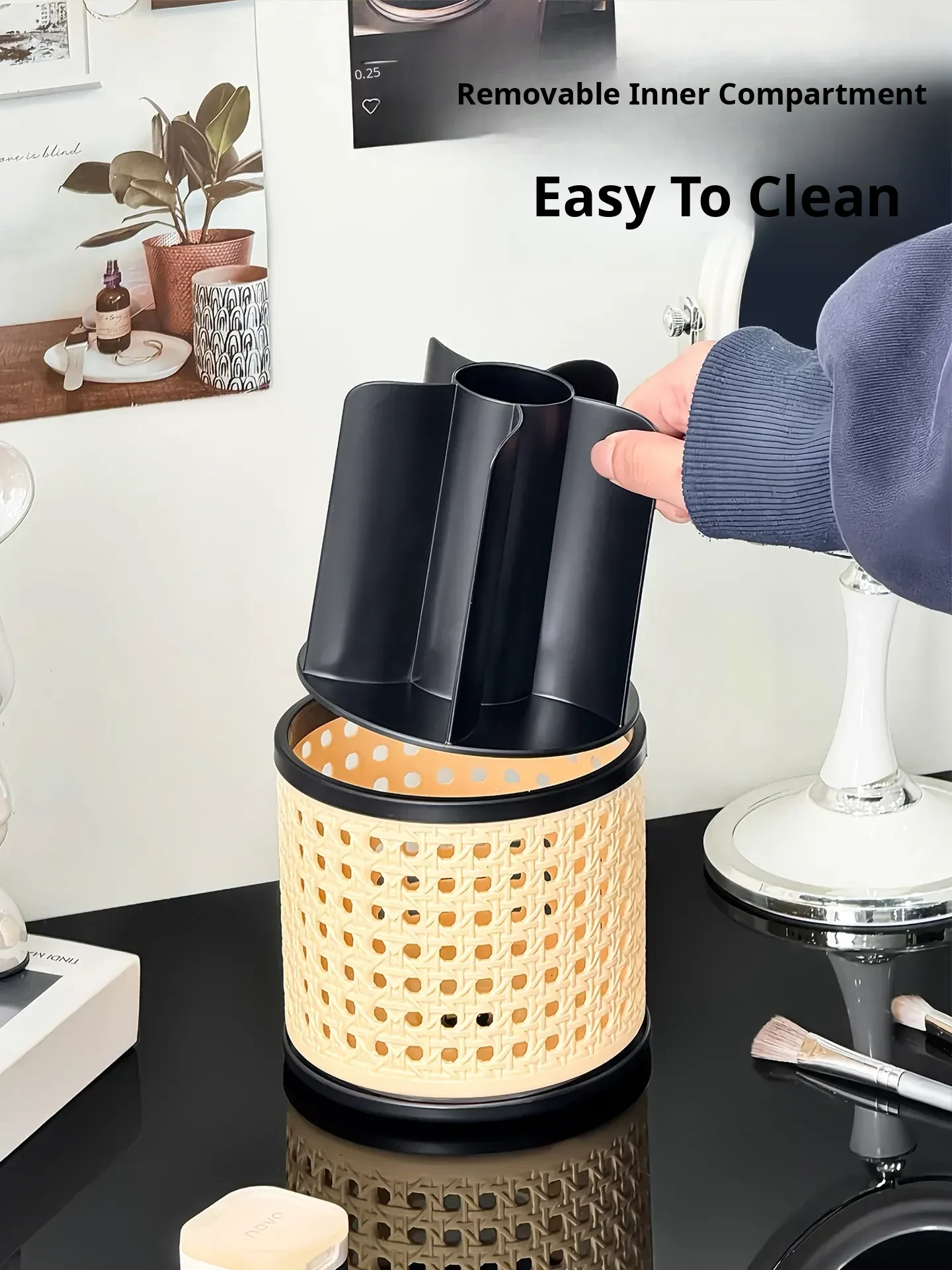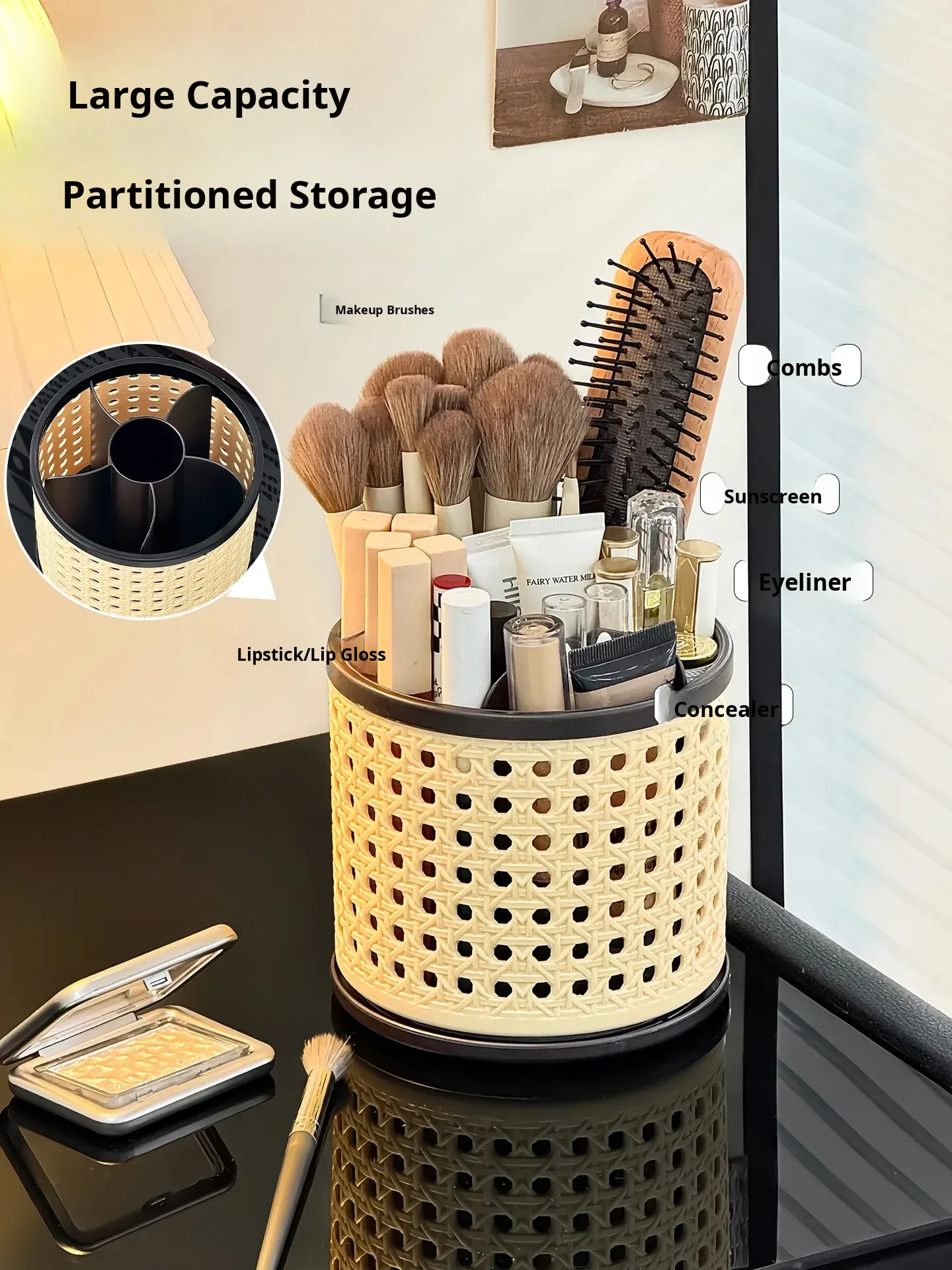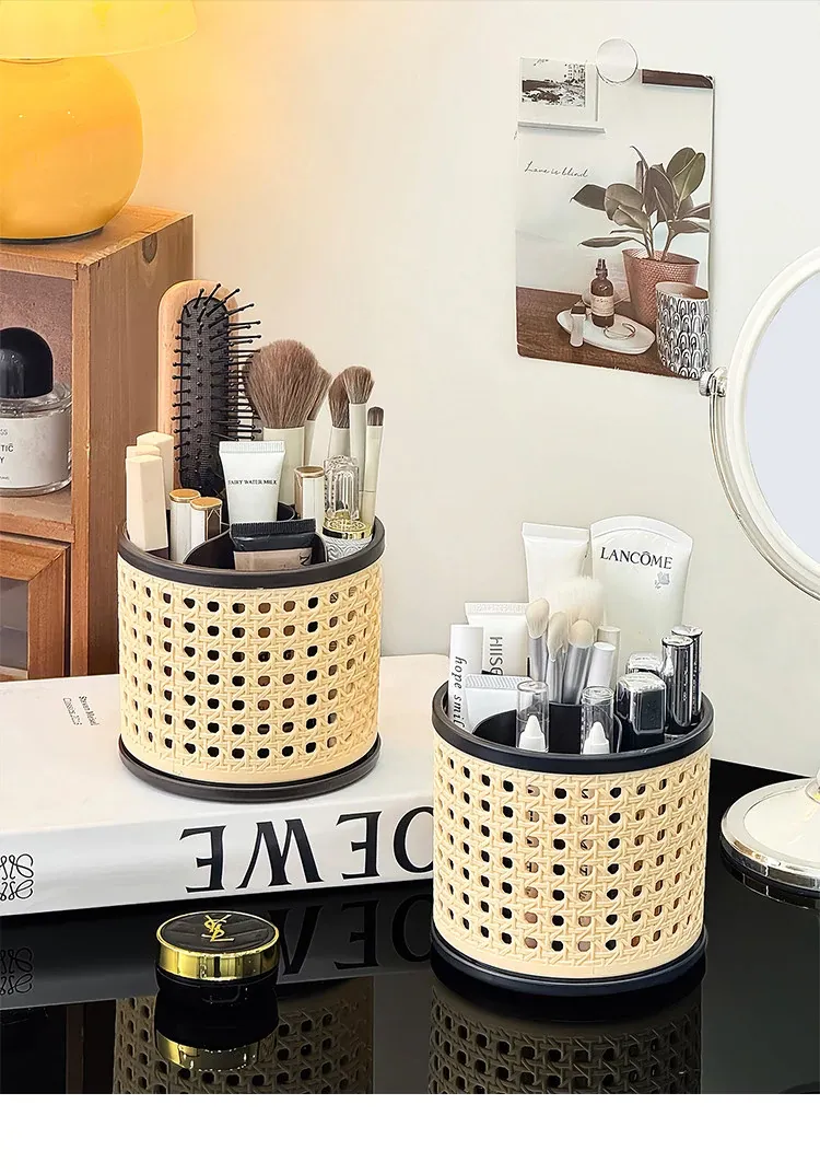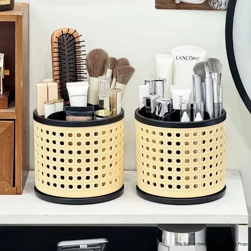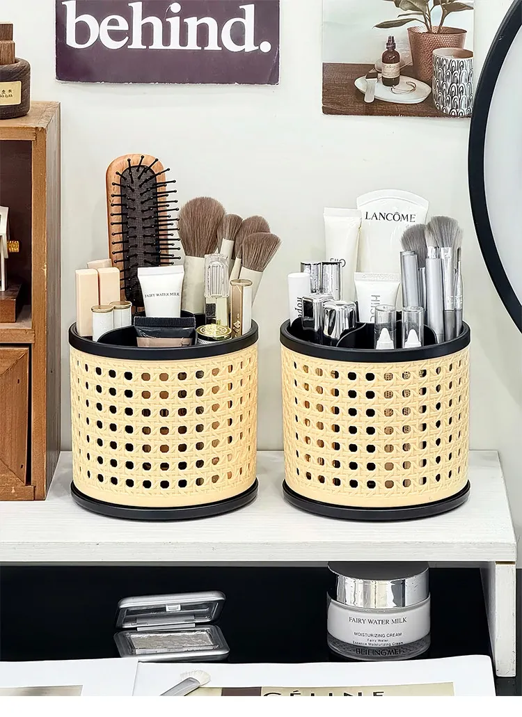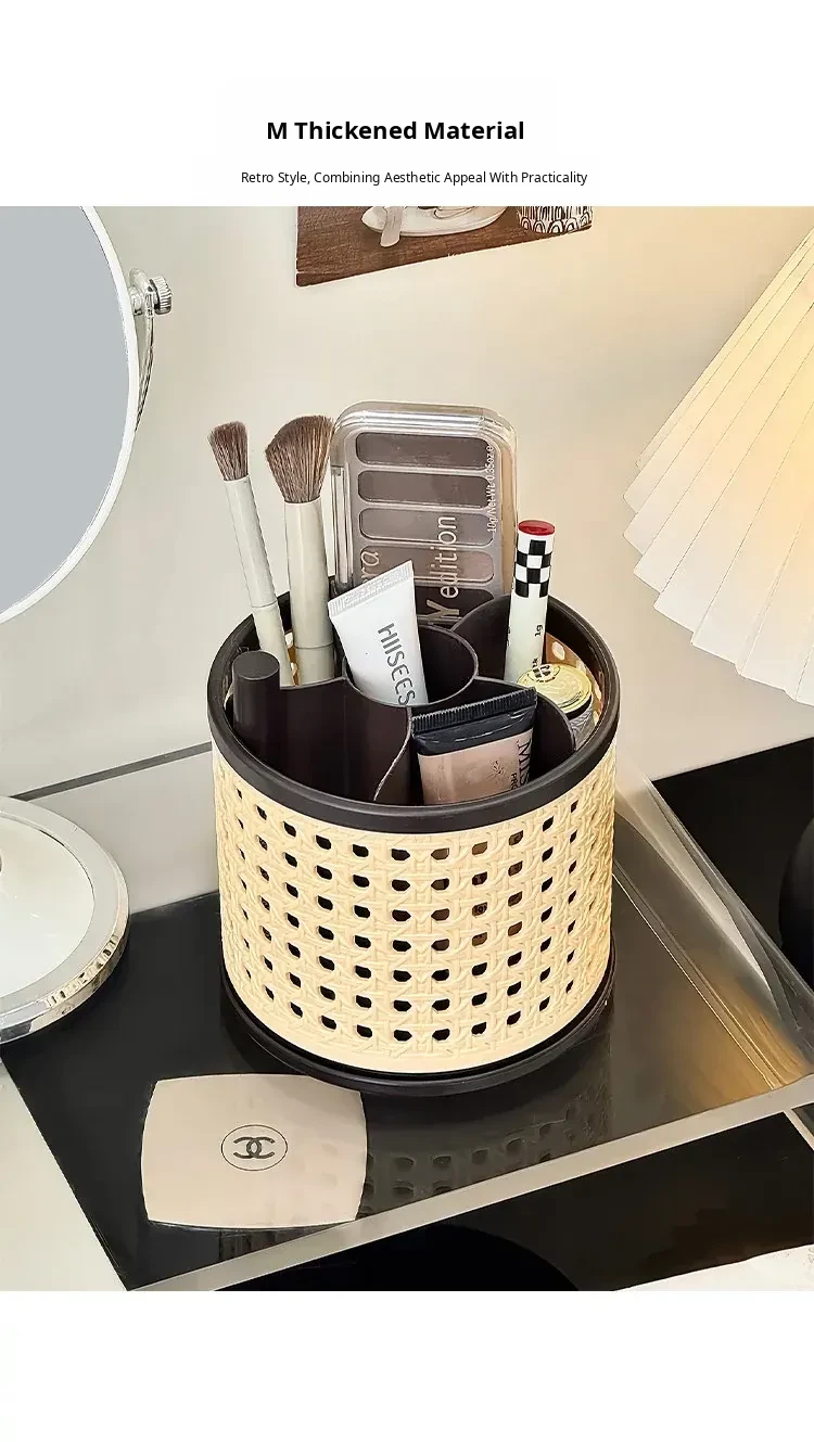 Premium Makeup Brush Organizer - Elegant Desktop Storage Box for Cosmetics, Featuring Divided Compartments for Eyebrow Pencils and Eyeshadow Brushes