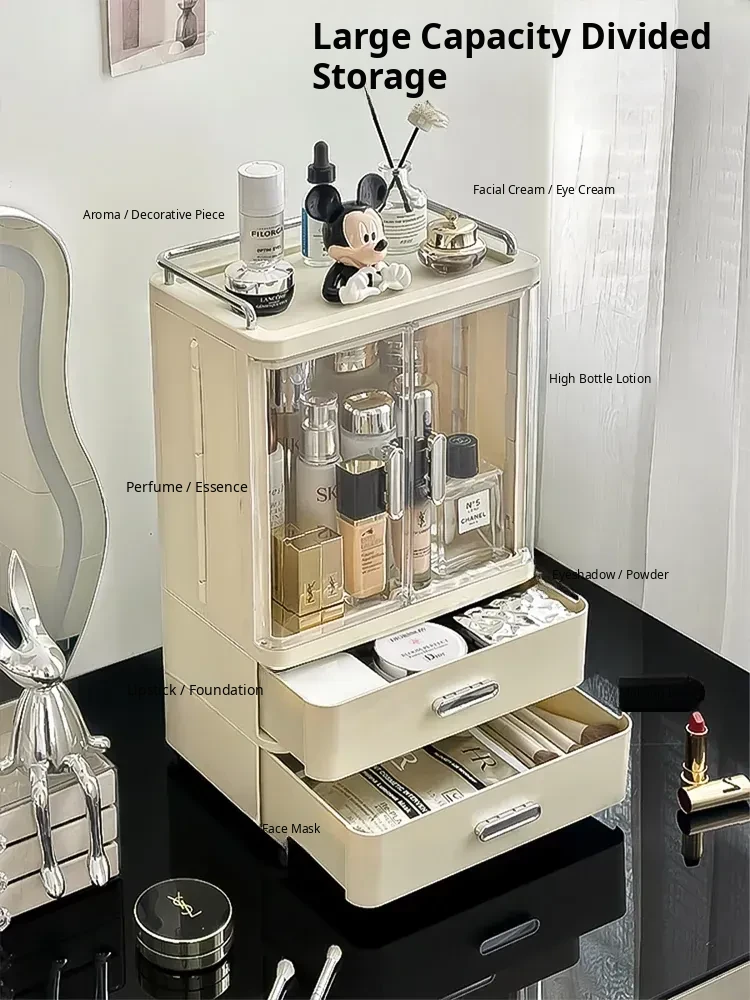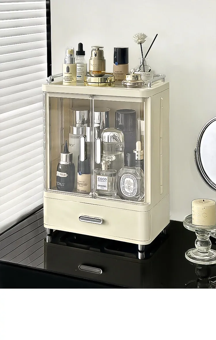 Premium Makeup Organizer Box - Large Capacity Dustproof Storage for Vanity, Perfect for Skincare and Perfume Display, Keeps Your Cosmetics Neat and Elegant!