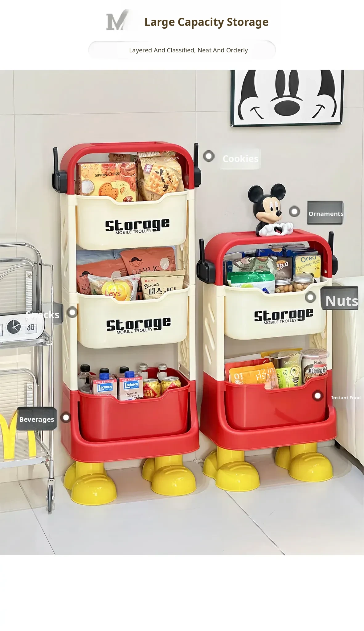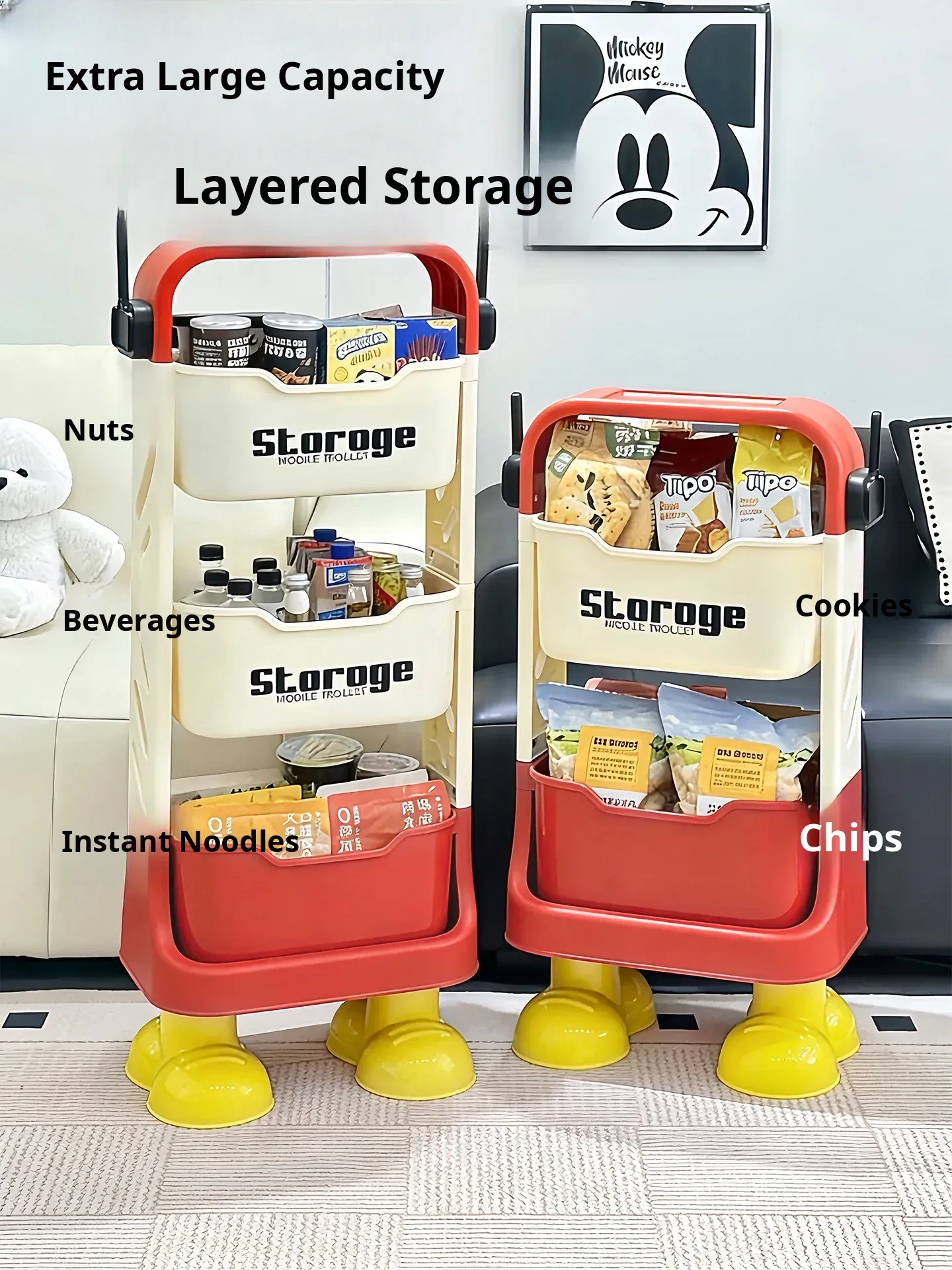 Stylish Multi-Layer Snack Storage Cart with Wheels - Perfect for Organizing Toys and Snacks in Your Living Room!