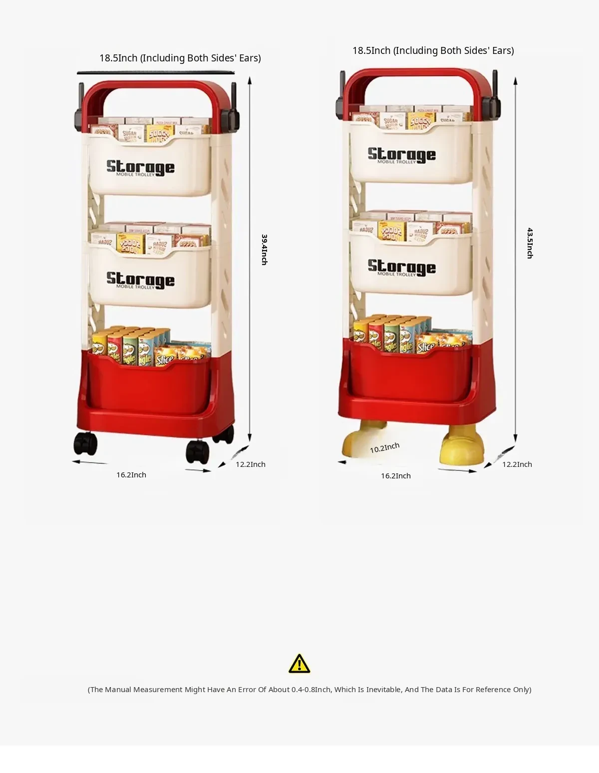 【Wheeled, Red & White, 3-Tier】Quality Guaranteed✅Stable and Not Shaking