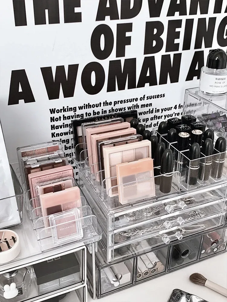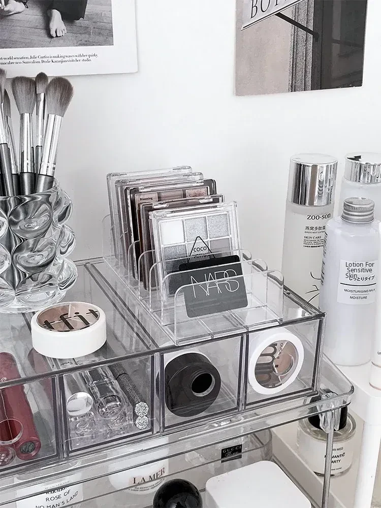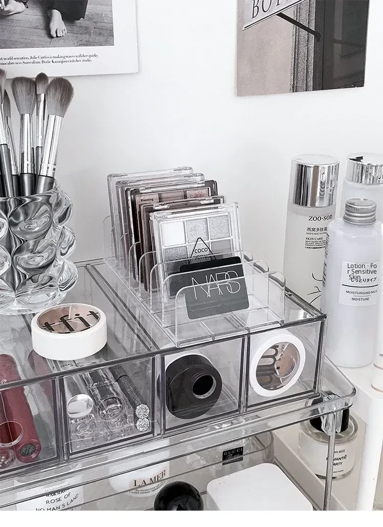 Transparent Acrylic Eyeshadow Organizer - Stylish Makeup Storage Box for Dressing Table, Featuring Divided Compartments for Easy Access to Cosmetics and Mirror Cabinet Essentials. Perfect for Keeping Your Vanity Neat and Chic!