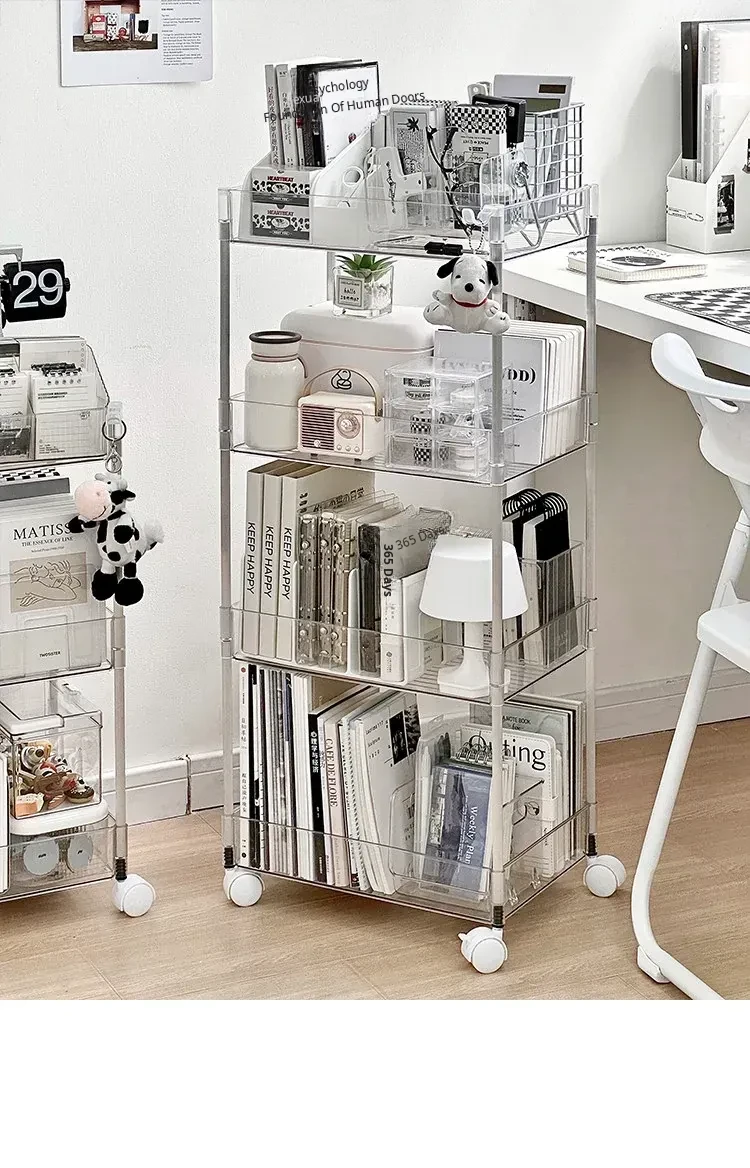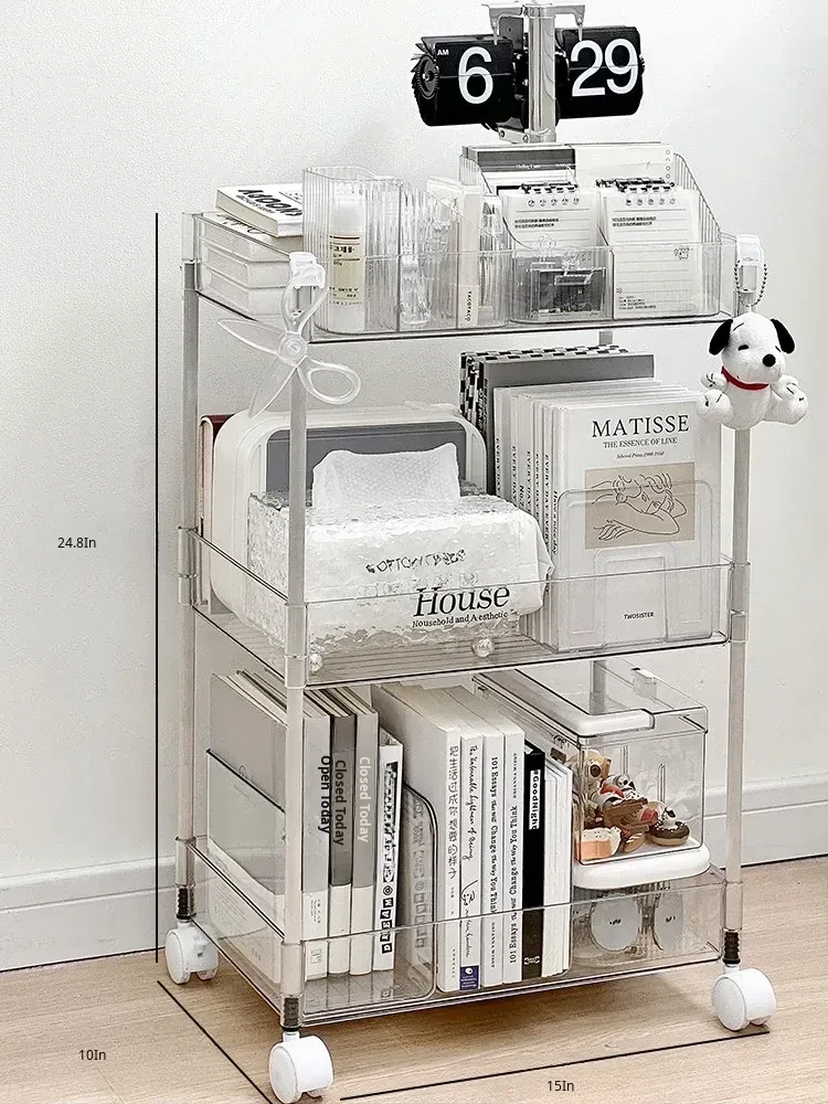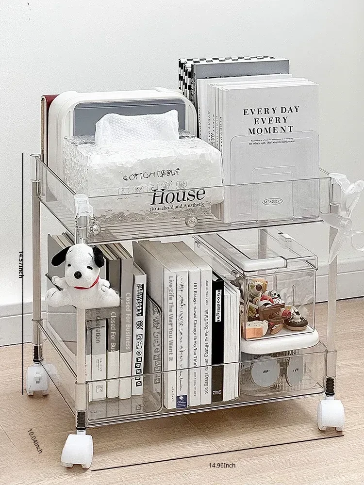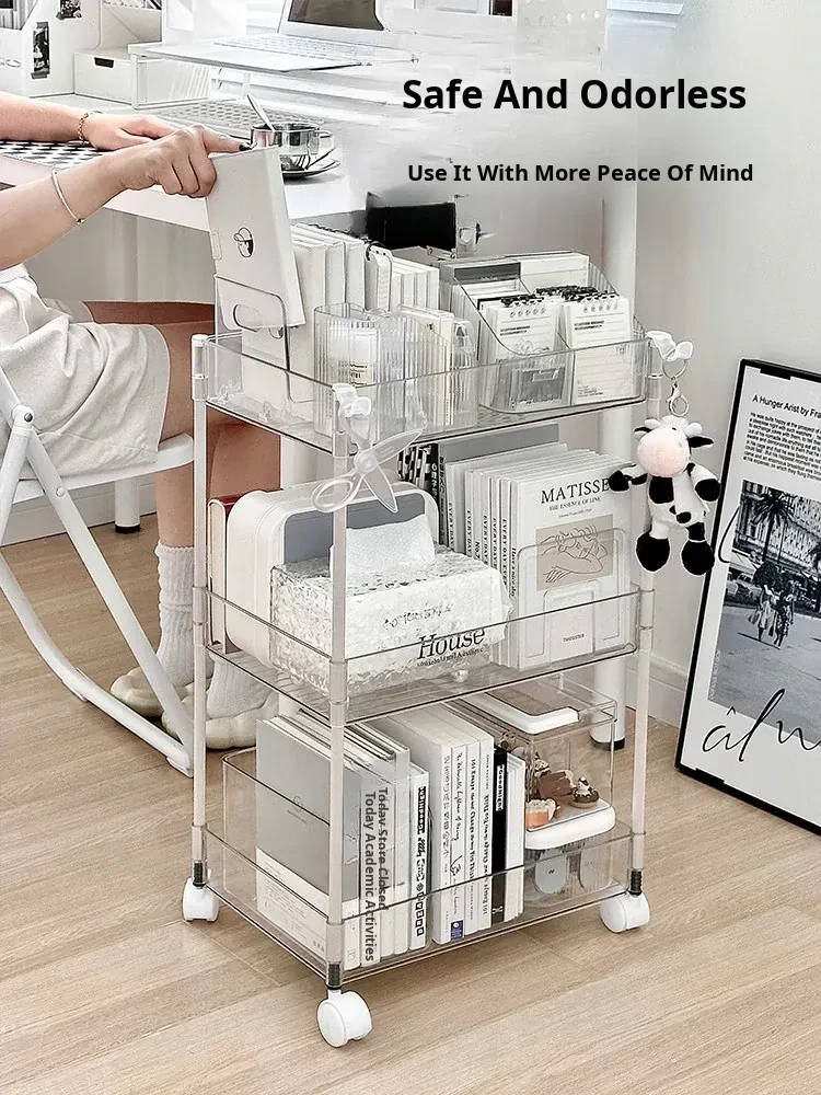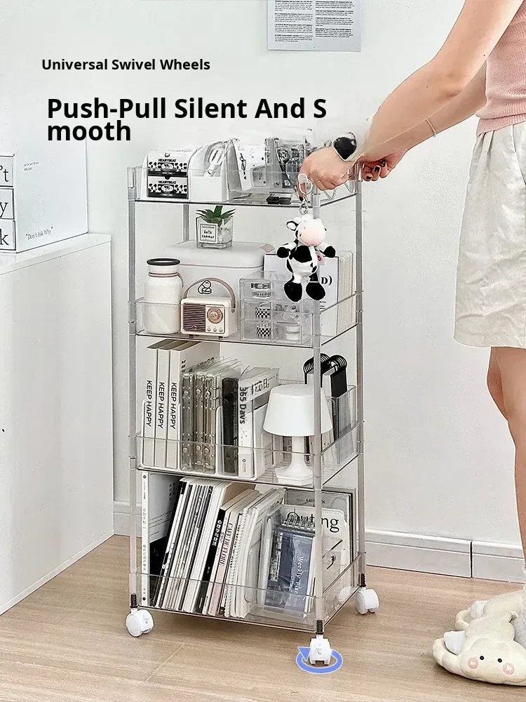 Transparent Multi-Layer Storage Cart - Versatile Organizer for Snacks, Books, and Bags - Perfect for Dorm Rooms - Easy to Move and Arrange!