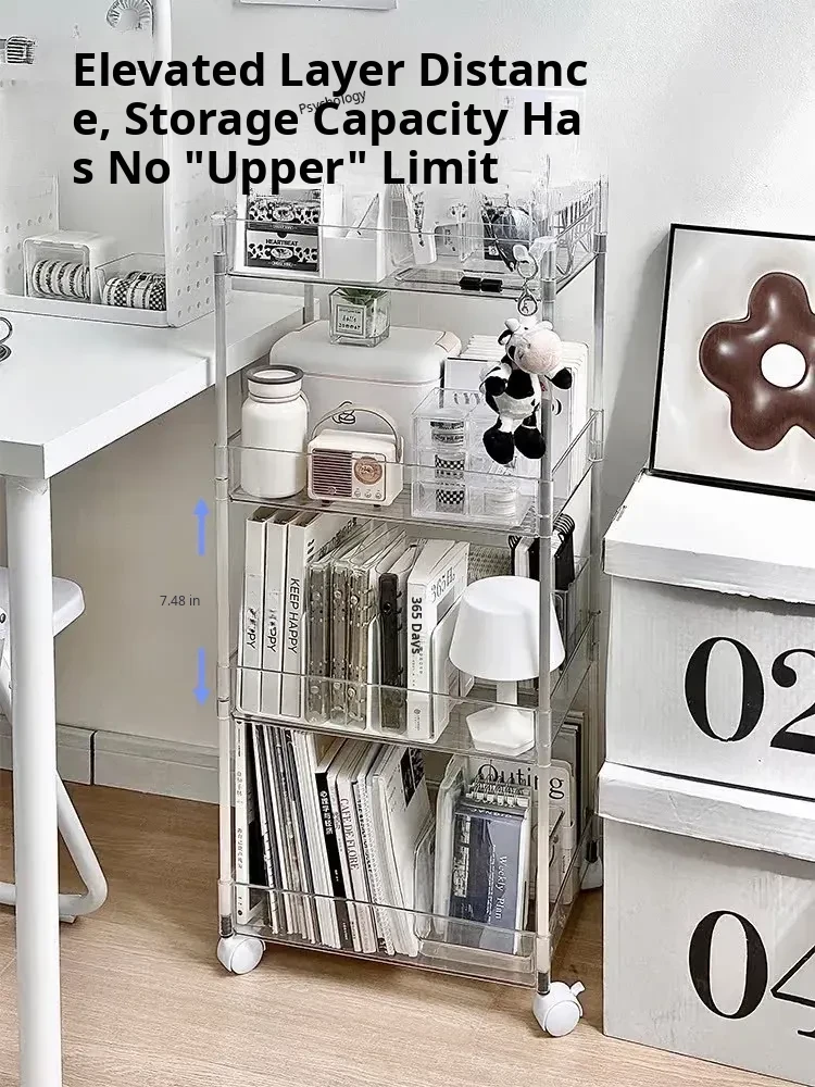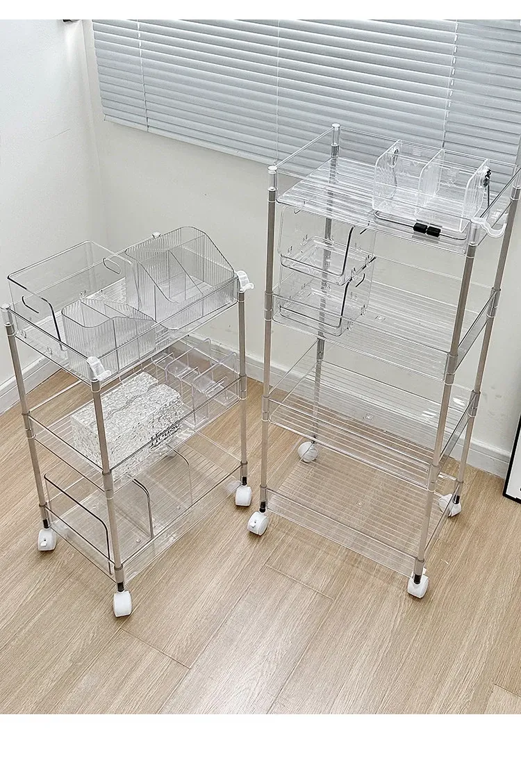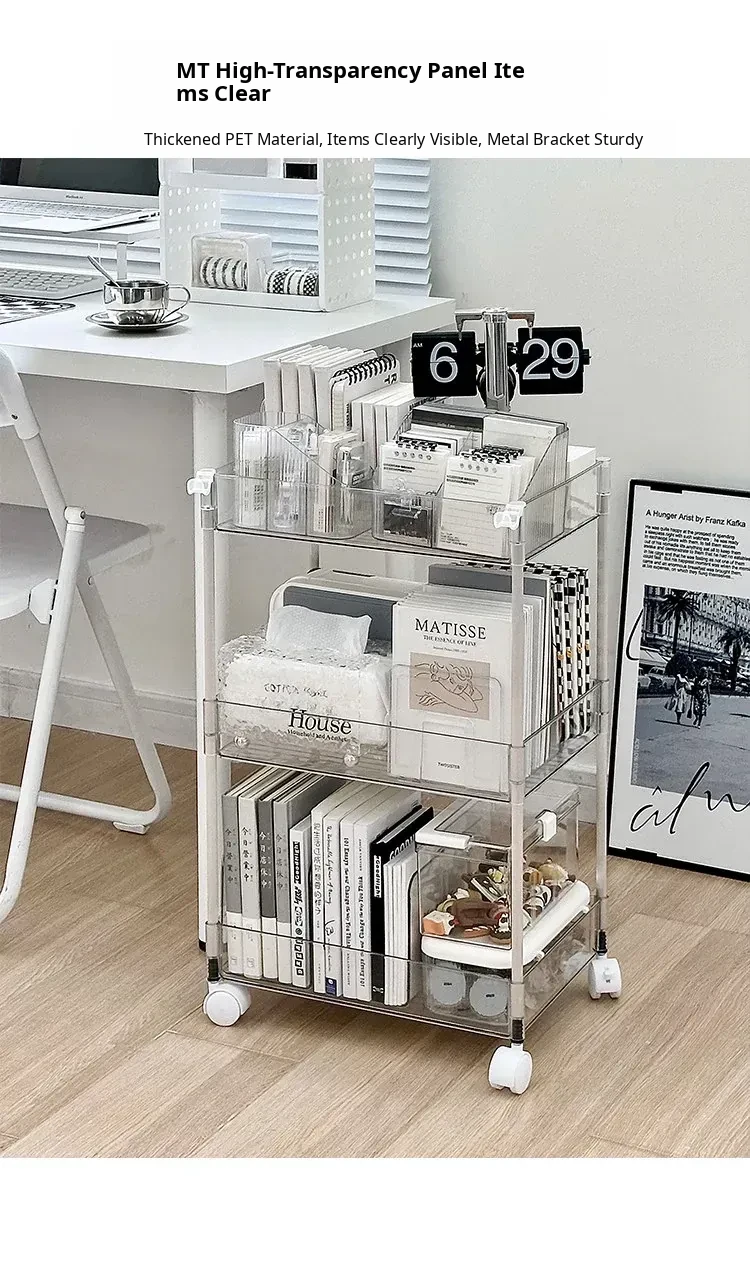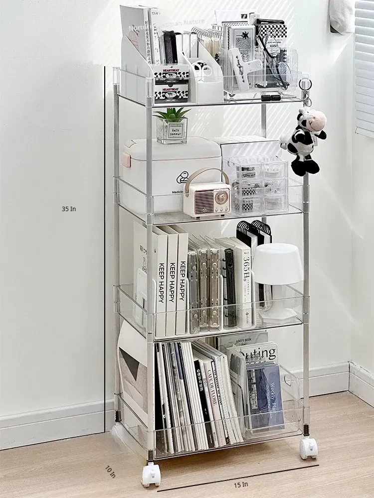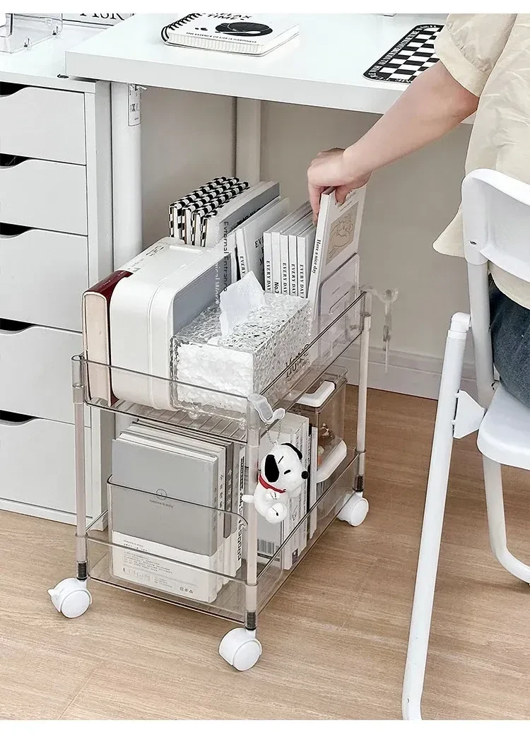 Transparent Multi-Layer Storage Cart - Versatile Organizer for Snacks, Books, and Bags - Perfect for Dorm Rooms - Easy to Move and Arrange!