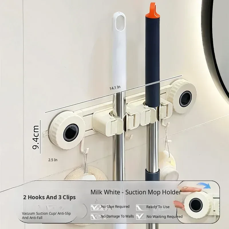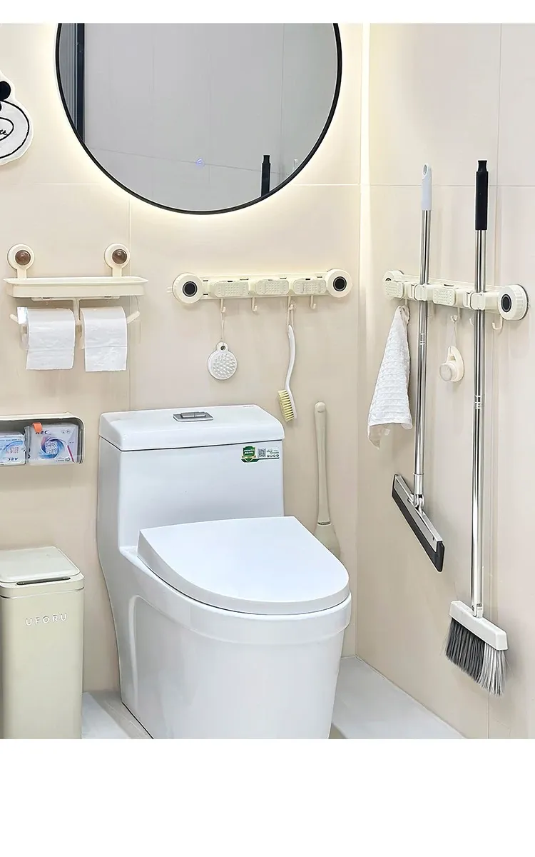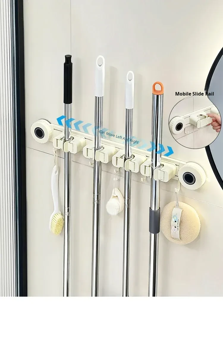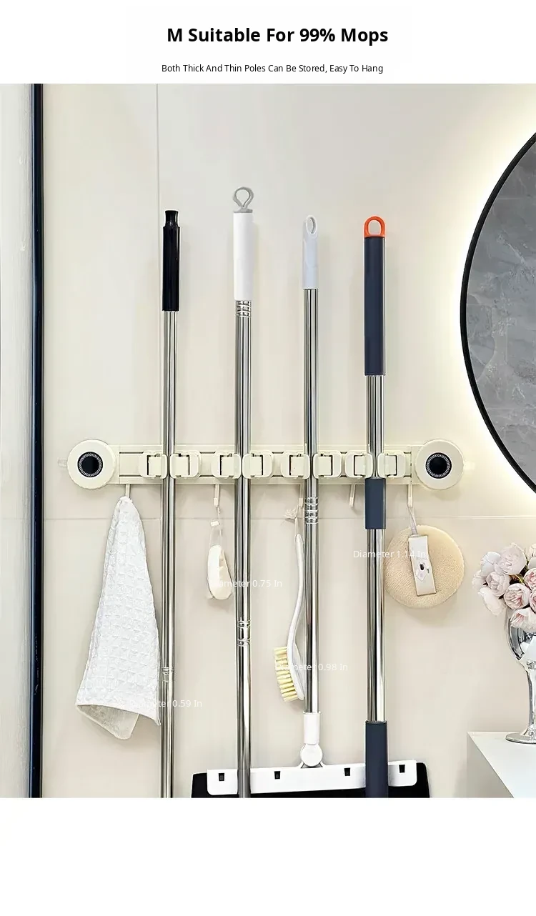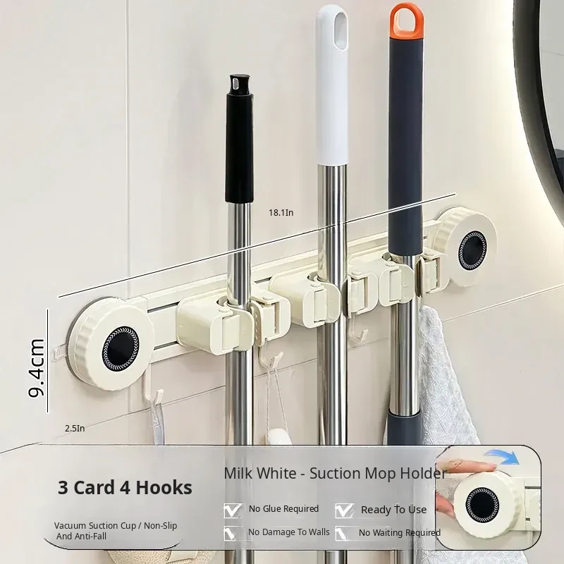 Wall-Mounted Mop Holder - No Drilling Required! Perfect for Bathrooms and Toilets, This Space-Saving Storage Rack Keeps Your Broom and Mop Organized with Strong Hooks. Ideal for a Tidy Home!
