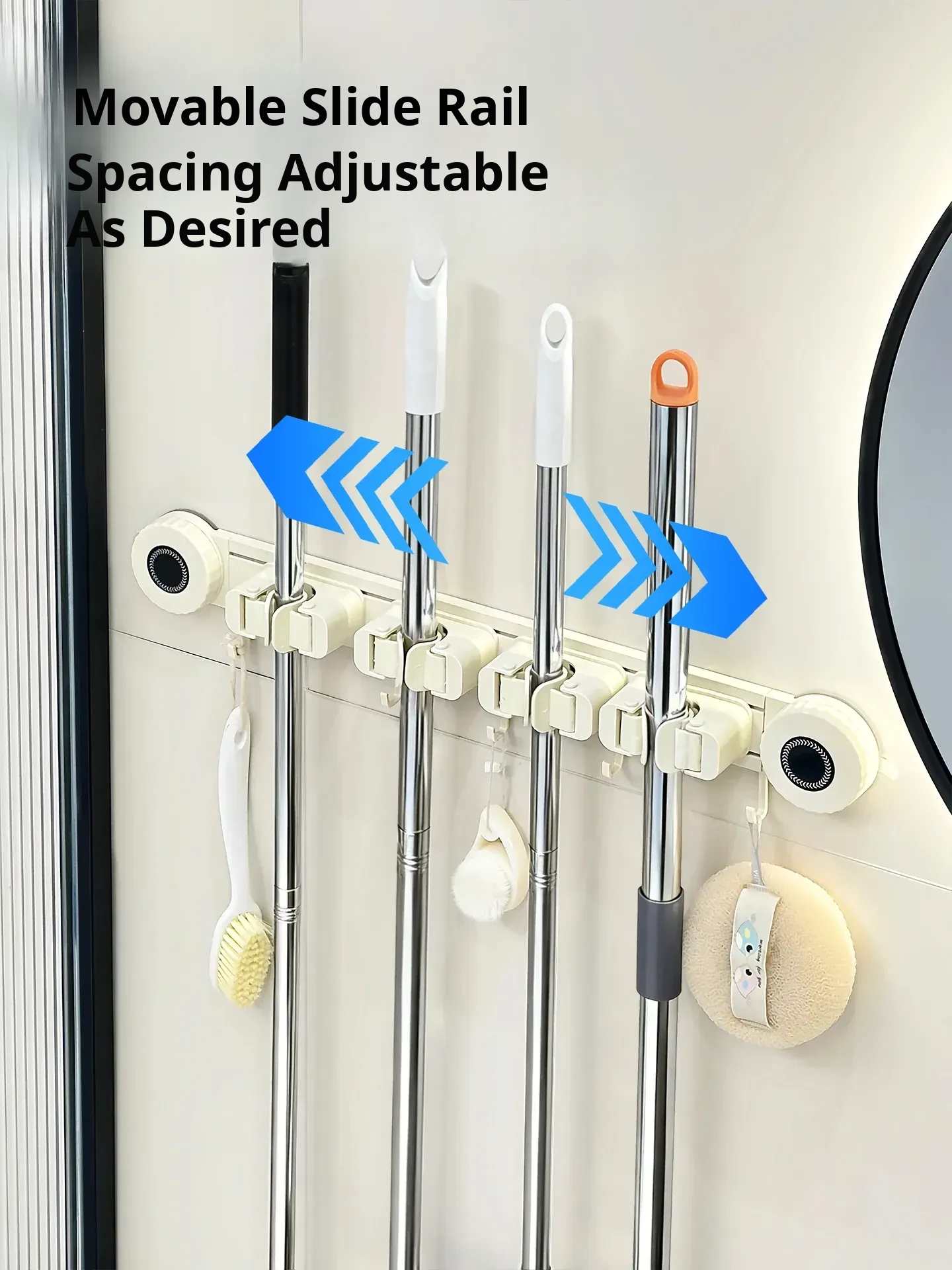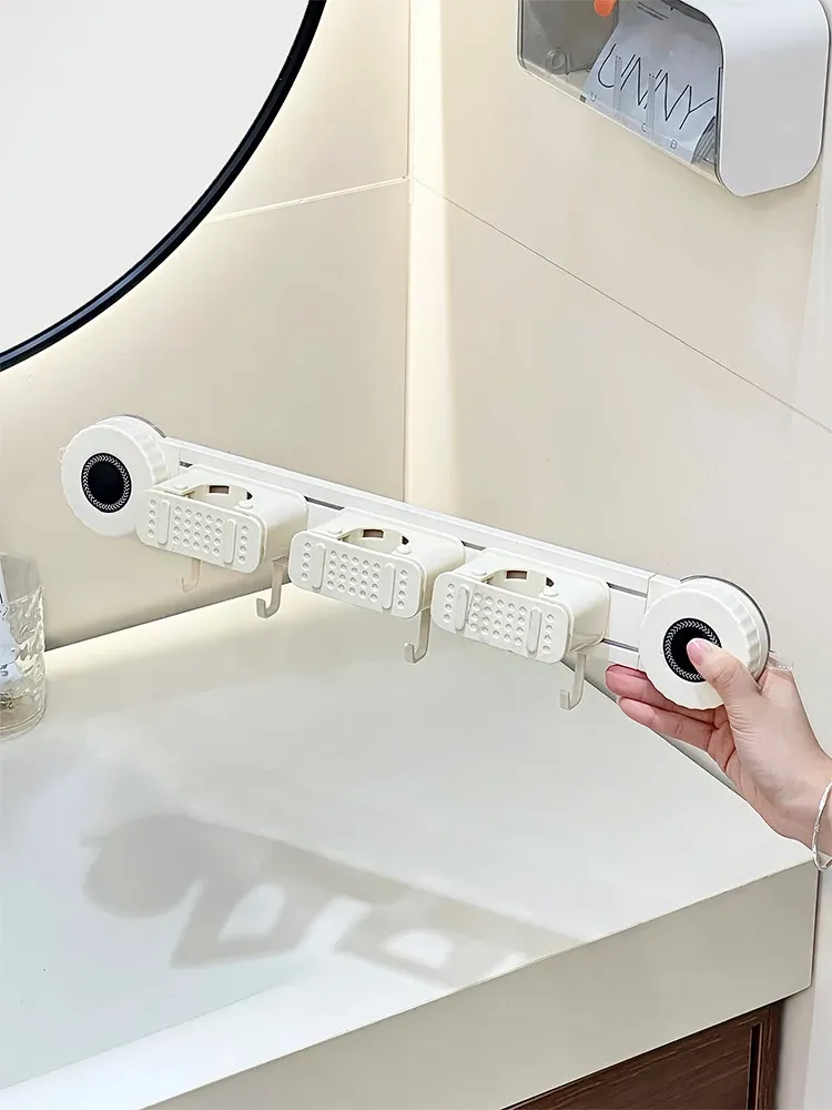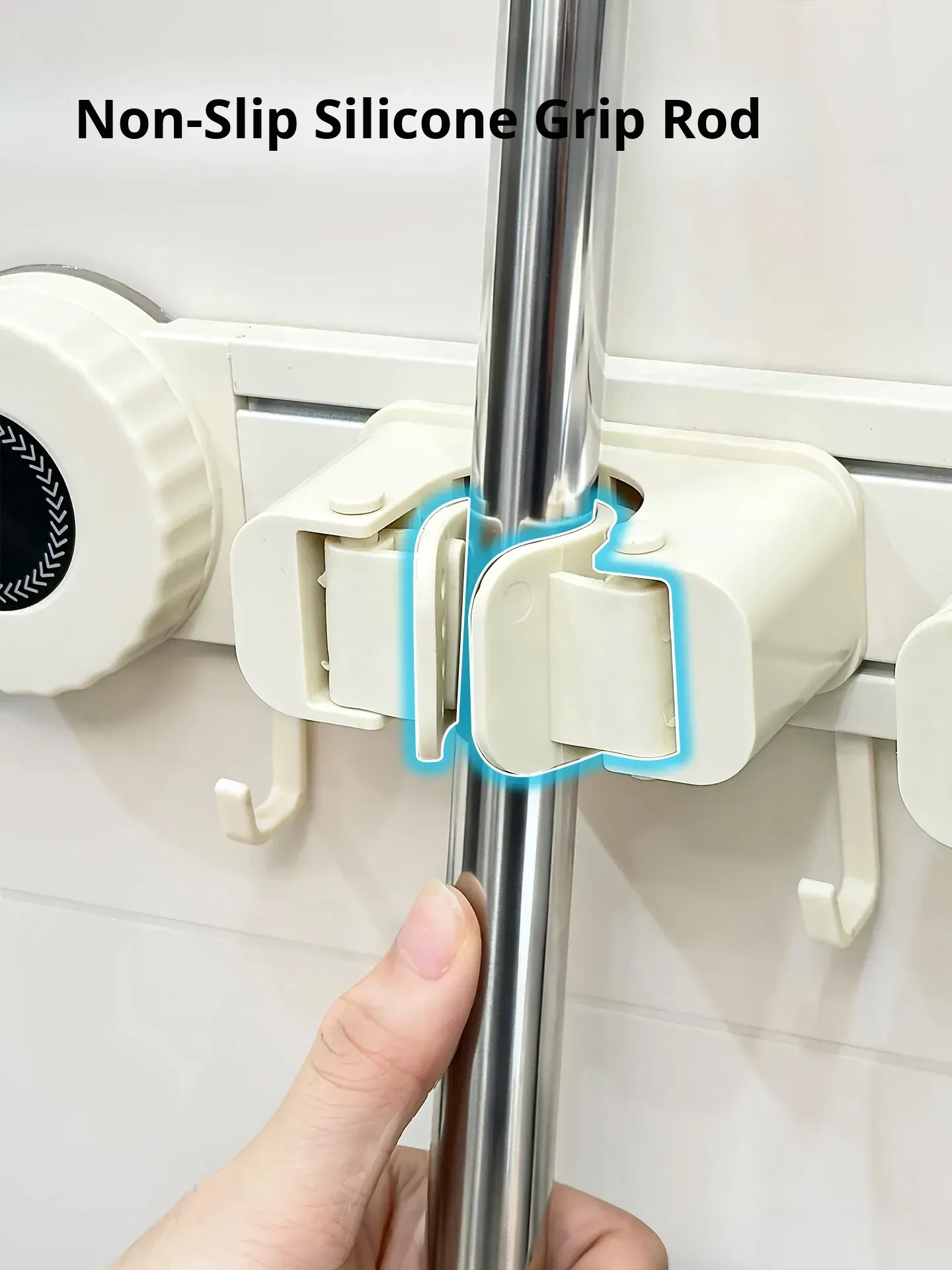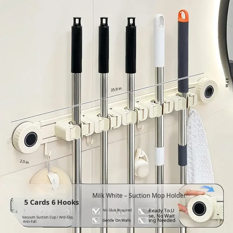 Wall-Mounted Mop Holder - No Drilling Required! Perfect for Bathrooms and Toilets, This Space-Saving Storage Rack Keeps Your Broom and Mop Organized with Strong Hooks. Ideal for a Tidy Home!