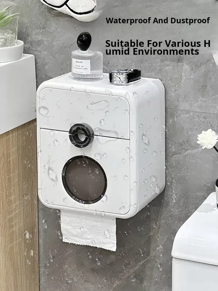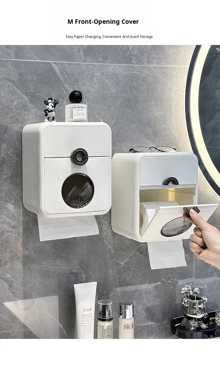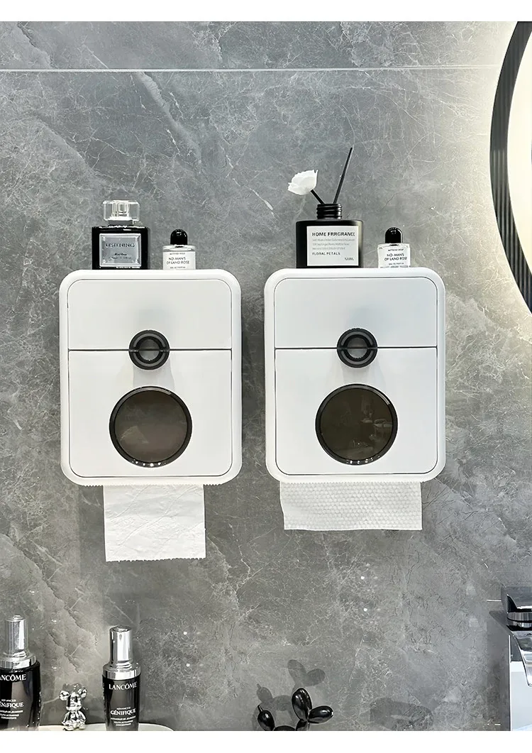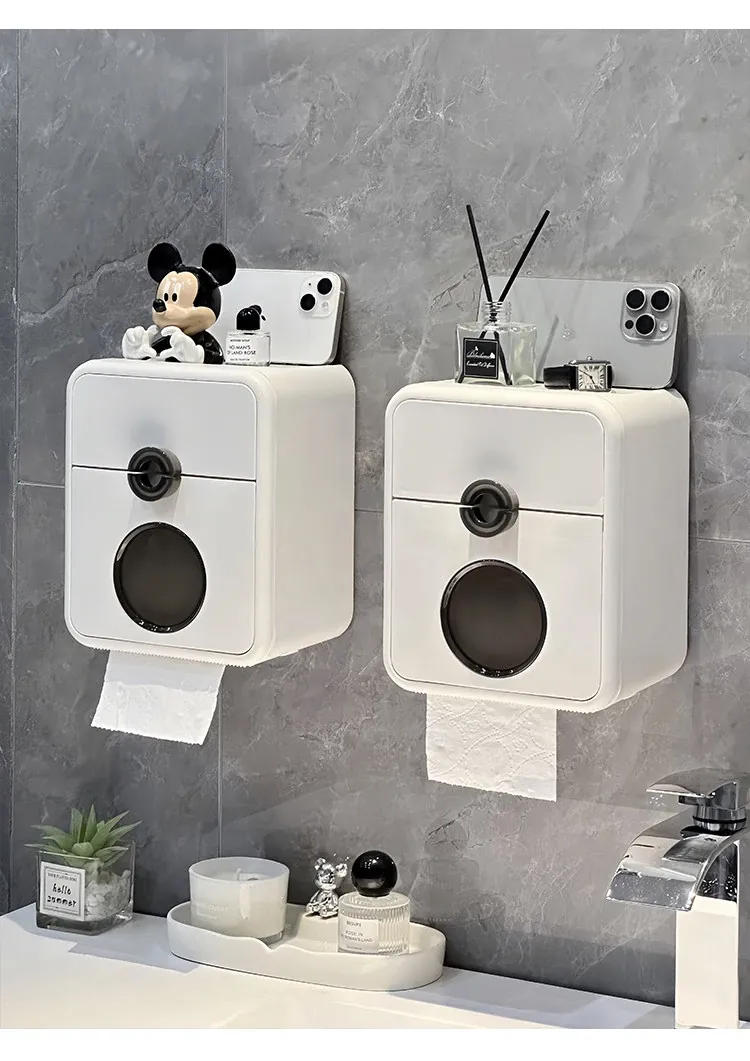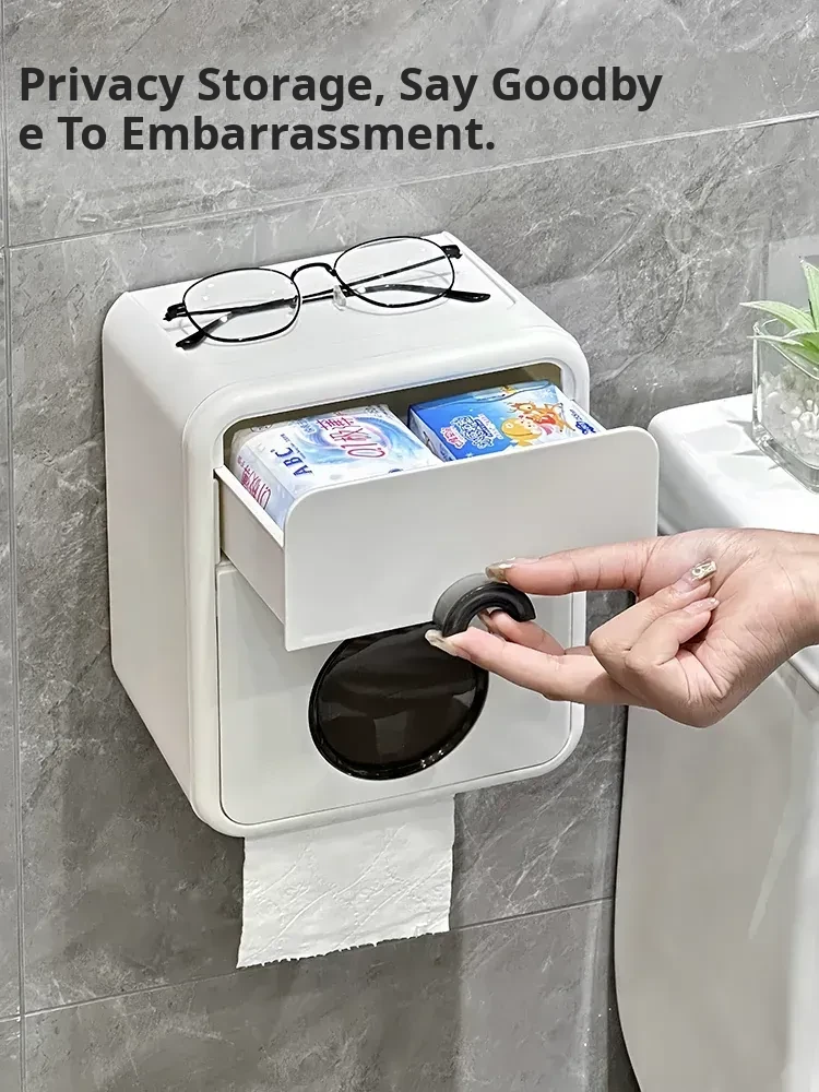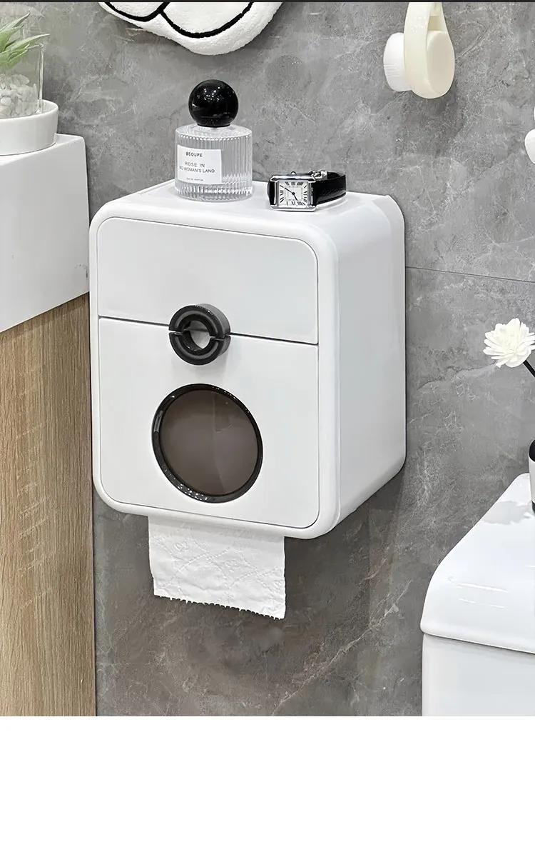 Wall-Mounted Tissue Box for Bathroom – No Drill Waterproof Toilet Paper Holder with Storage Shelf – Keep Your Space Organized and Stylish!