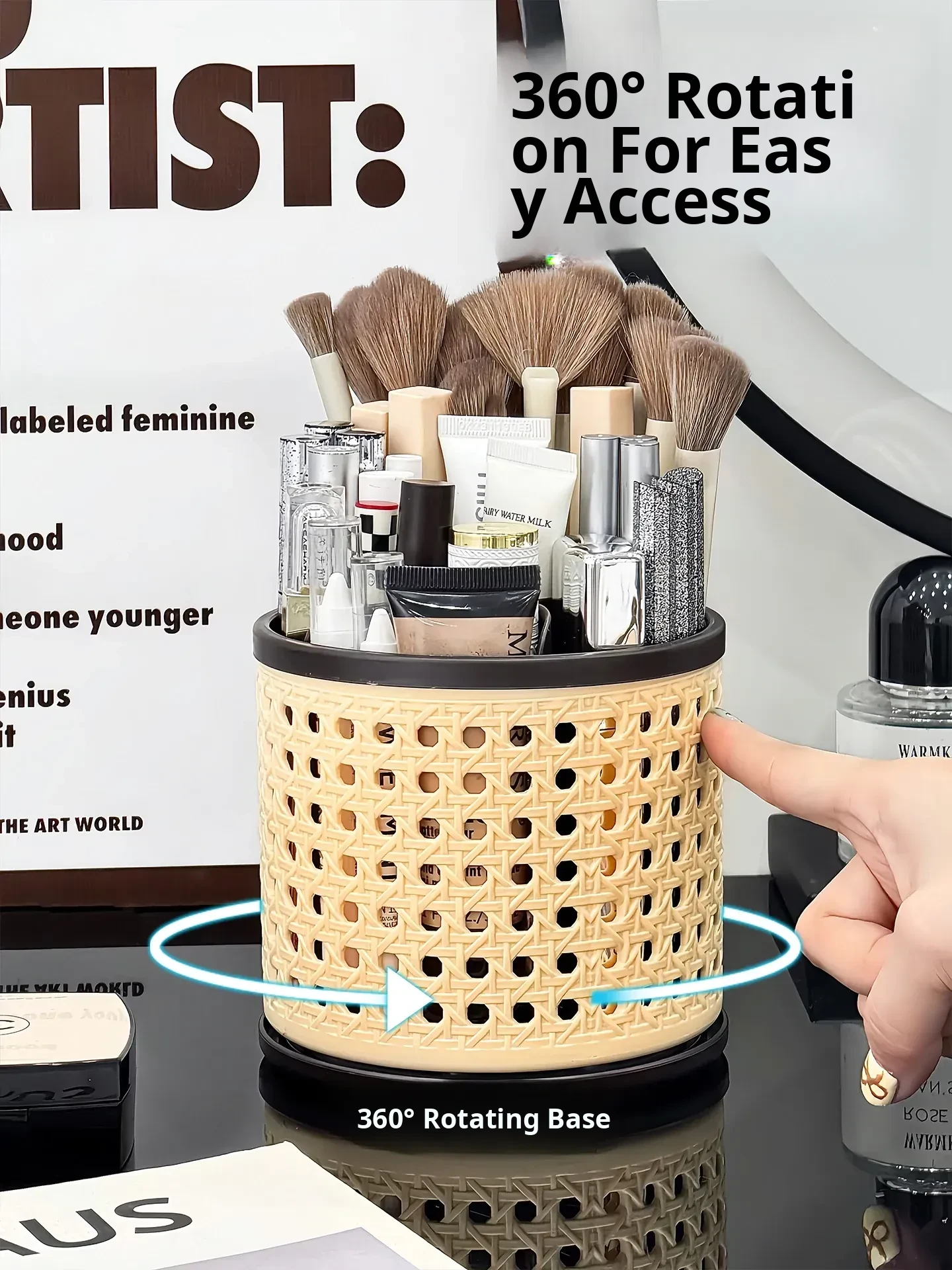 Large Capacity Dustproof Cosmetic Organizer - Makeup Brush and Lipstick Storage Rack for Vanity Table, Perfect for Skincare Products!
