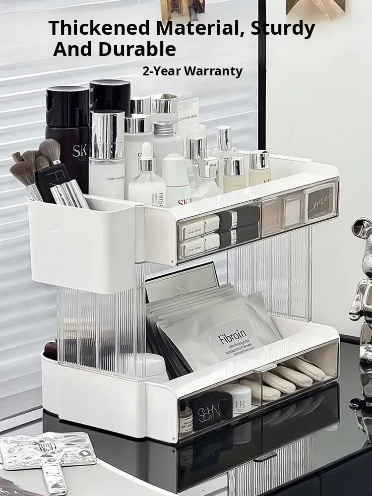 Premium Makeup Organizer Box - Elegant Desktop Storage for Cosmetics, Skincare Products, and Masks. Spacious Makeup Station with Lipstick and Skincare Storage Solutions. Perfect for a Tidier Vanity!