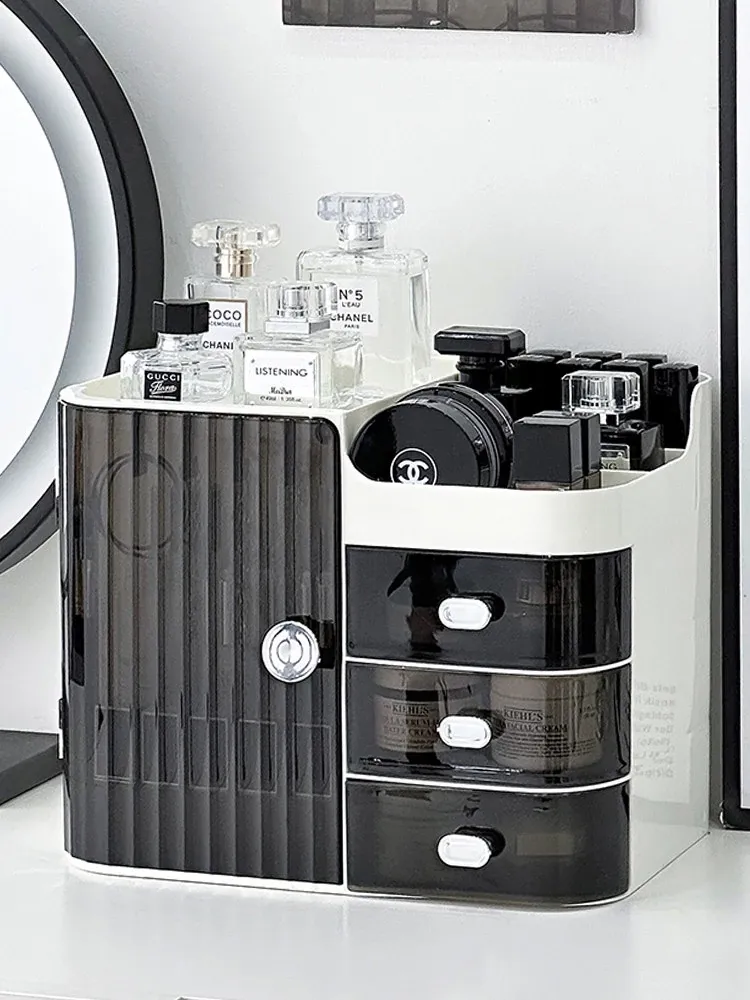Stylish Makeup Organizer Box - Large Capacity Skincare Storage Rack for Desktop, Perfect for Perfumes, Masks, and Beauty Essentials on Your Vanity