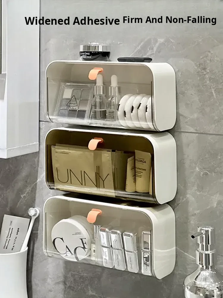 Wall-Mounted Bathroom Mirror Cabinet Organizer - Dustproof Makeup Storage Box with Compartments for Cotton Pads, Q-tips, and Face Masks - Perfect for Neat and Stylish Vanity Spaces!