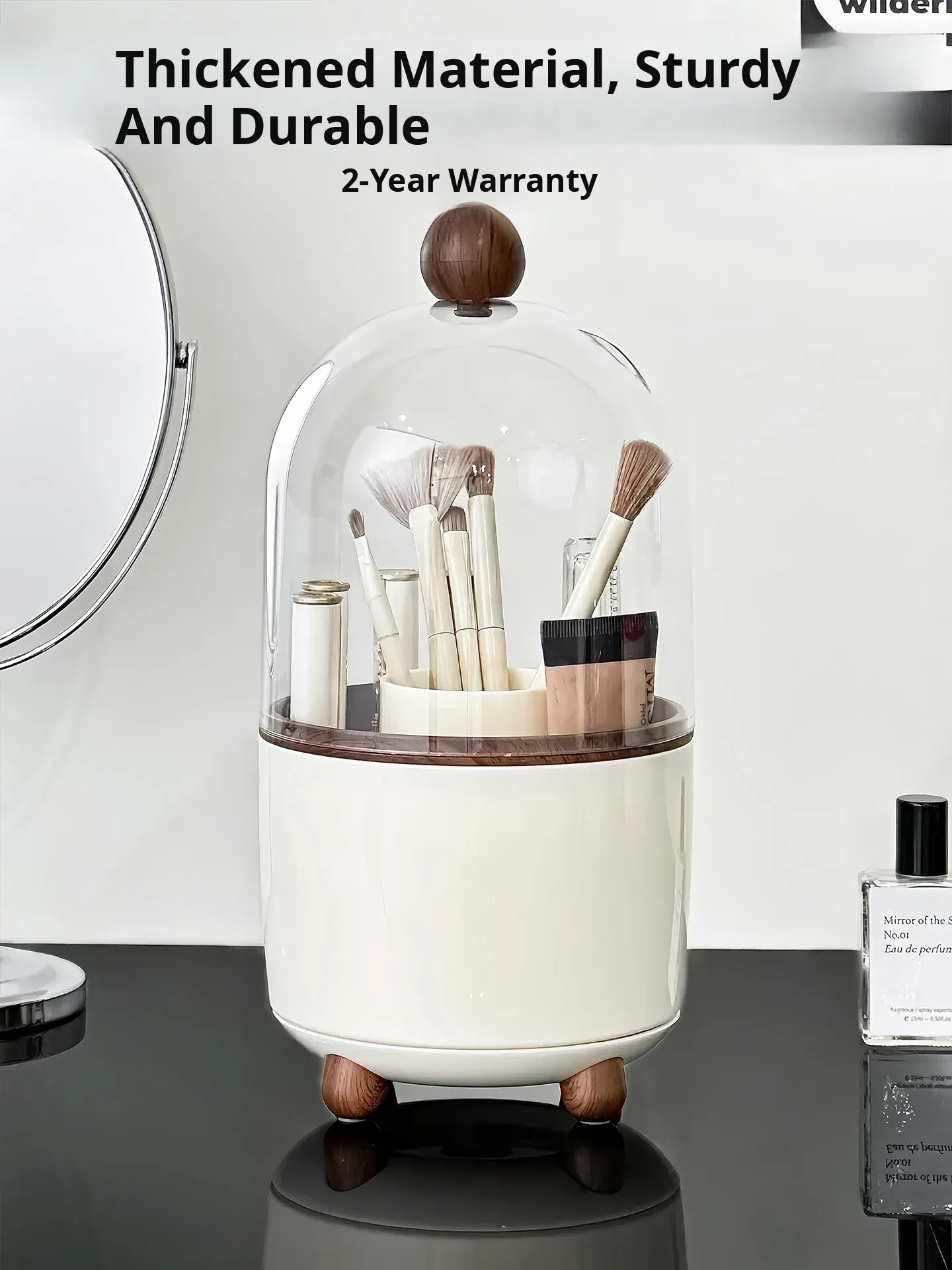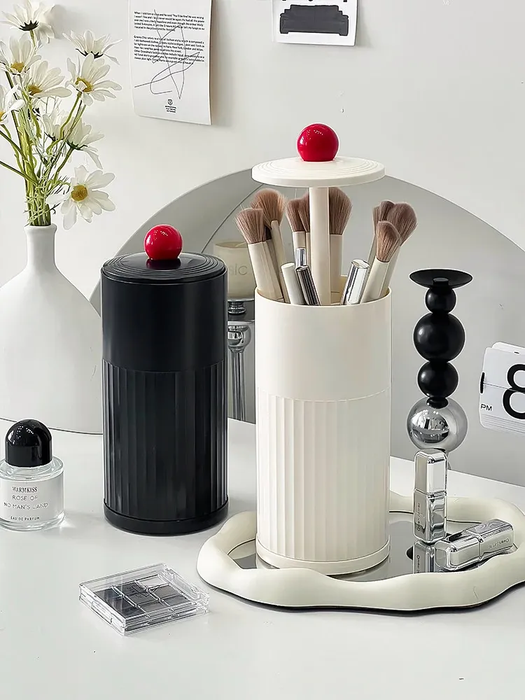 Elegant Makeup Brush Organizer with Dust-Proof Lid - Stylish Rotating Storage for Eyeshadow Brushes and Cosmetics, Perfect for Your Vanity Table