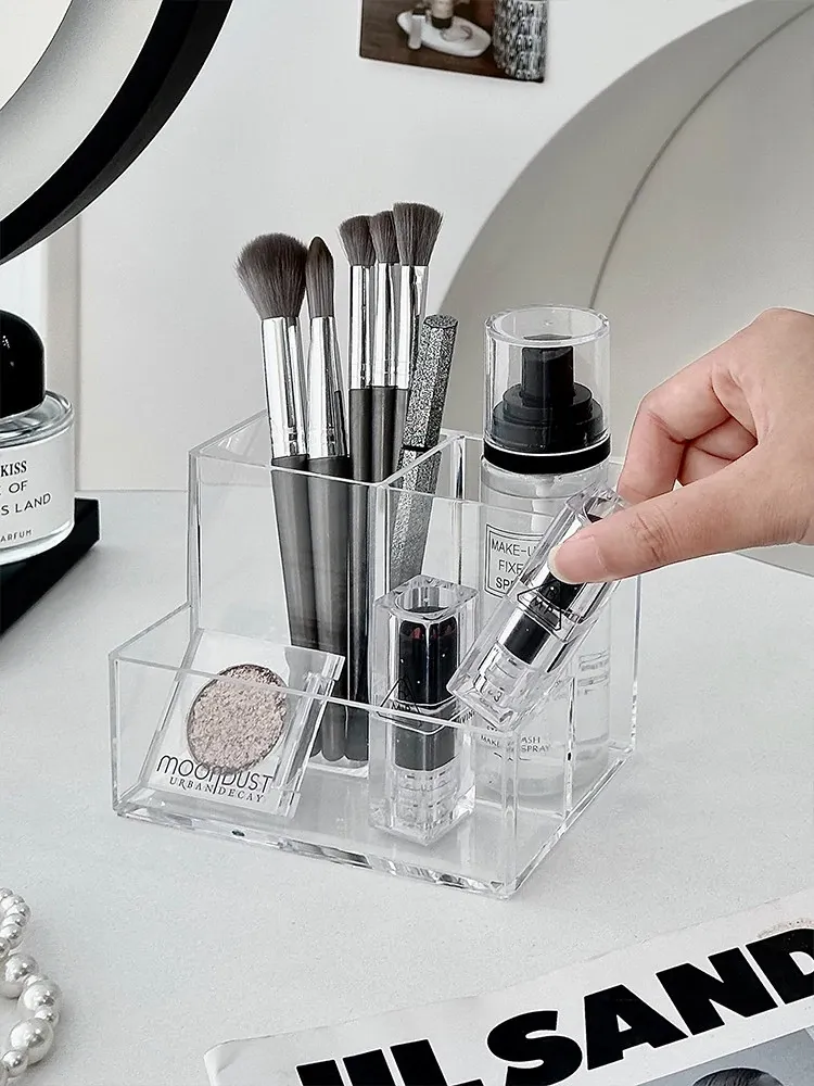 Acrylic Makeup Organizer - Clear Cosmetic Storage Box for Brushes, Lipsticks, and Skincare Products - Stylish Desktop Vanity Organizer for Effortless Beauty Management