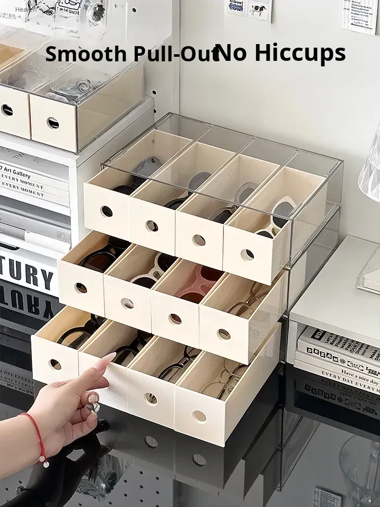 Multi-Compartment Drawer Sunglasses Organizer - Acrylic Storage Box for Kids' Prescription Glasses and Sunglasses, Perfect for Keeping Eyewear Tidy and Accessible!