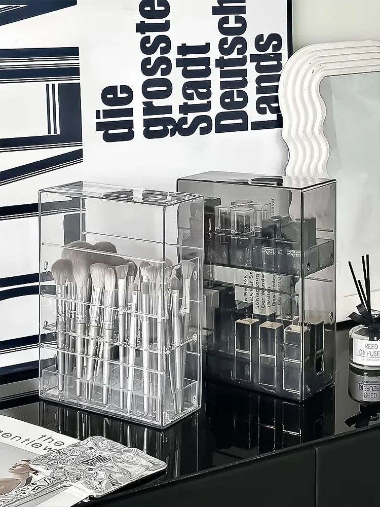 Large Capacity Makeup Brush Organizer - Dustproof Acrylic Cosmetic Storage Box with Dividers for Lipsticks - Perfect for Dressing Table and Vanity Essentials