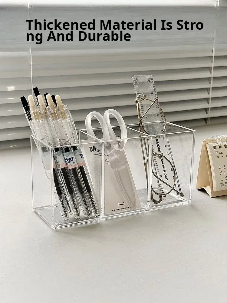 Acrylic Storage Box - Multi-Functional Desktop Organizer for Students and Offices, Clear Stationery and Miscellaneous Divider Pen Holder