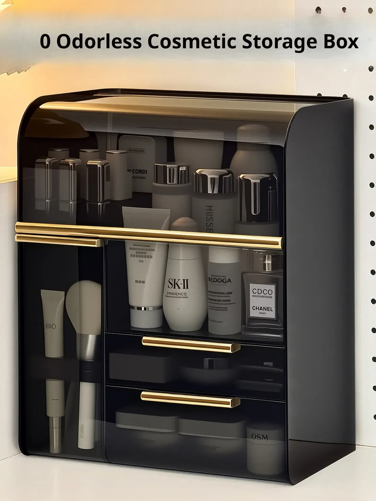 Elegant Cosmetic Storage Box - Large Capacity Makeup Organizer for Vanity, Perfect for Skincare Products, Face Masks, and Lipstick, Keeps Your Beauty Essentials Neatly Arranged.