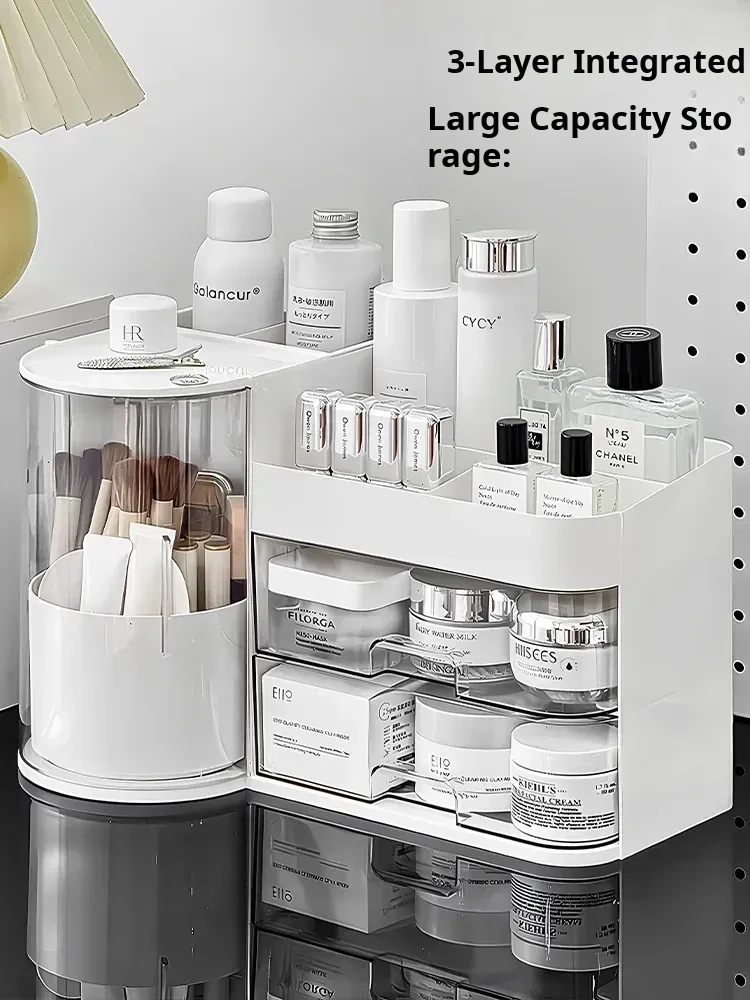 Multifunctional Makeup Organizer - Drawer-Style Desktop Storage Box for Cosmetics, Brushes, and Skincare Products - Keep Your Beauty Essentials Neat and Accessible!