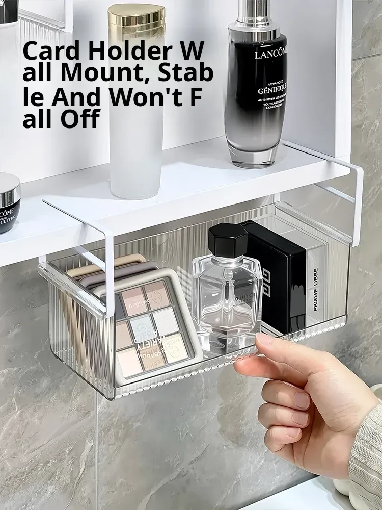 Wall-Mounted Bathroom Mirror Cabinet with Drawer Storage Box - Transparent Organizer for Cosmetics, Cotton Swabs, and Lipstick - Keep Your Essentials Neatly Arranged!