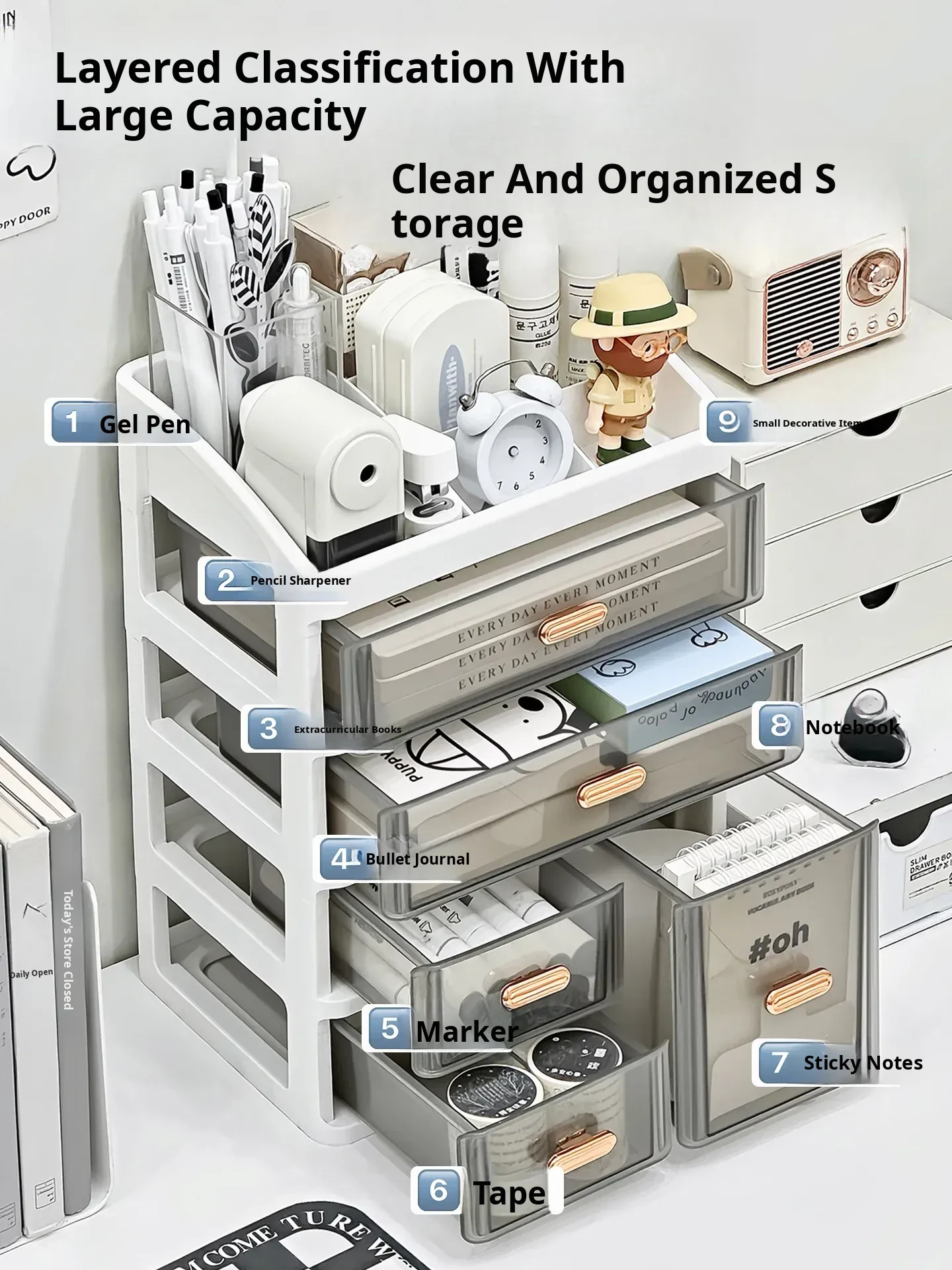 Large Capacity Acrylic Drawer Organizer - Ideal Storage Box for Office and Student Desks, Perfect for Books and Stationery Organization
