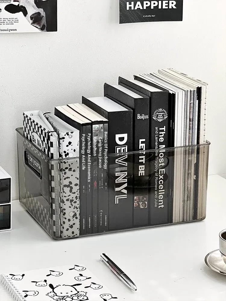 Acrylic Transparent Desktop Book Organizer - Large Capacity Storage Box for Students and Offices, Perfect for Dorm Room and Desk Organization