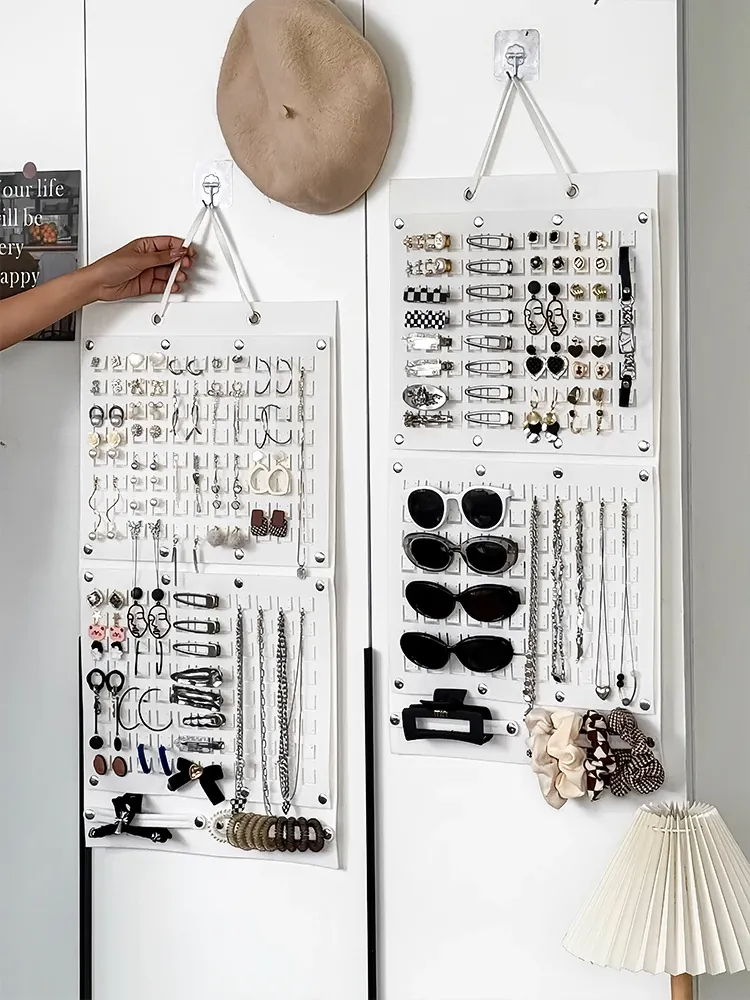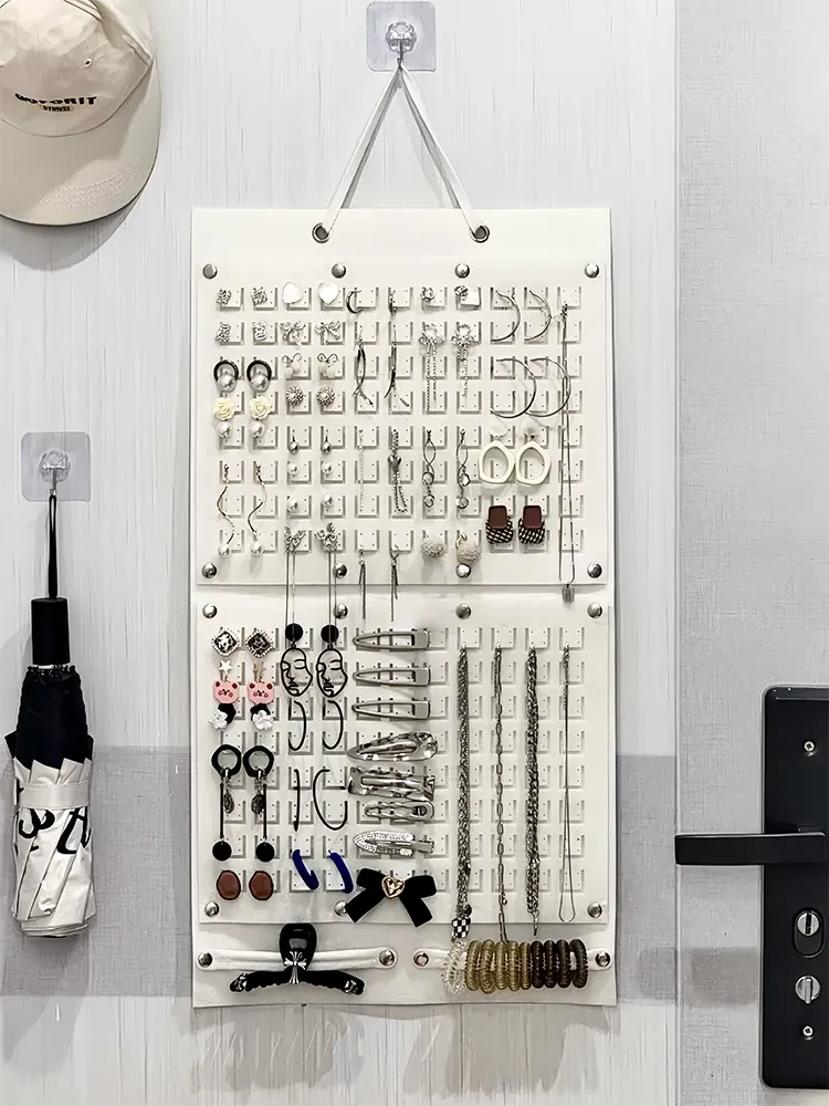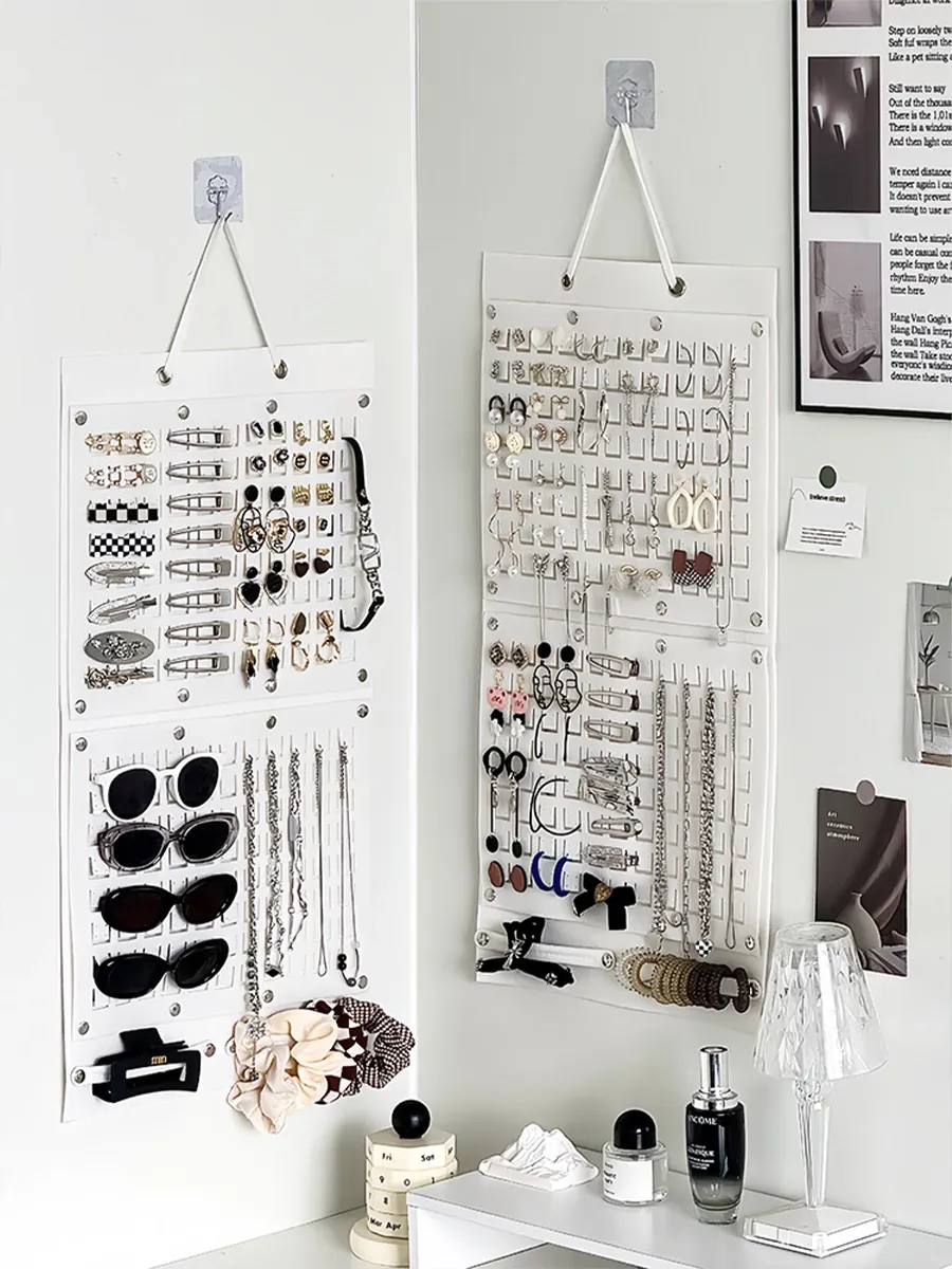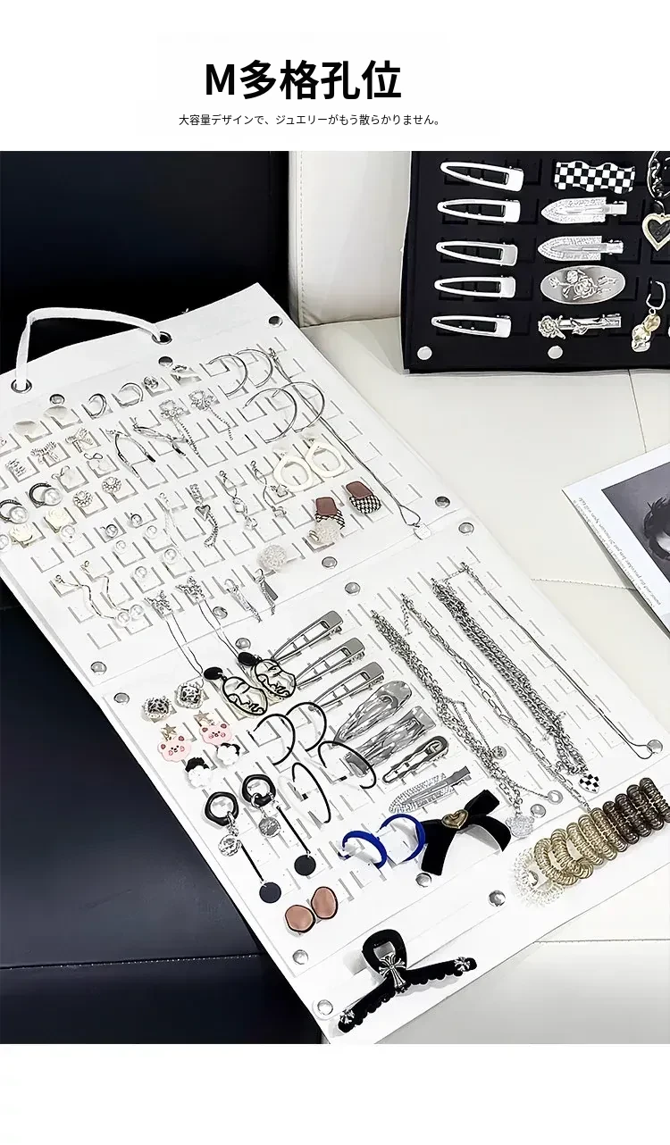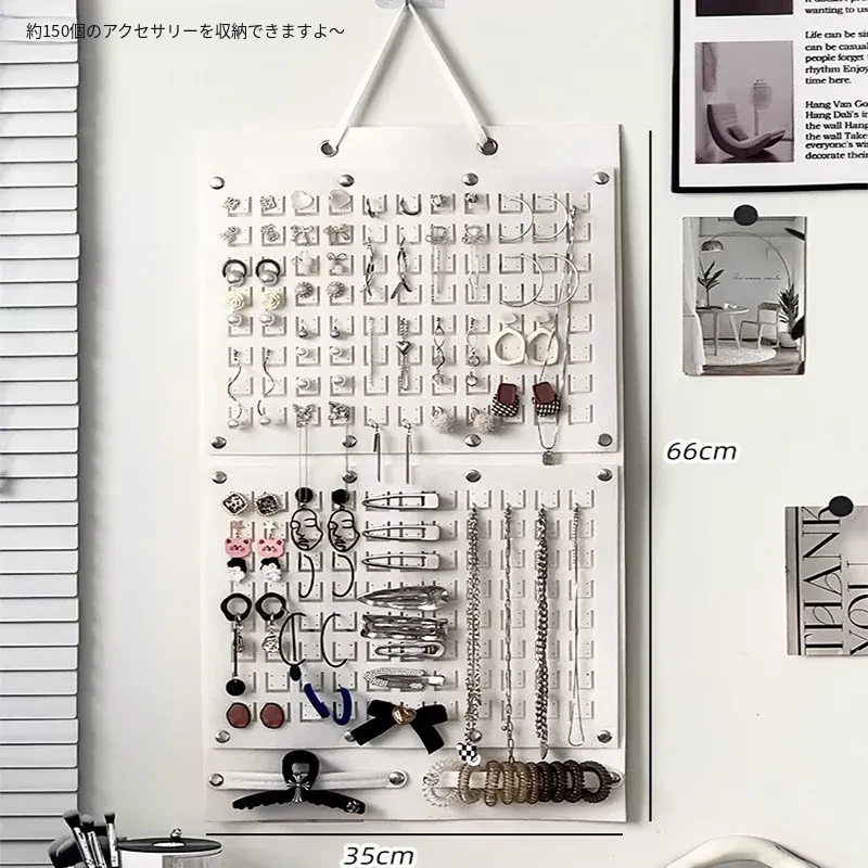 壁掛け収納でおしゃれに!穴あけ不要のヘアアクセサリー整理袋 2024新作 - ヘアピン、シュシュ、ヘアバンドもスッキリ収納。あなたのスタイルを引き立てる便利アイテム!